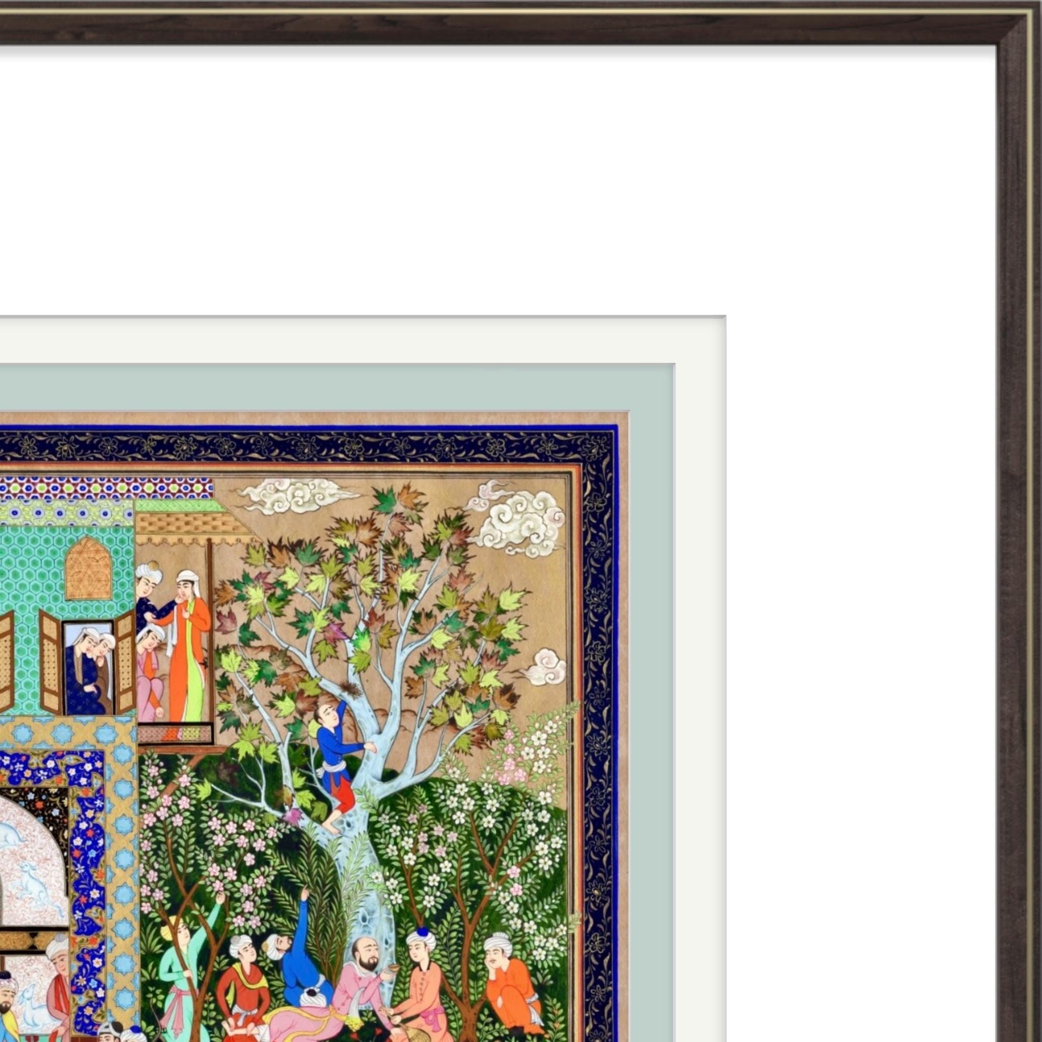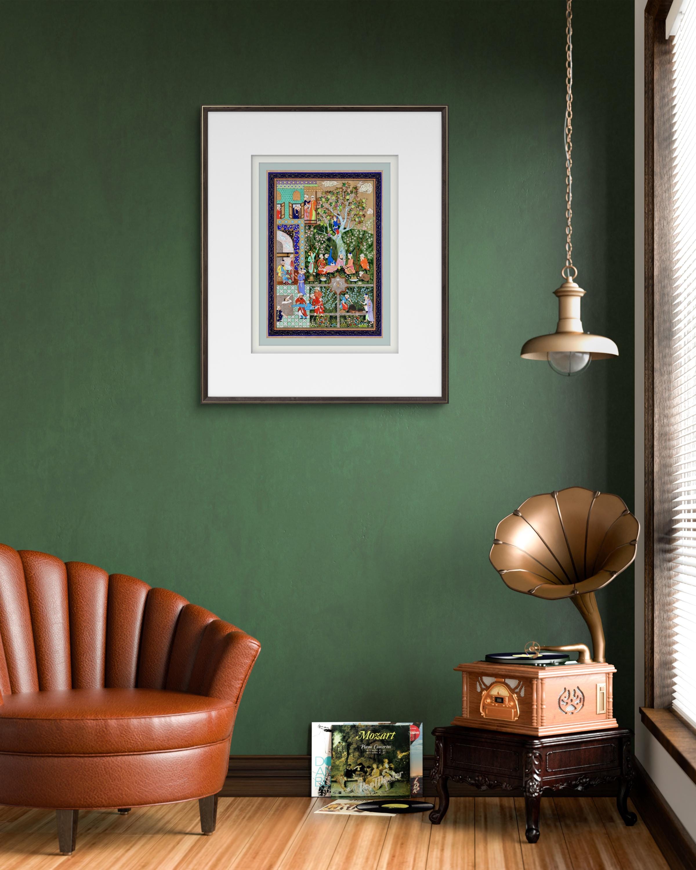A true homage to the golden age of Mughal art, this hand-painted reproduction captures the grandeur and sophistication of an era where craftsmanship reached its pinnacle.