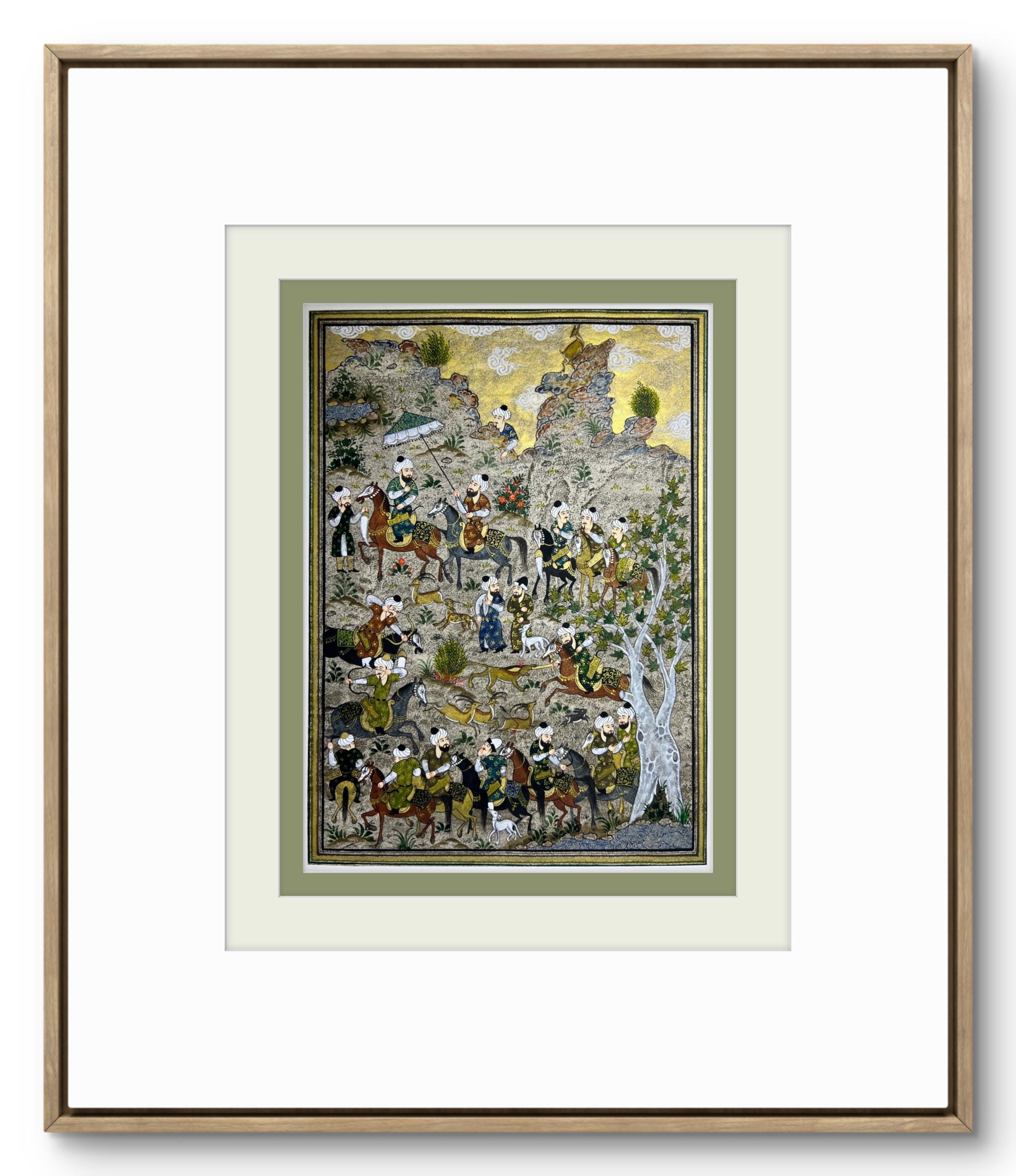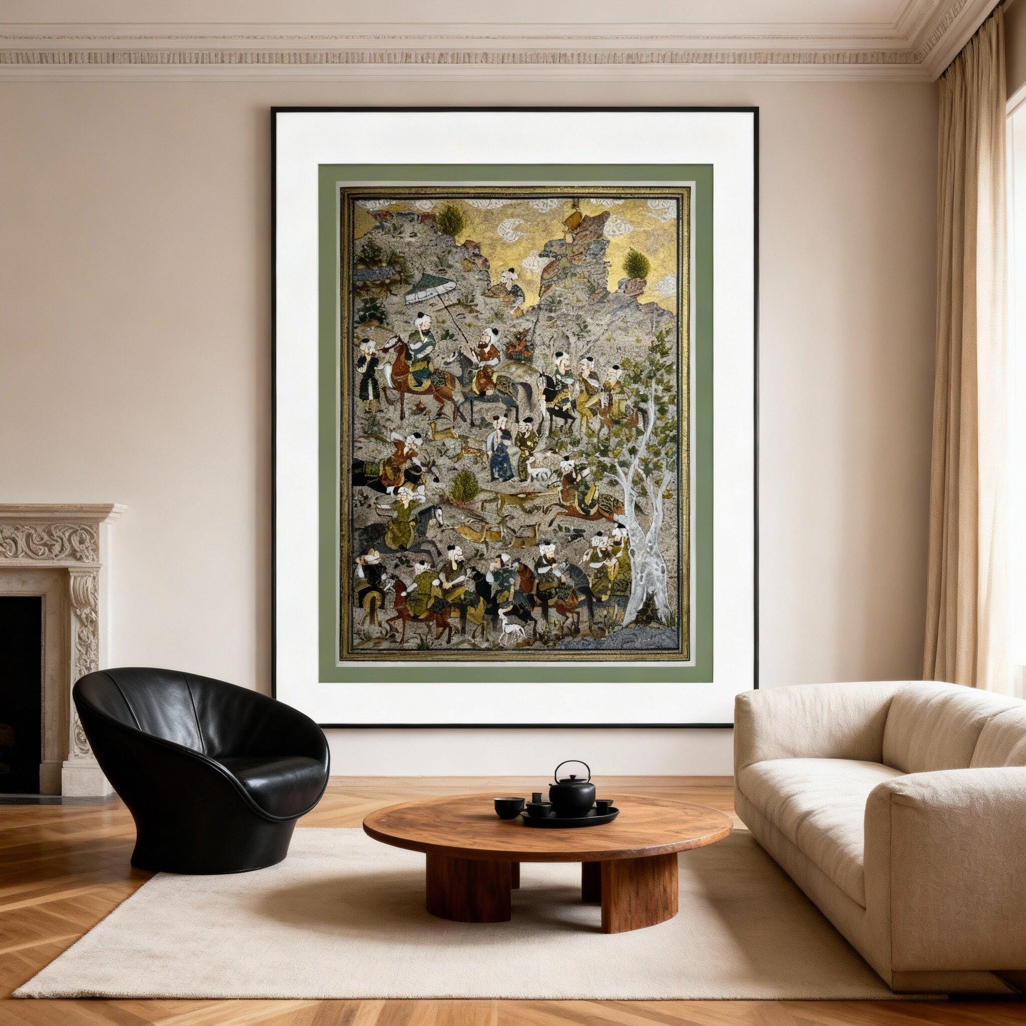 Royal Hunting Scene - Miniature Painting from Shahnameh-Book of Kings | Central Asian Cultural Heritage-Fine Silk Paper | Luxury Home Decor