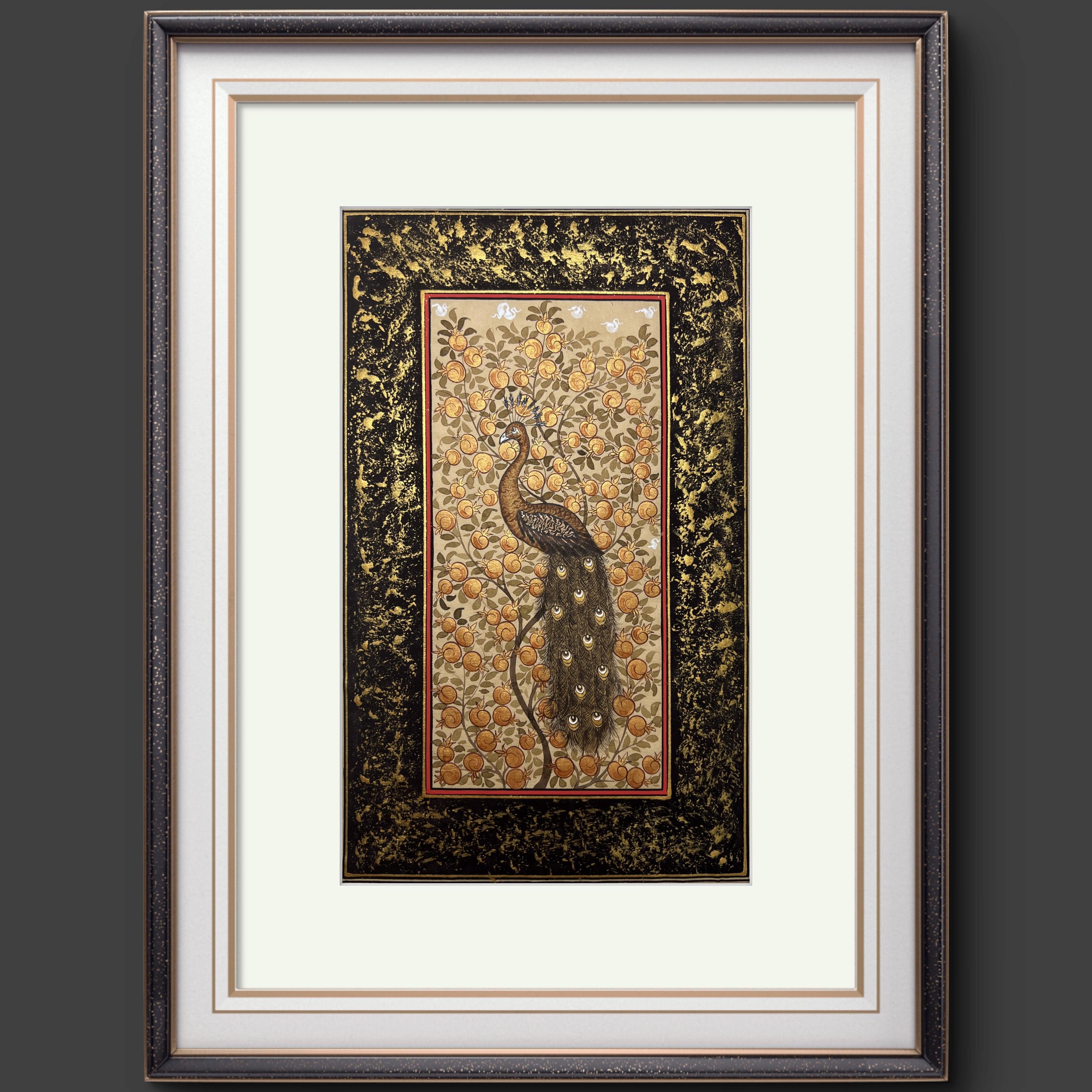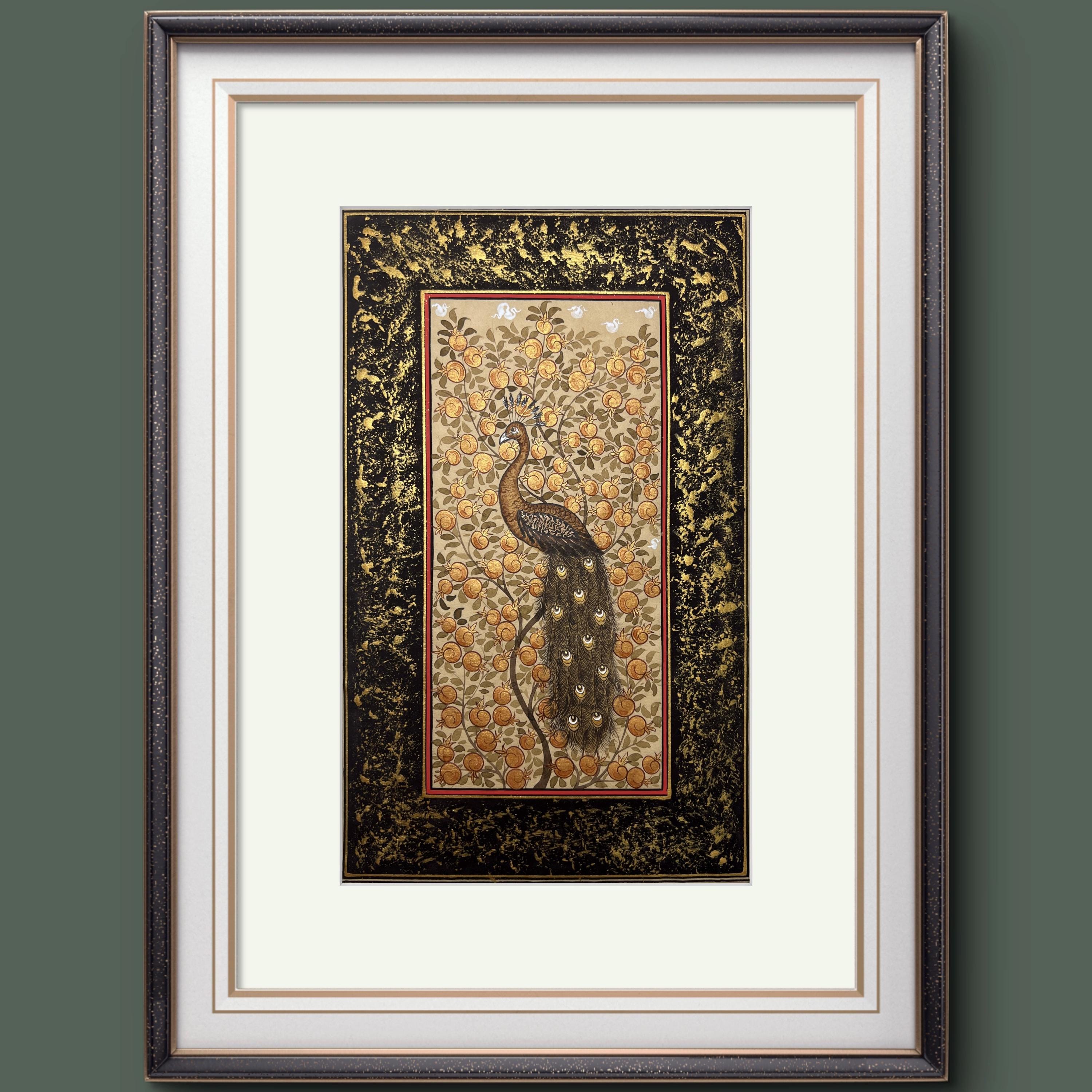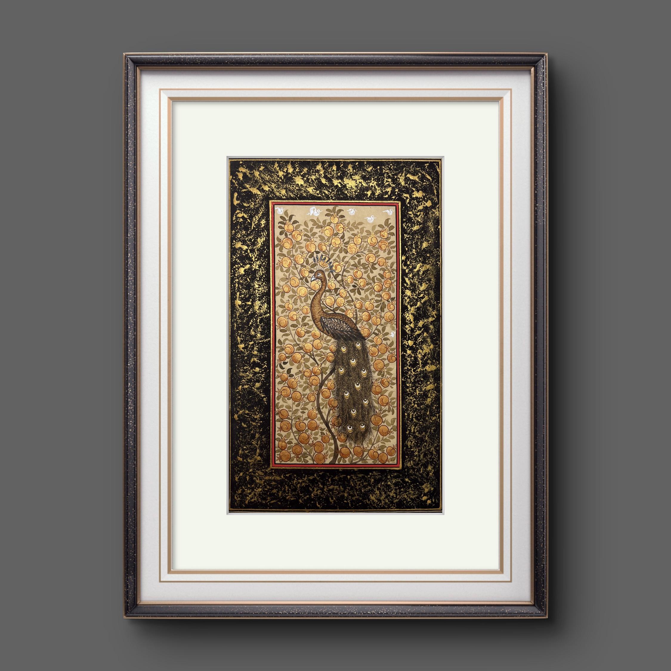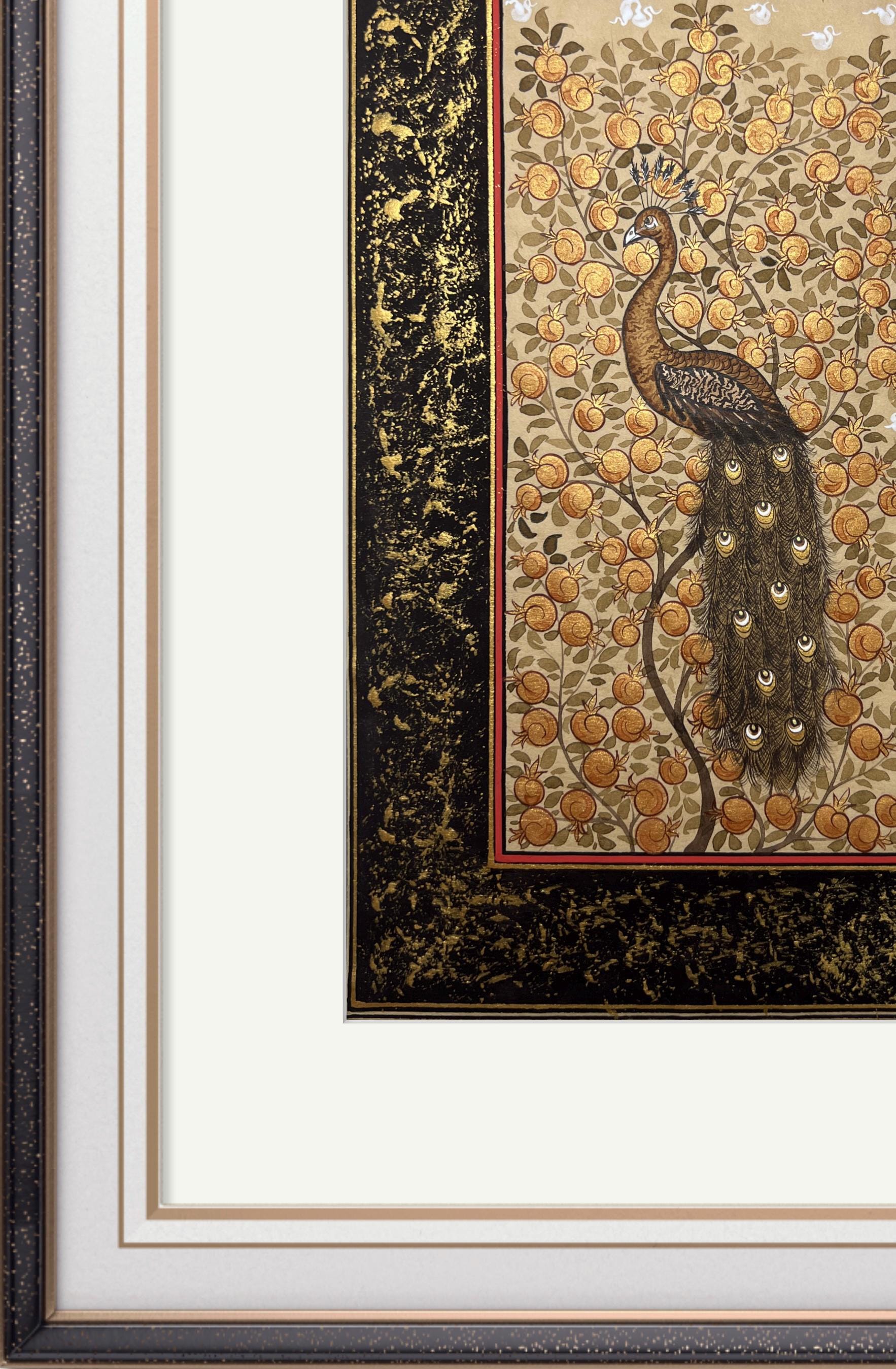 “Tree of Life: Pomegranates and Hoopoe Birds” captures the essence of spiritual beauty, the interconnectedness of life, and the serene balance of nature, all encapsulated in the timeless art of miniature painting.
