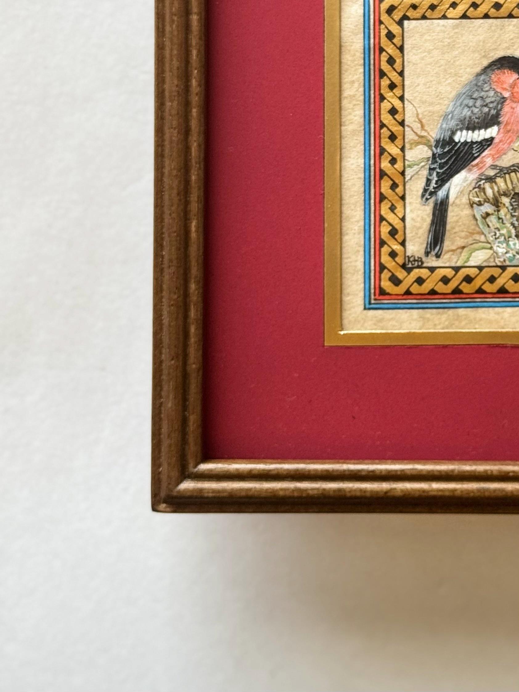 Ultra Fine Detailed Tiny Bird Painting - Exclusively Handcrafted Fine Walnut Frame | Luxury Interior Decoration - Micro Detailed Masterpiece