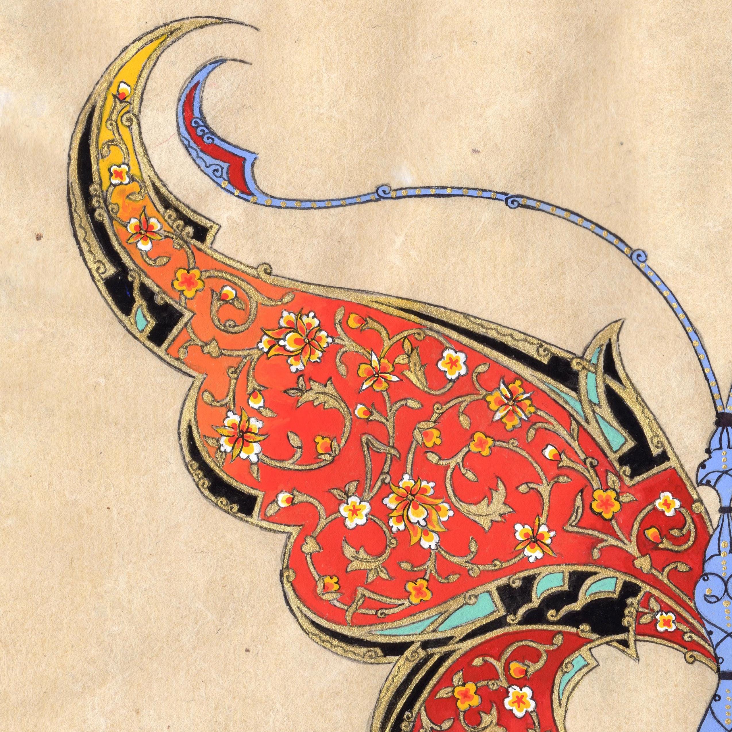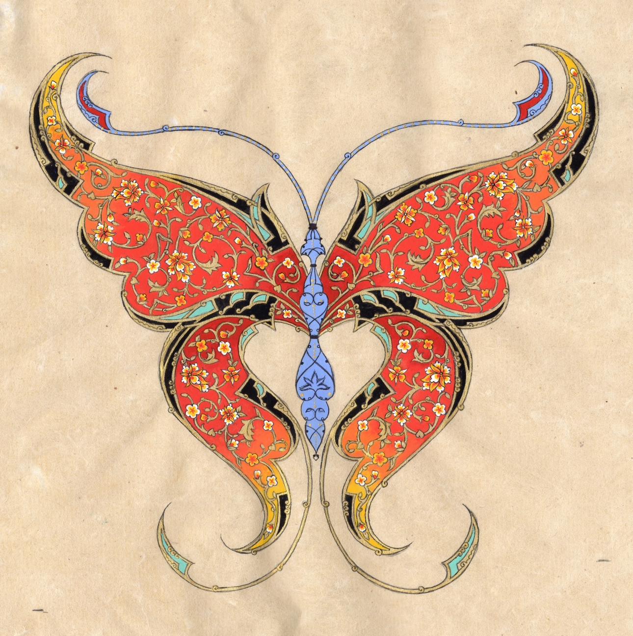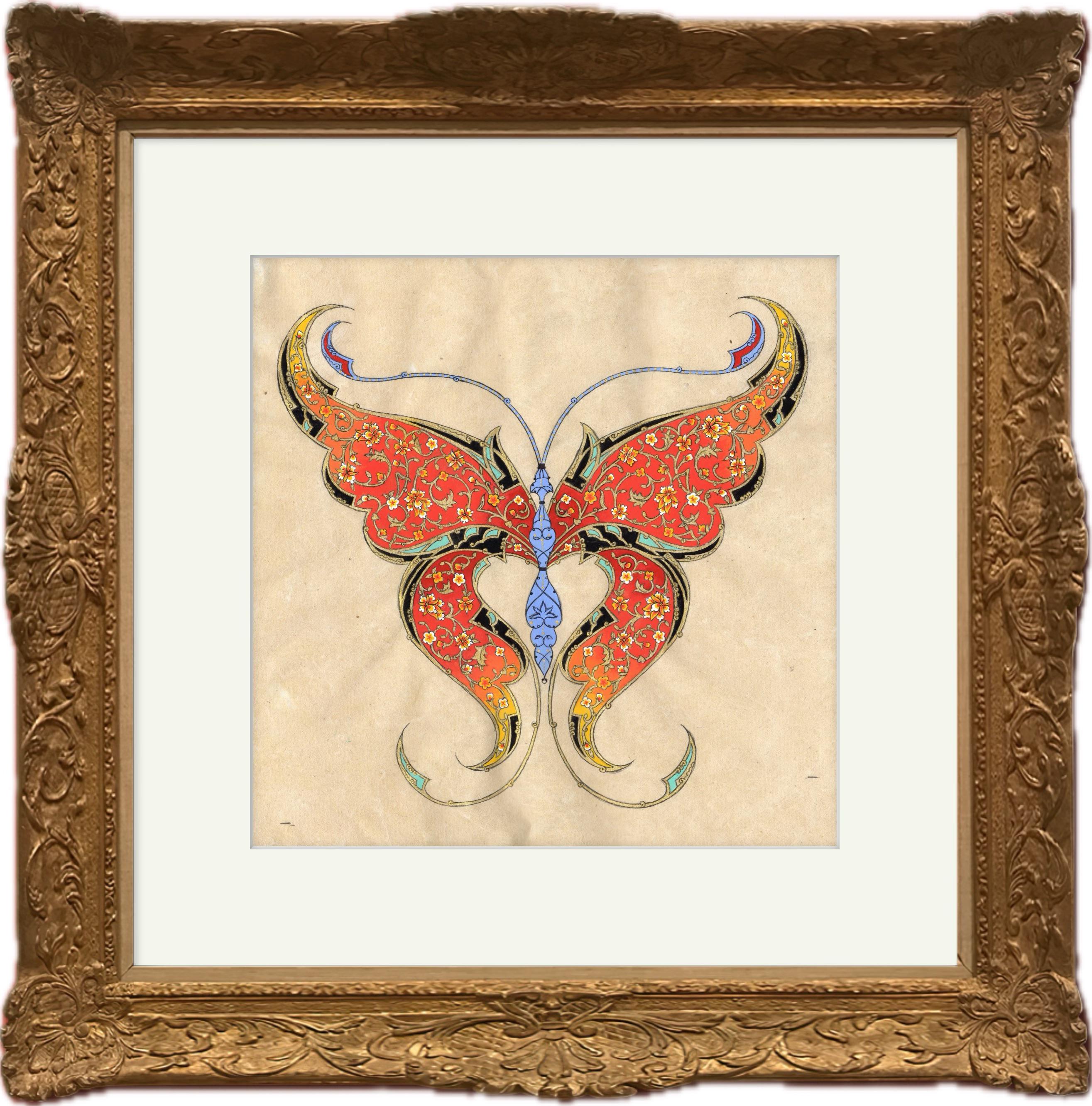 Fine Art - Butterfly Ornamental Illustration, Fine Miniature painting, “ FLORAL FLIGHT “ Central Asian Fine Art piece ( MATTED )