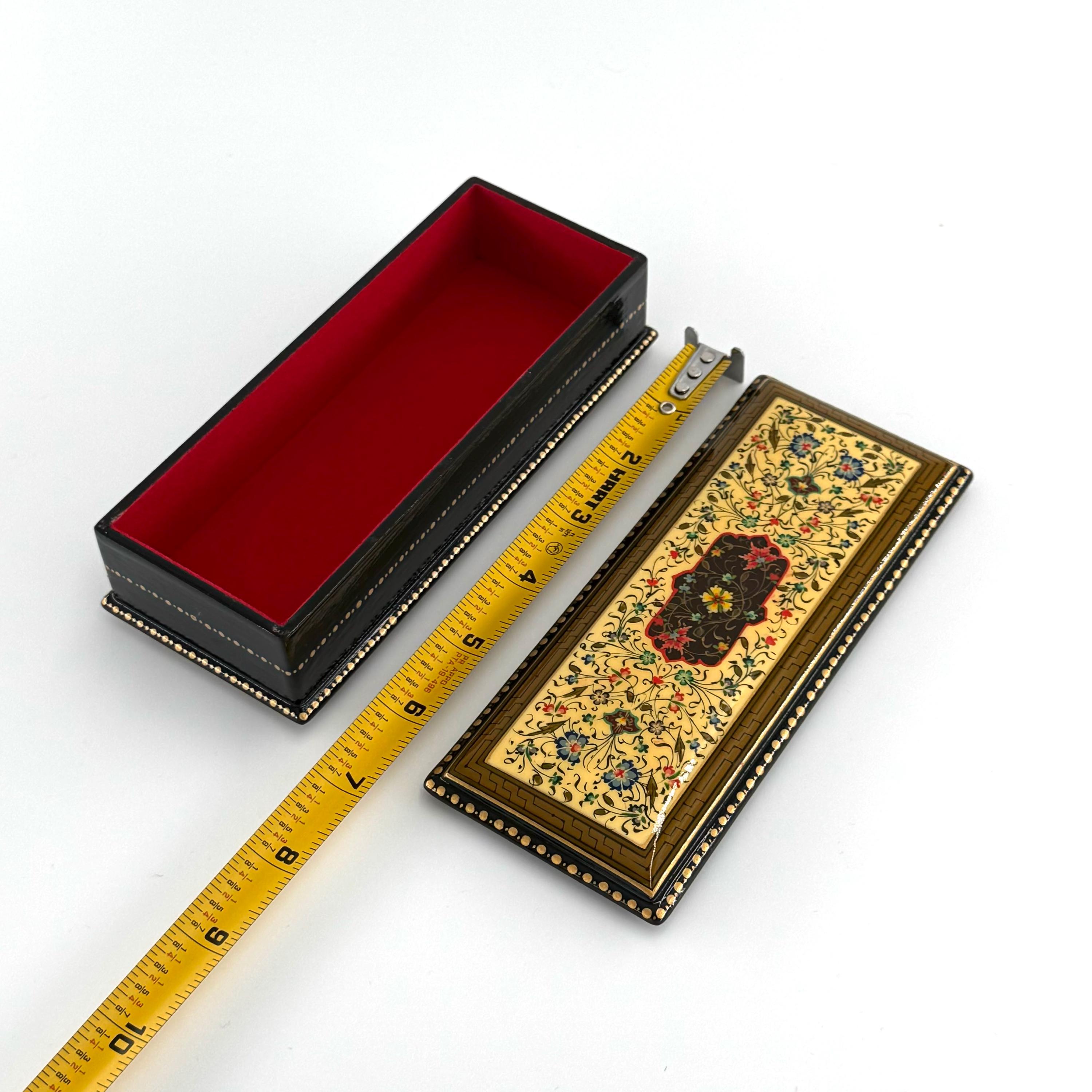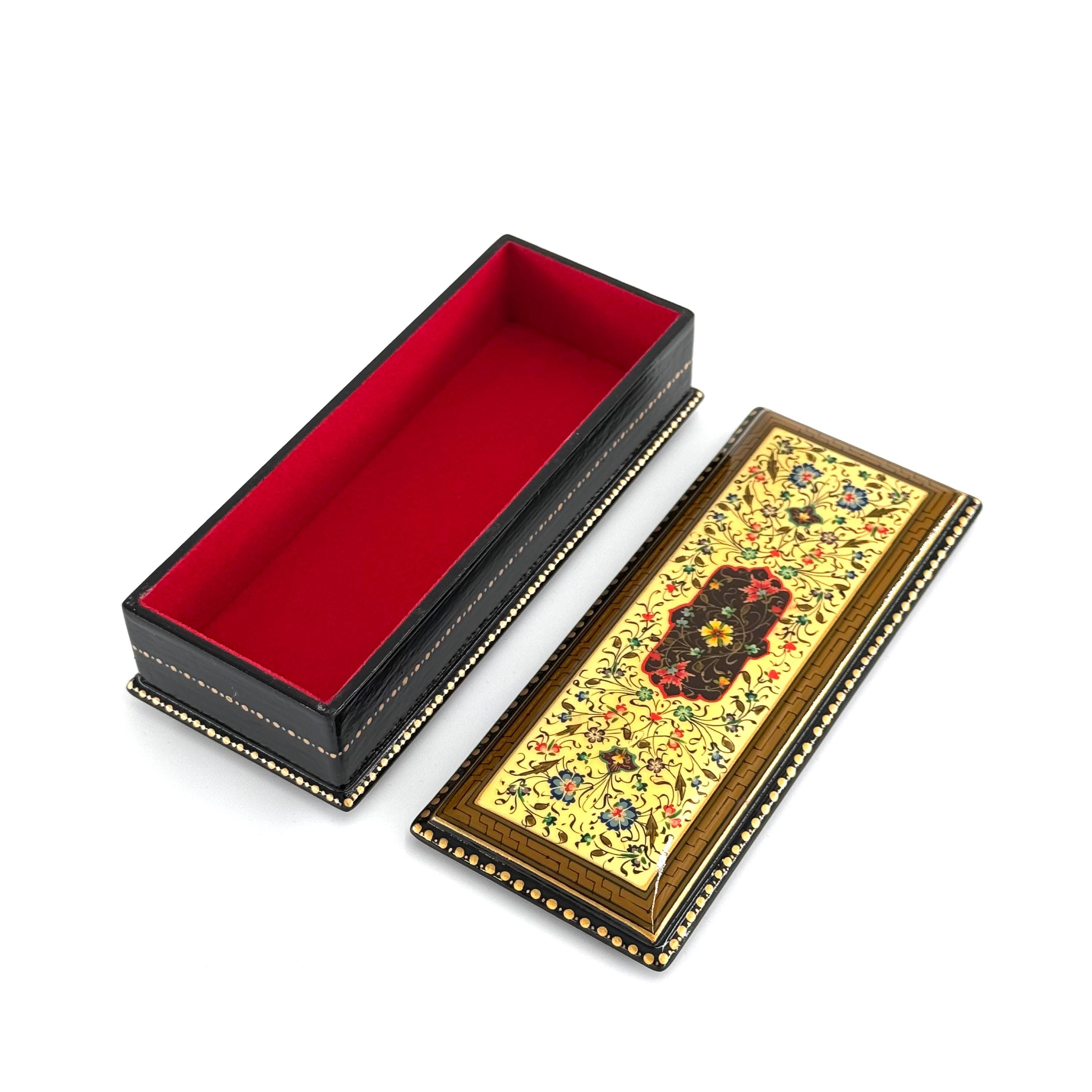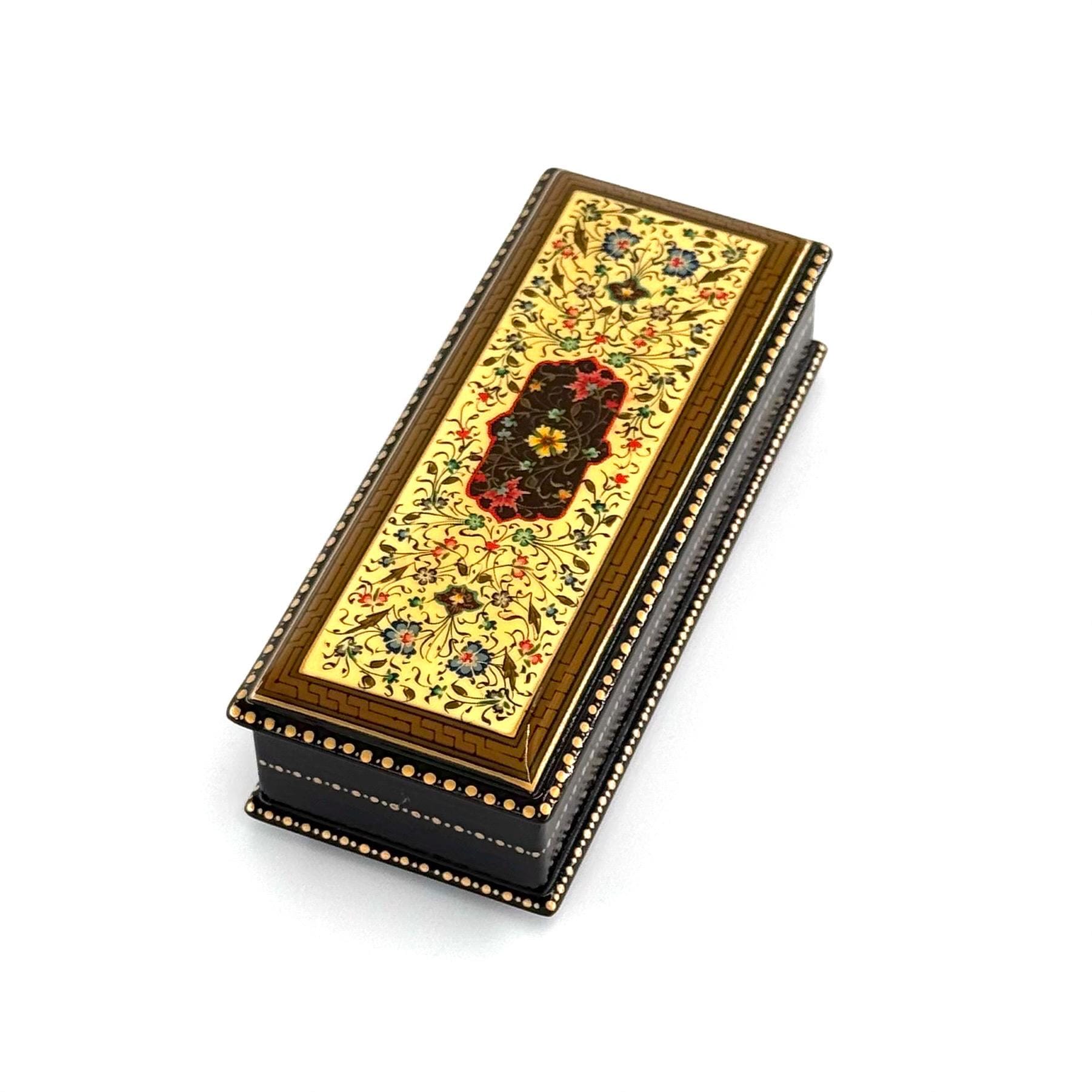 Papier-Mache Lacquered Jewelry Box - Handcrafted Ultra Fine Patterns over Gold Leaf Plated Elegance | Luxury Velvet-Lined | Unique Tiny Box