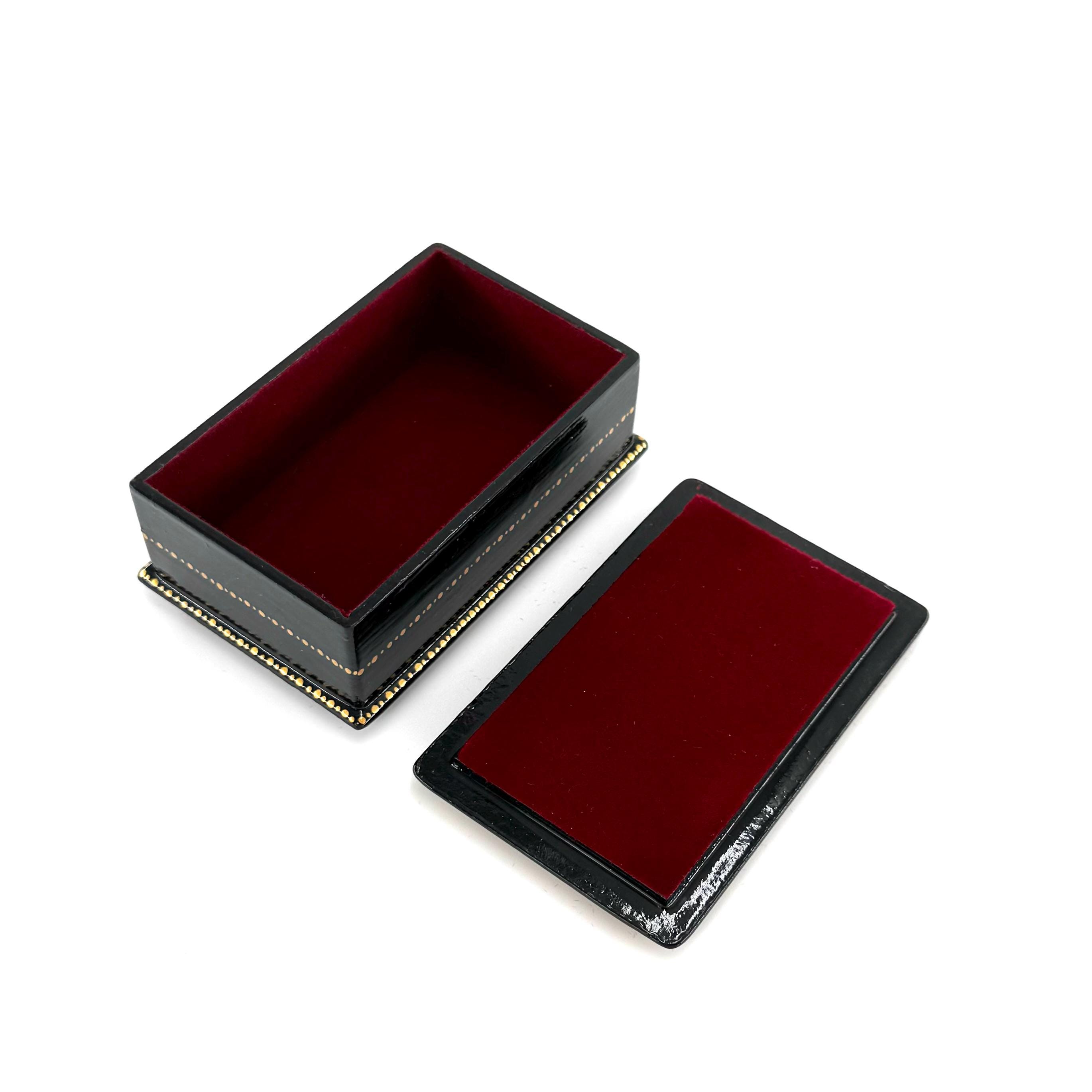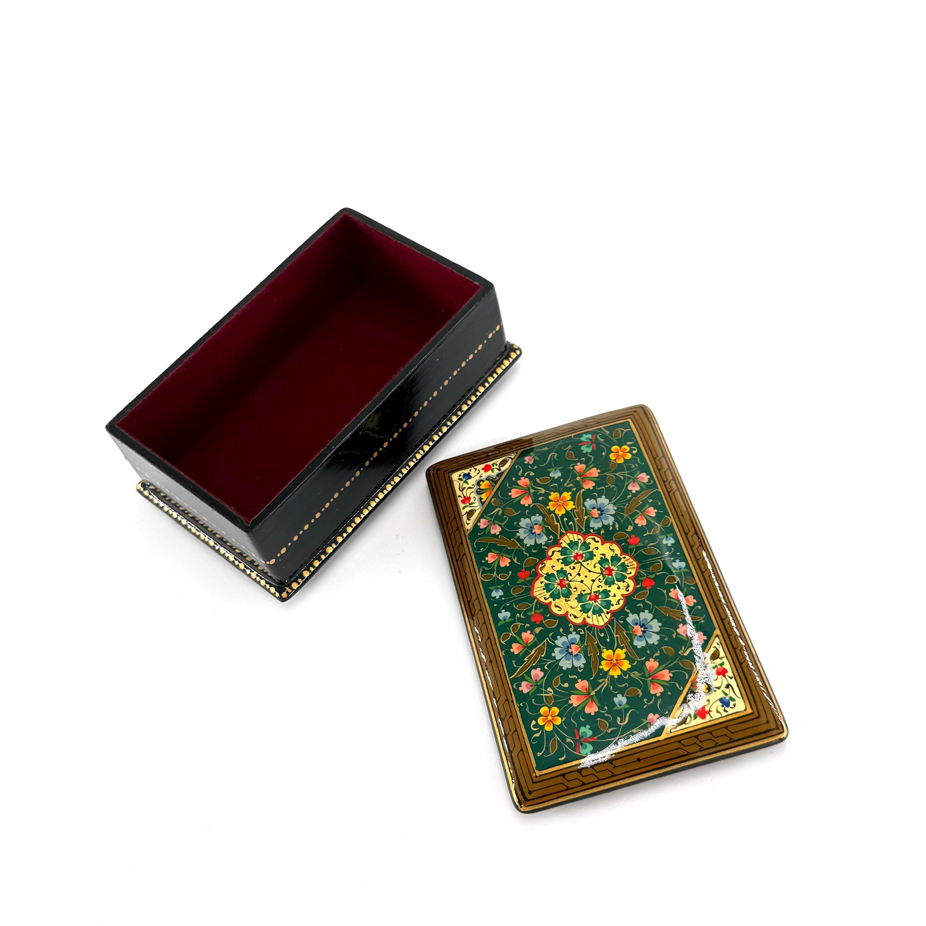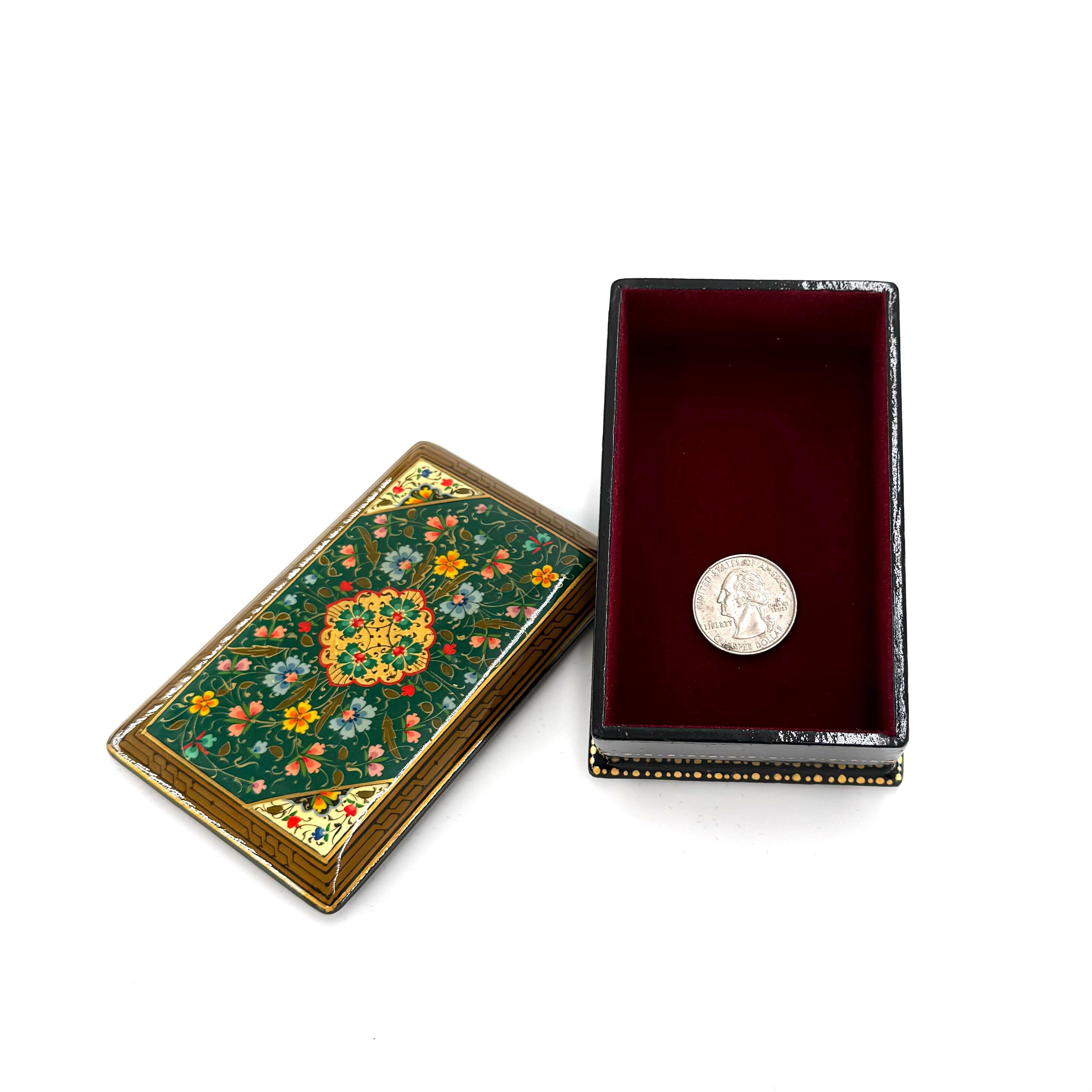 Papier-Mache Lacquered Jewelry Box - Handcrafted Ultra Fine Patterns over Gold Leaf Plated Elegance | Luxury Velvet-Lined | Unique Tiny Box