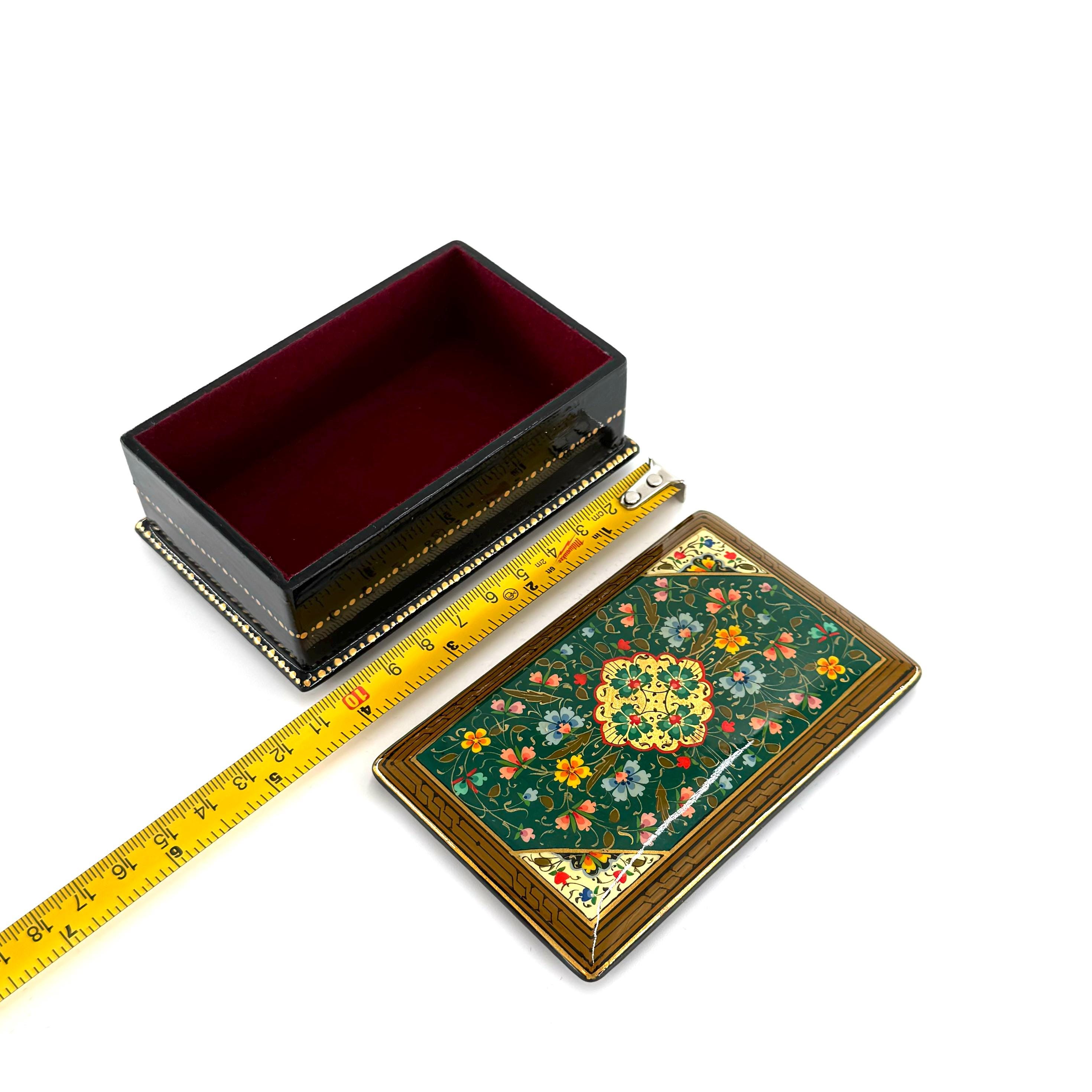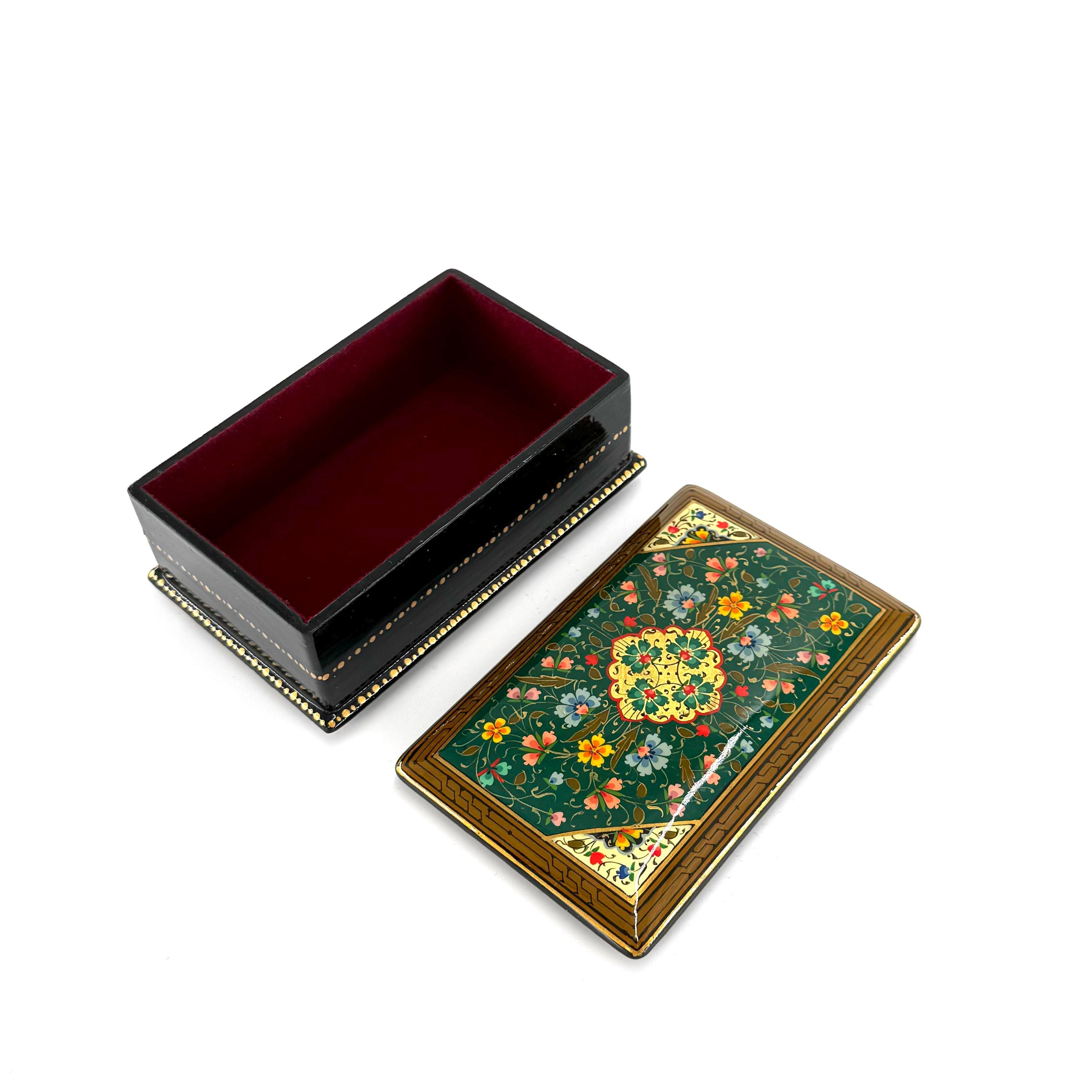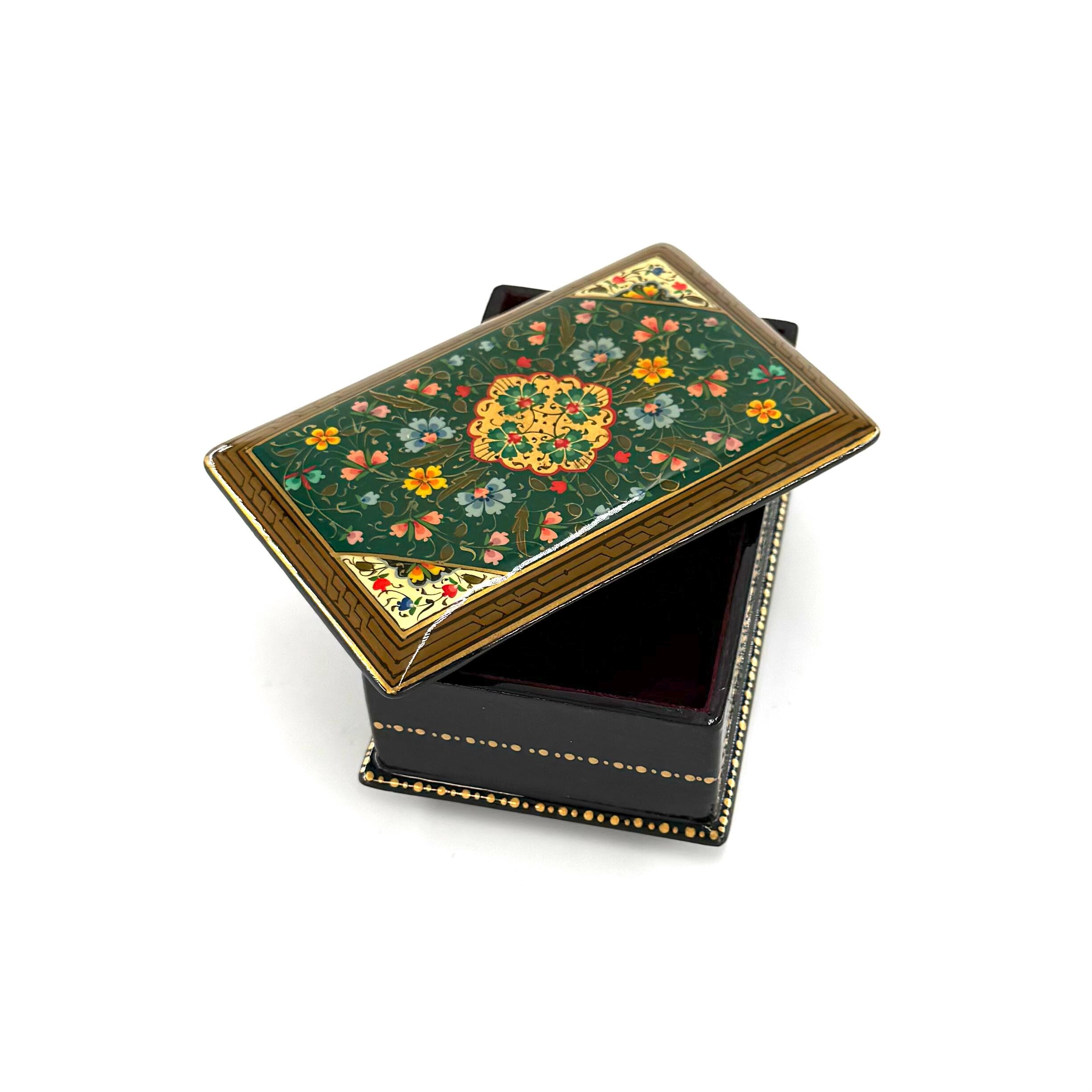 Papier-Mache Lacquered Jewelry Box - Handcrafted Ultra Fine Patterns over Gold Leaf Plated Elegance | Luxury Velvet-Lined | Unique Tiny Box