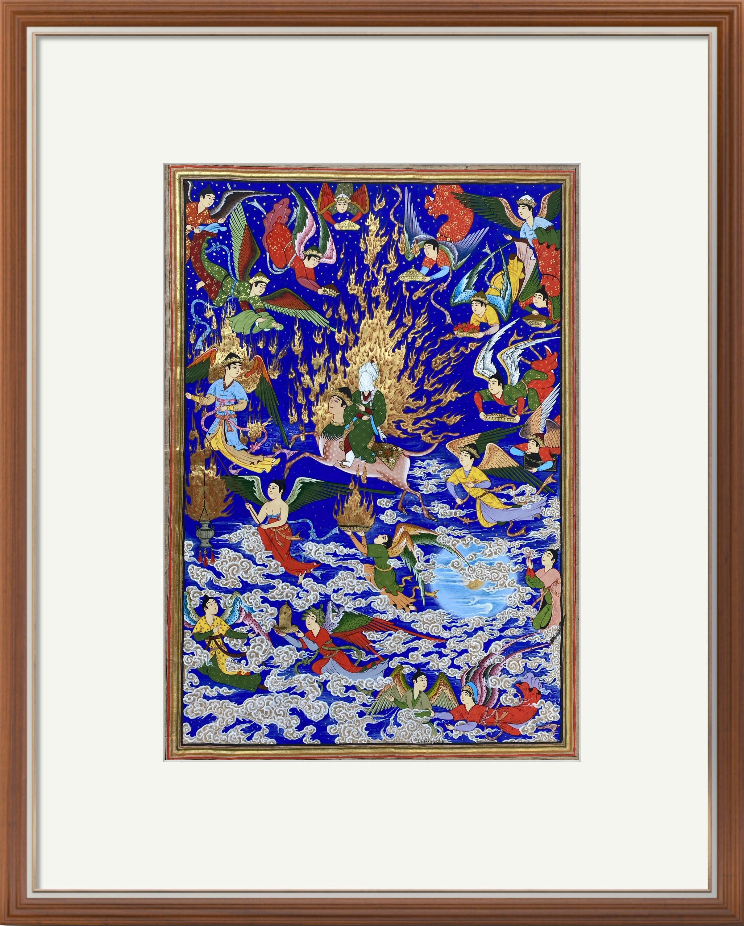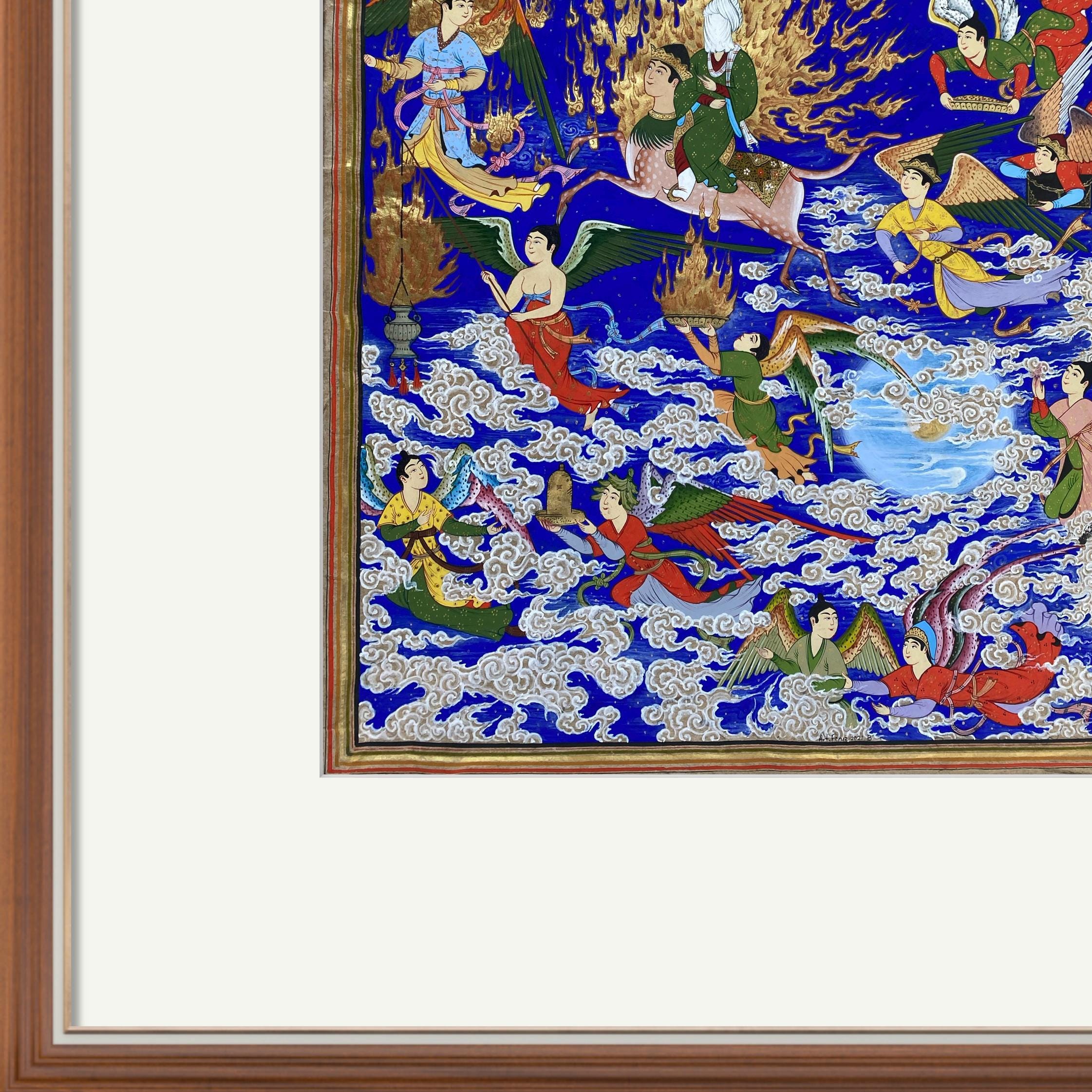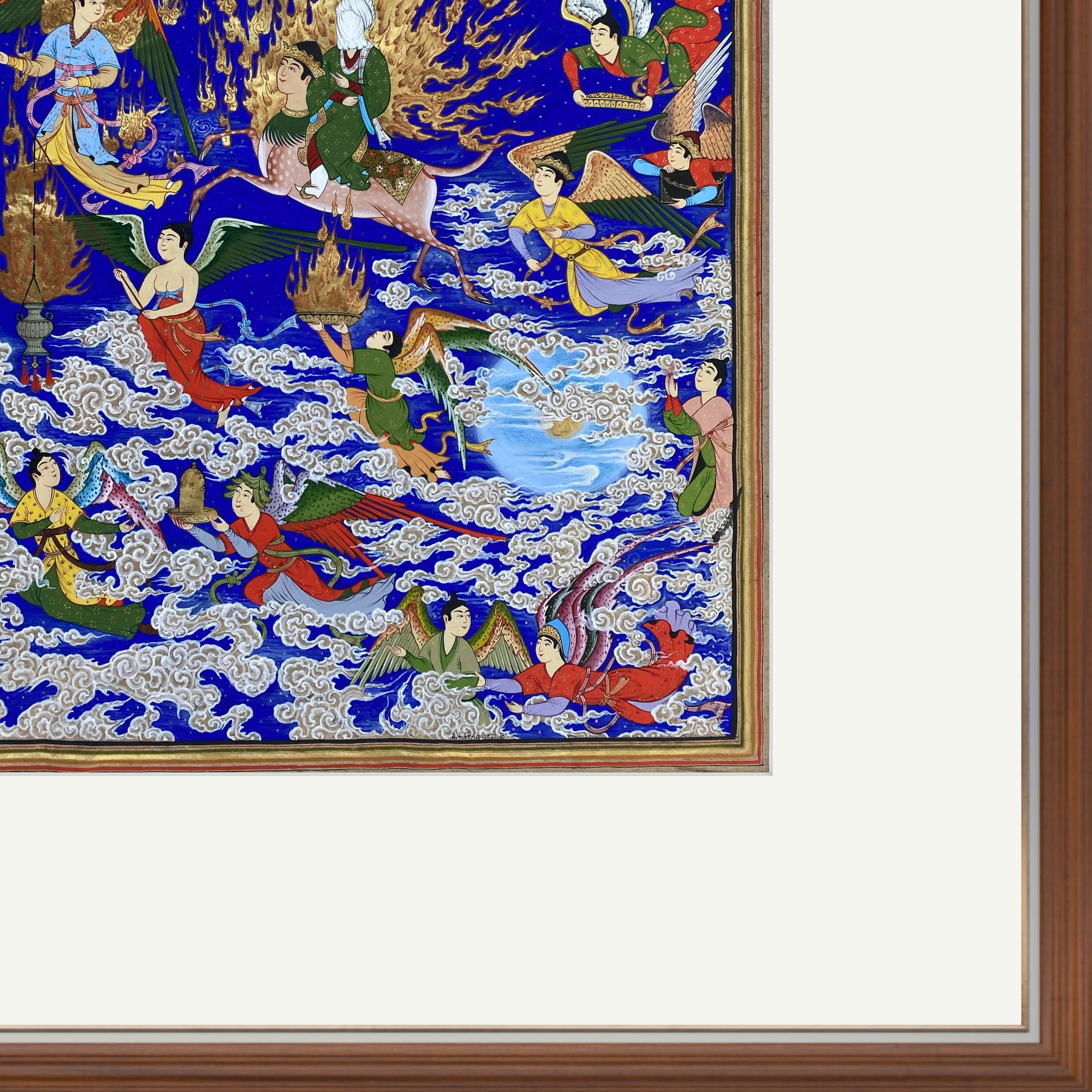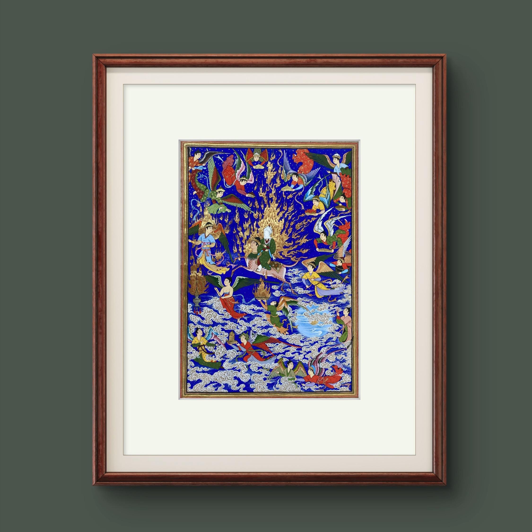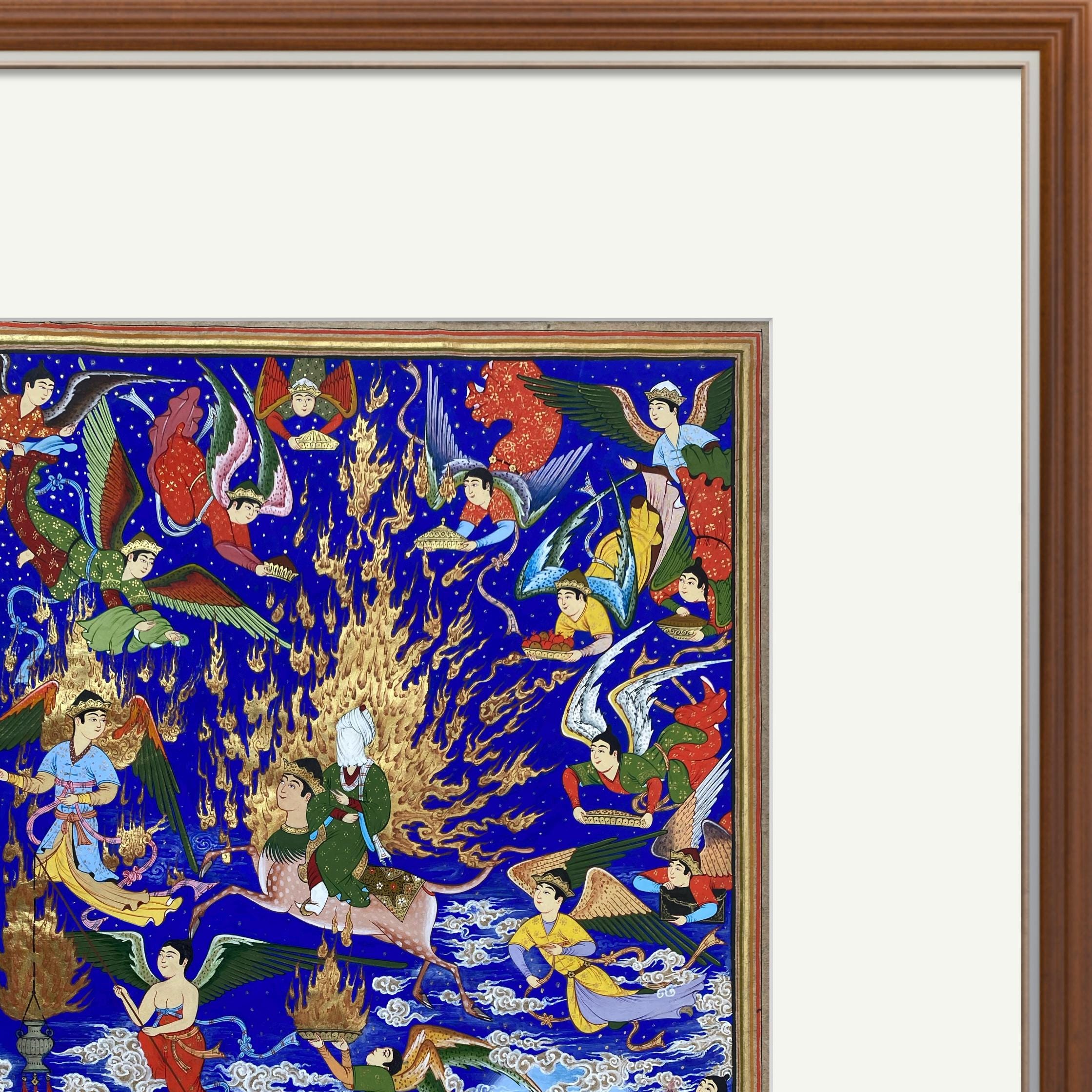 Celestial Art – The Prophet’s Journey (Mi’raj) | Handcrafted Persian Miniature Painting on Silk Paper | Luxury Islamic Wall Art | UNFRAMED.