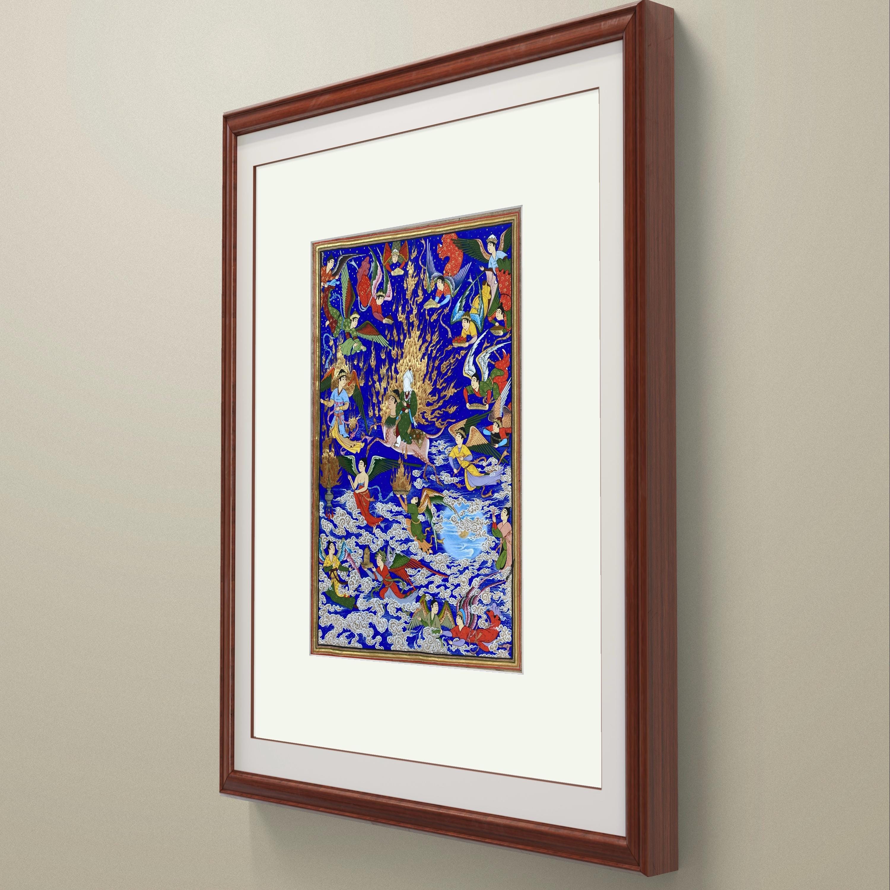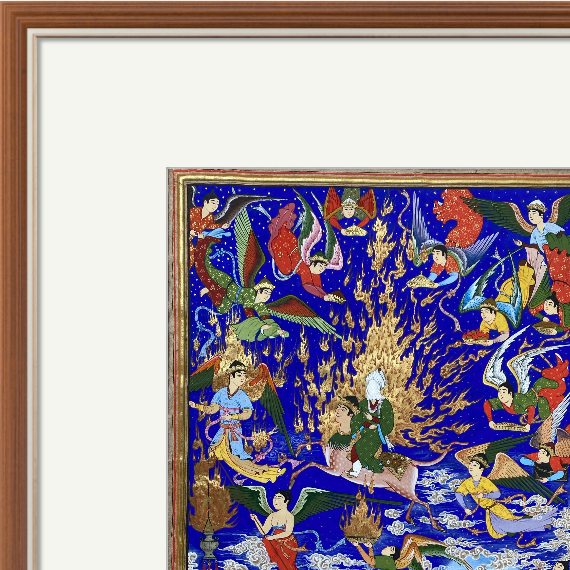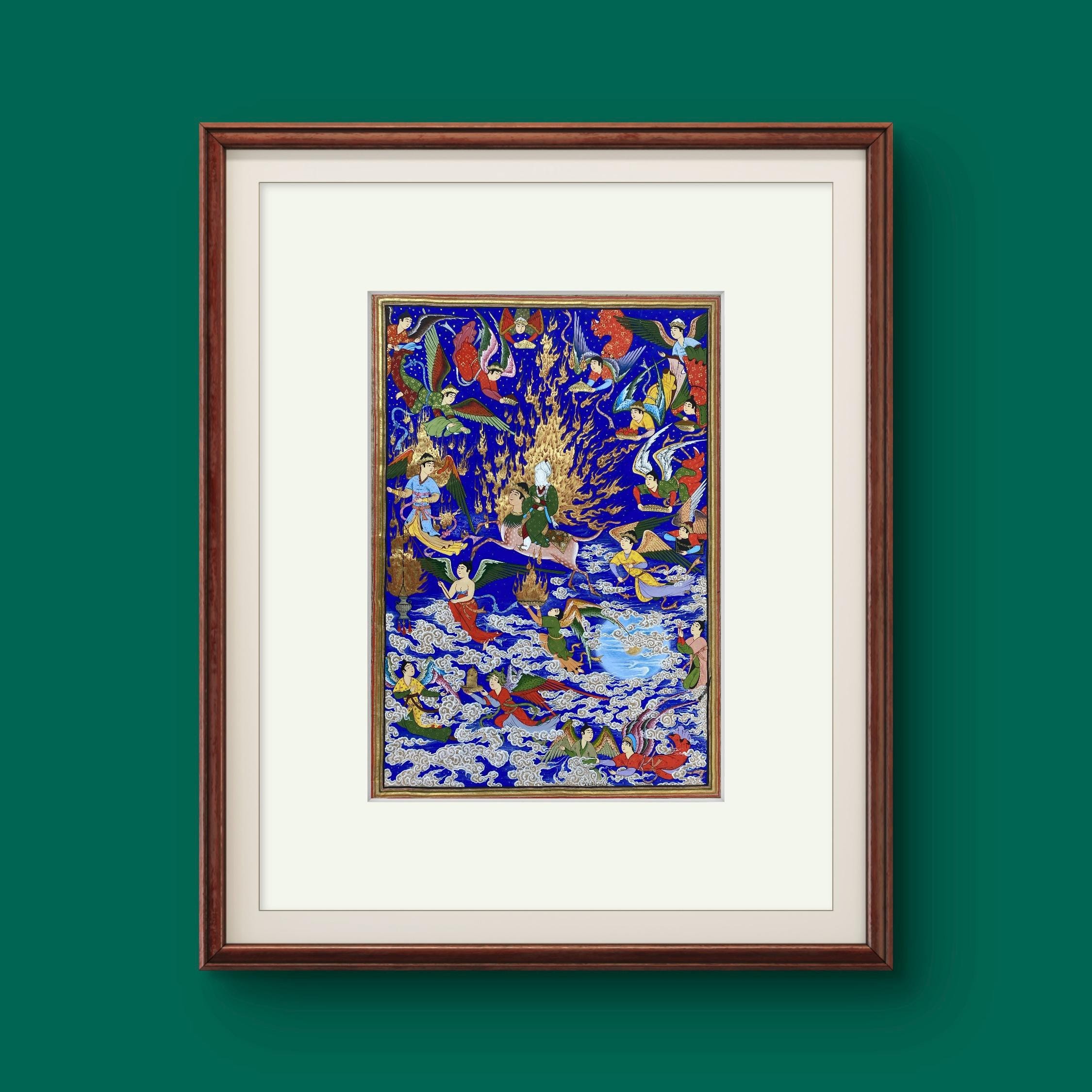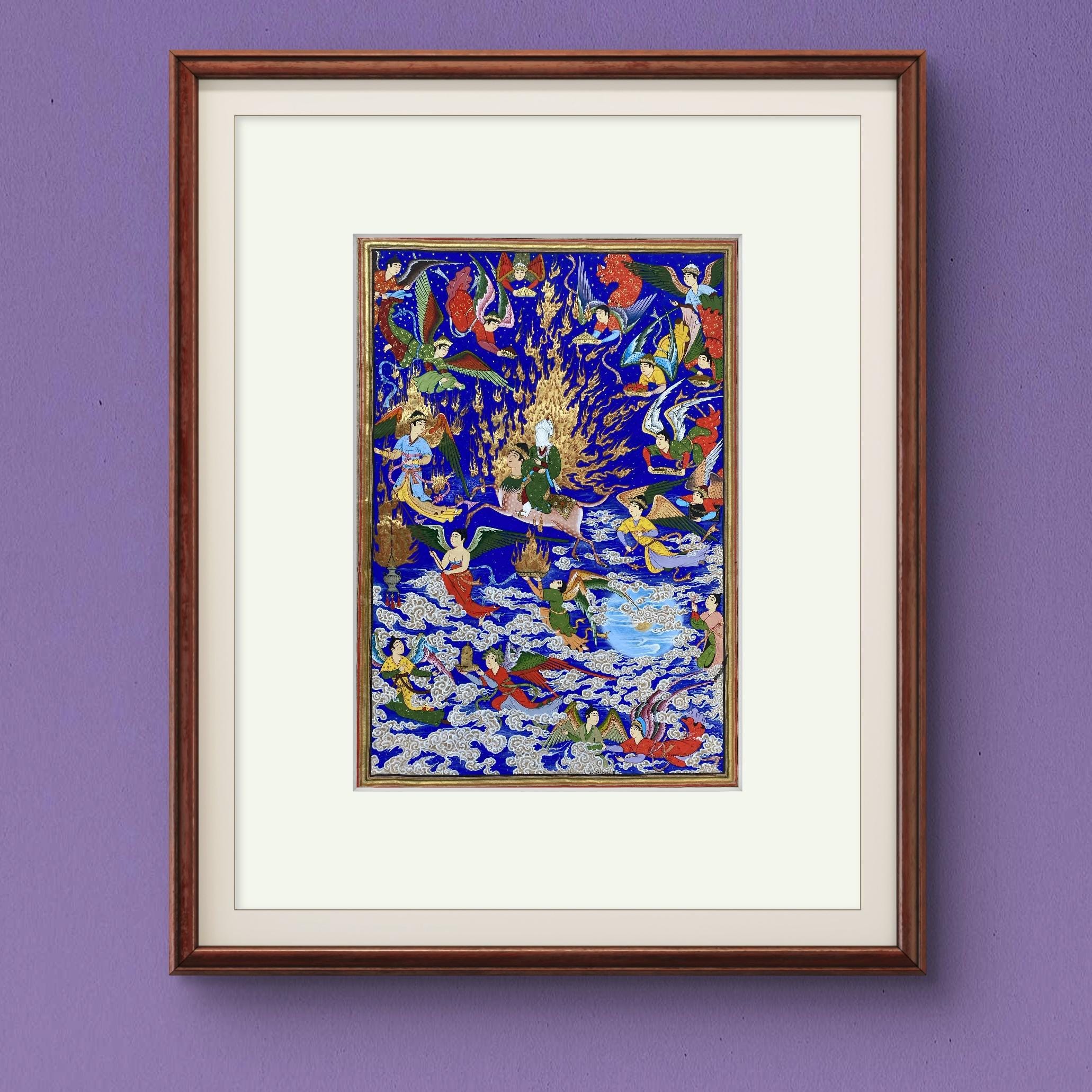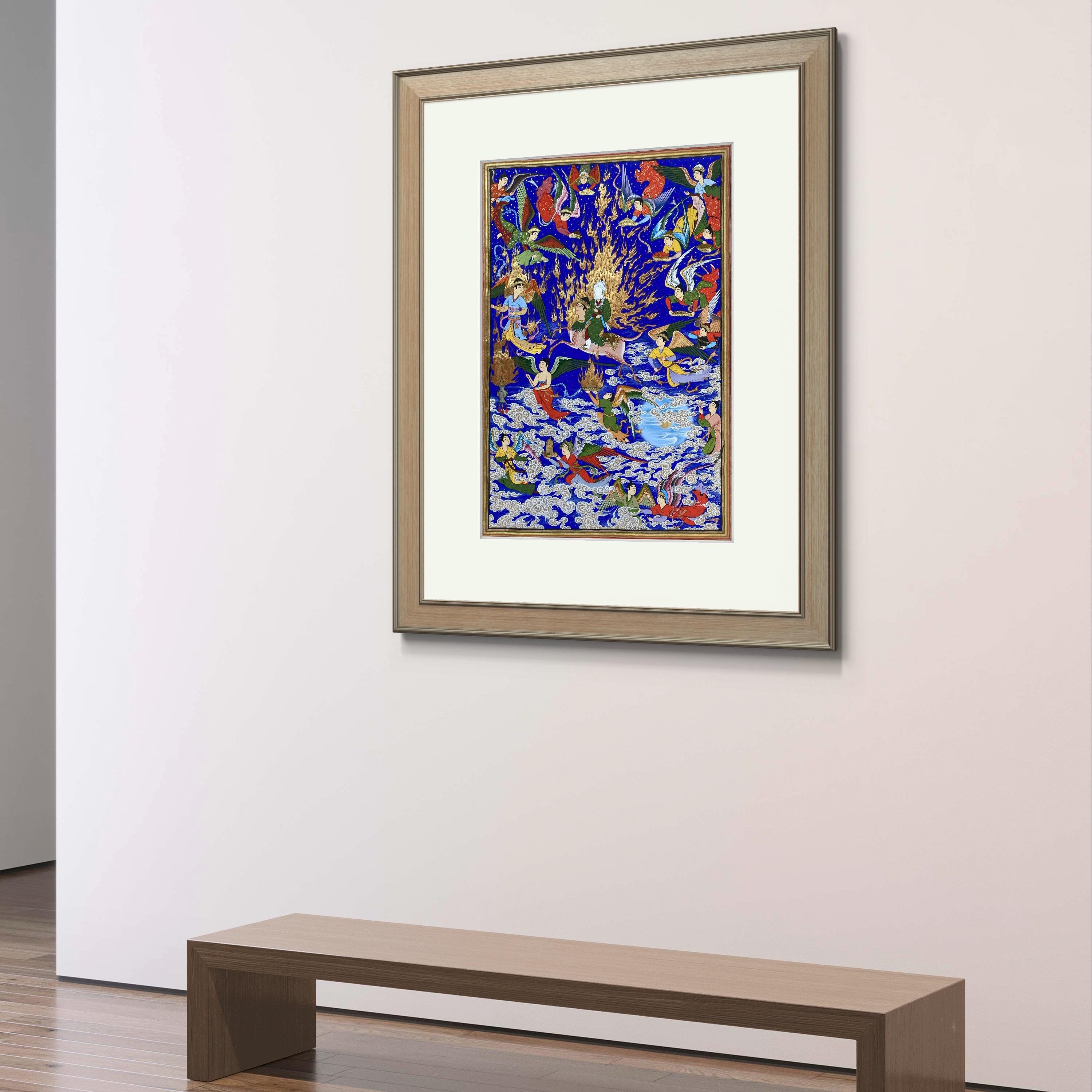 Celestial Art – The Prophet’s Journey (Mi’raj) | Handcrafted Persian Miniature Painting on Silk Paper | Luxury Islamic Wall Art | UNFRAMED.
