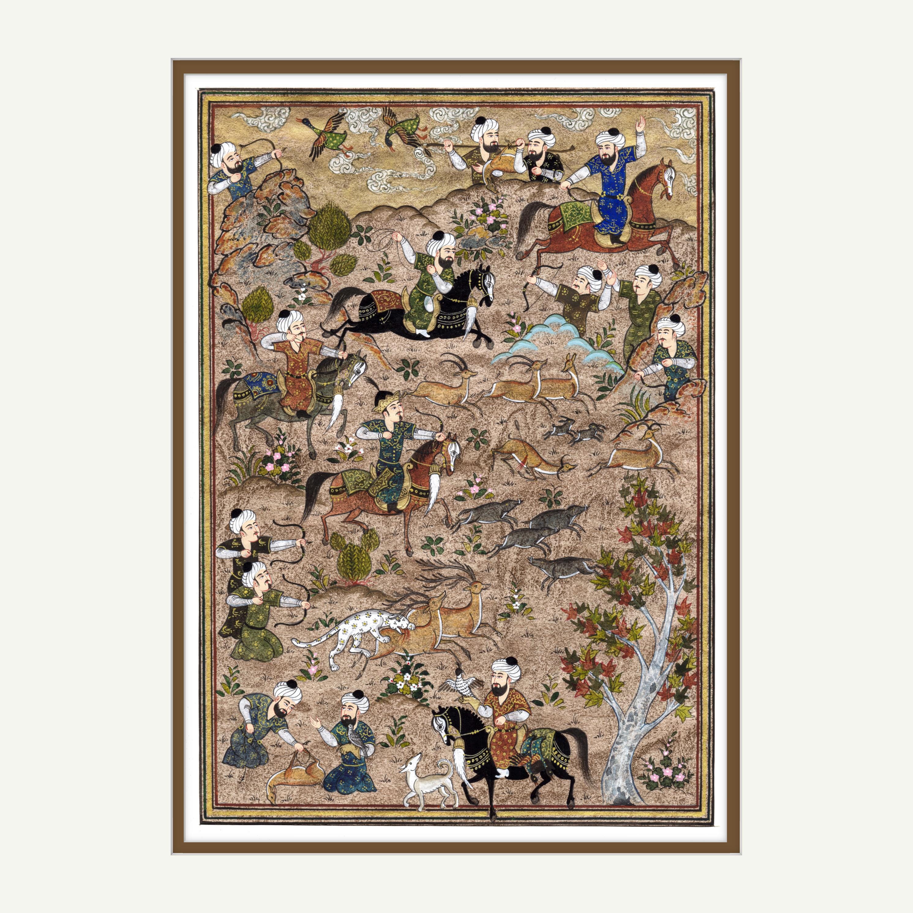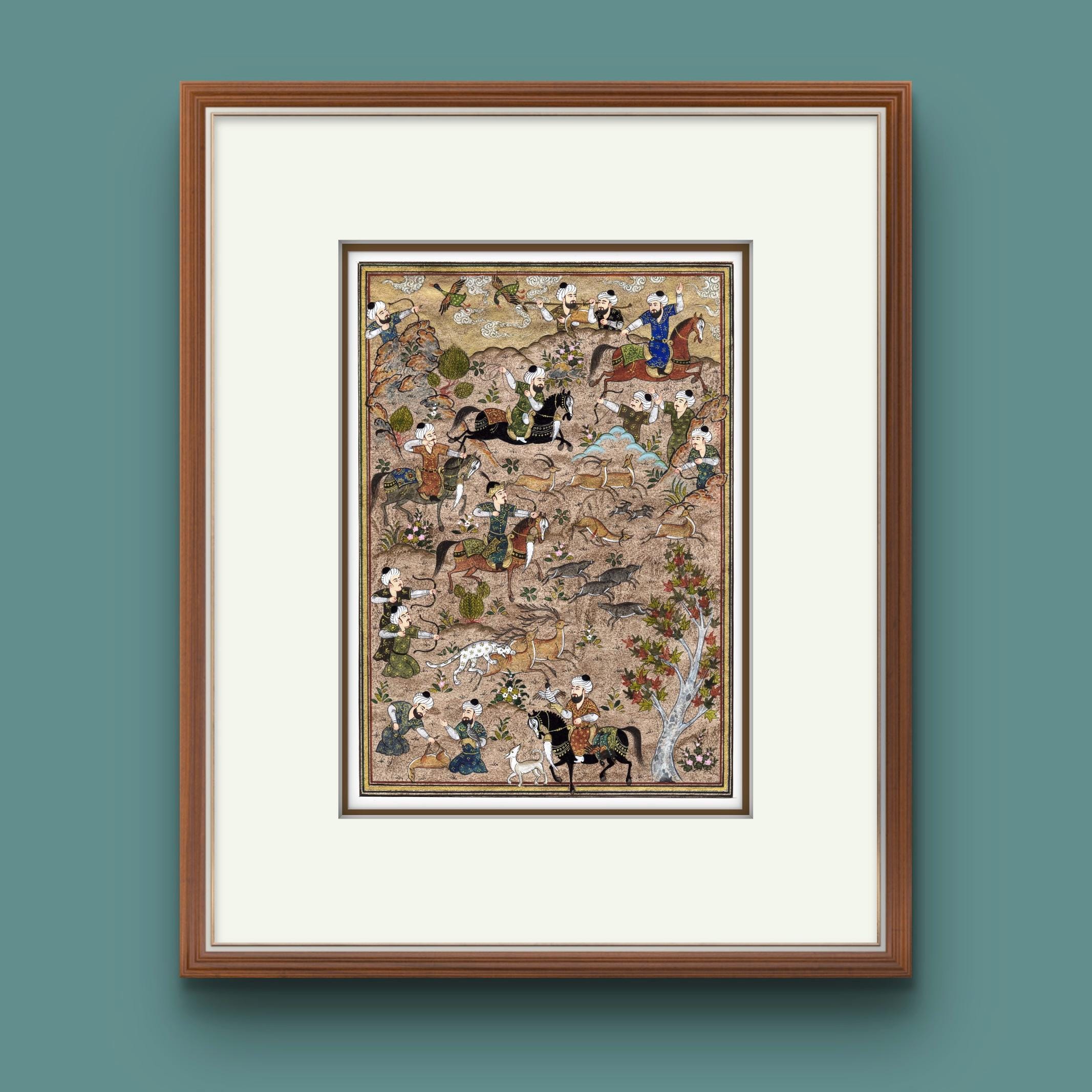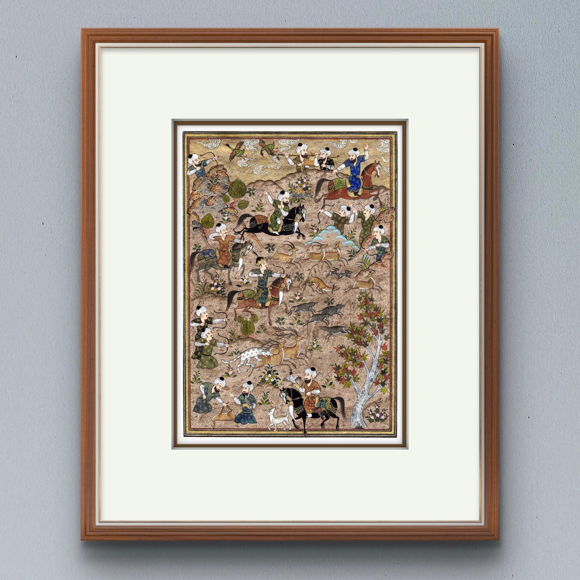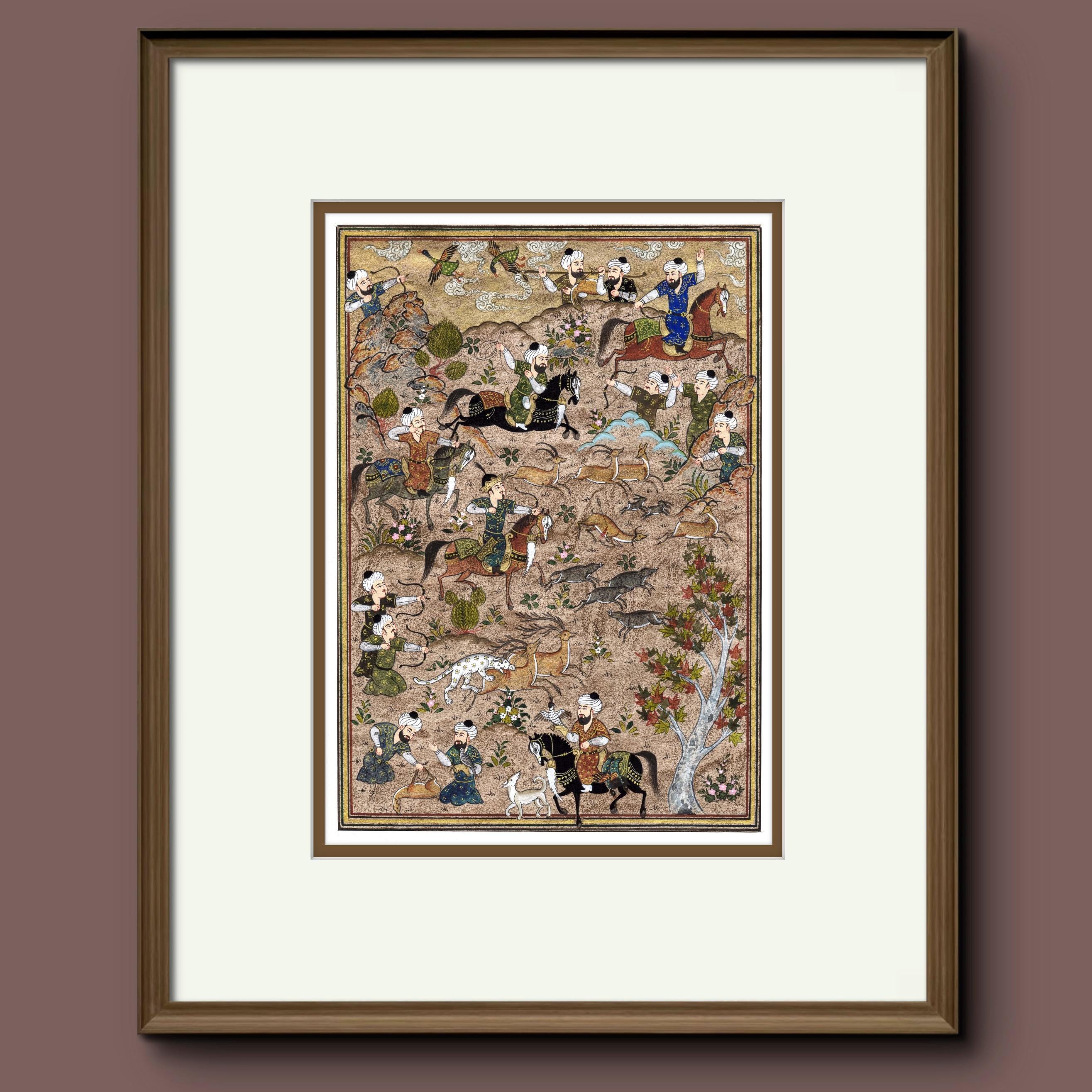 Royal Hunting Scene - Miniature Painting from Shahnameh-Book of Kings | Central Asian Cultural Heritage-Fine Silk Paper | Luxury Home Decor