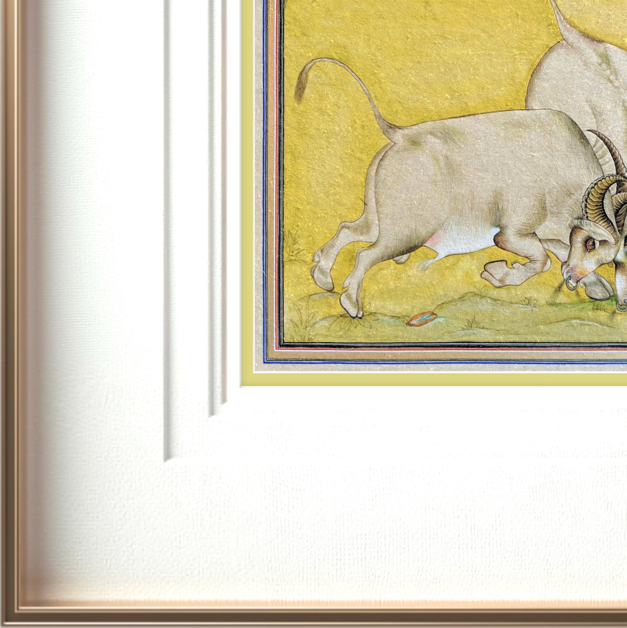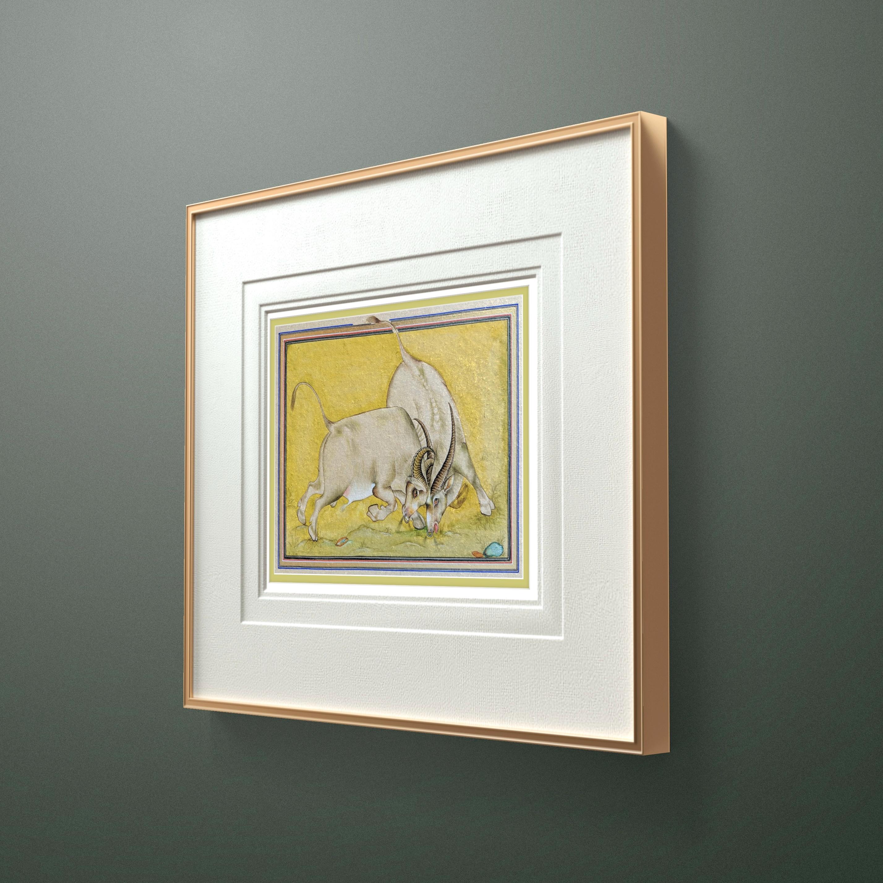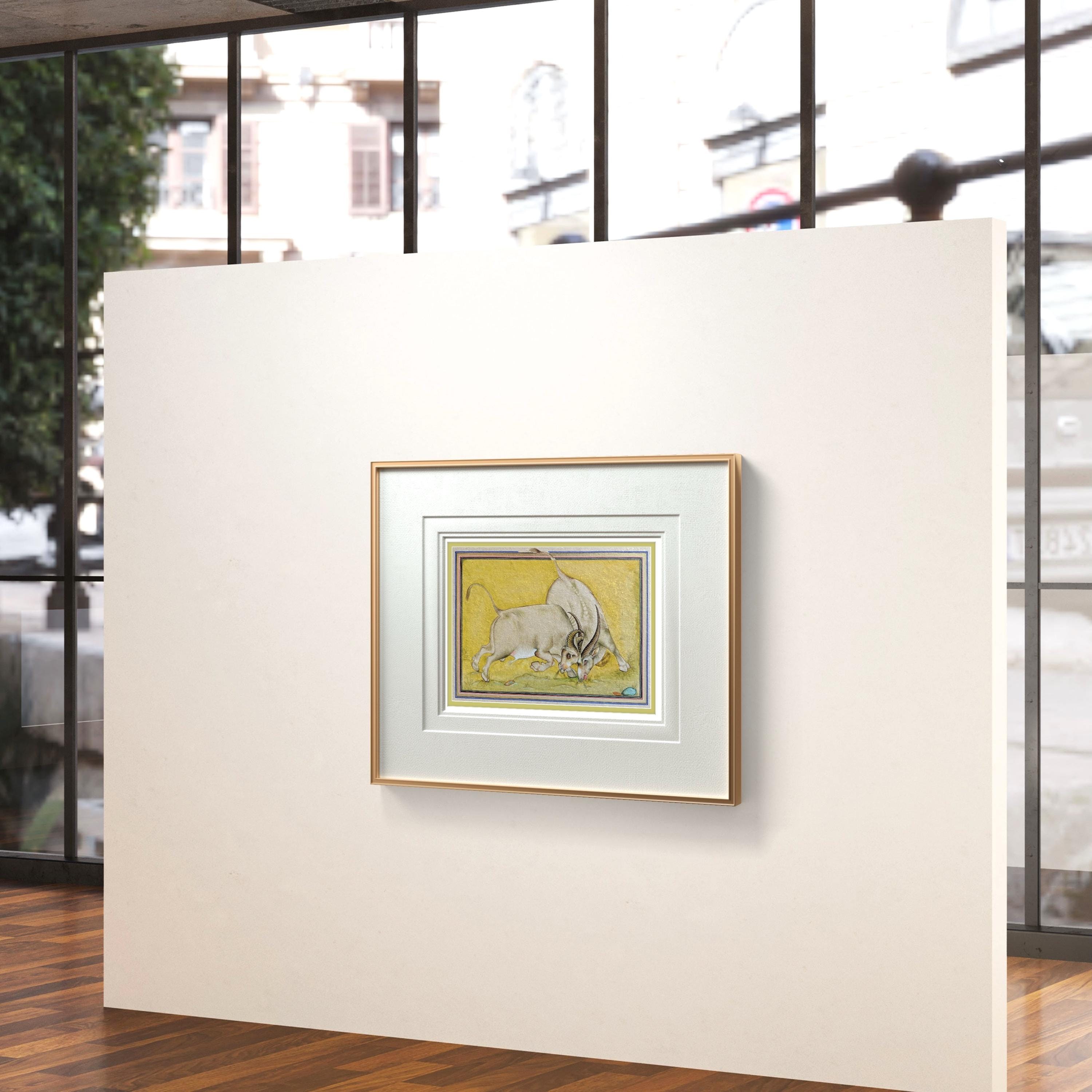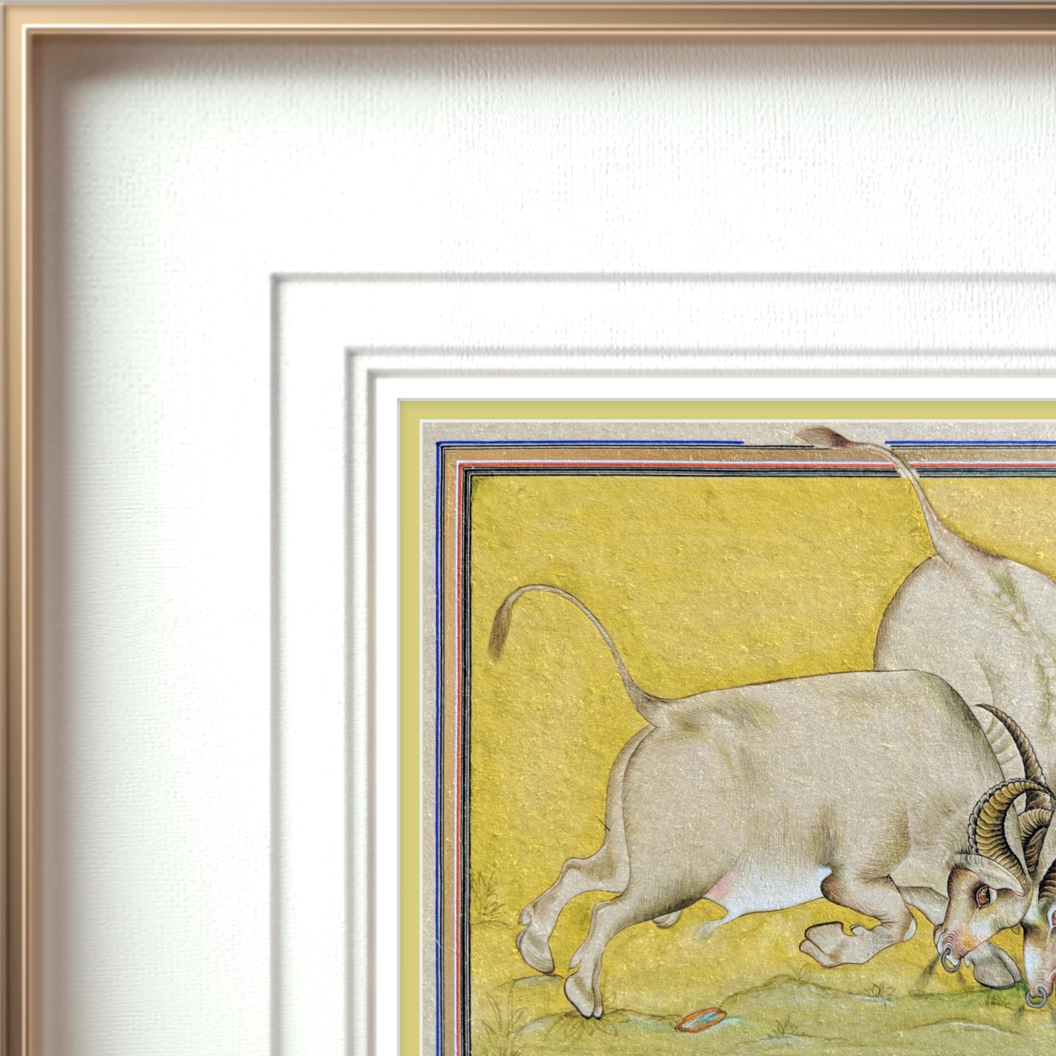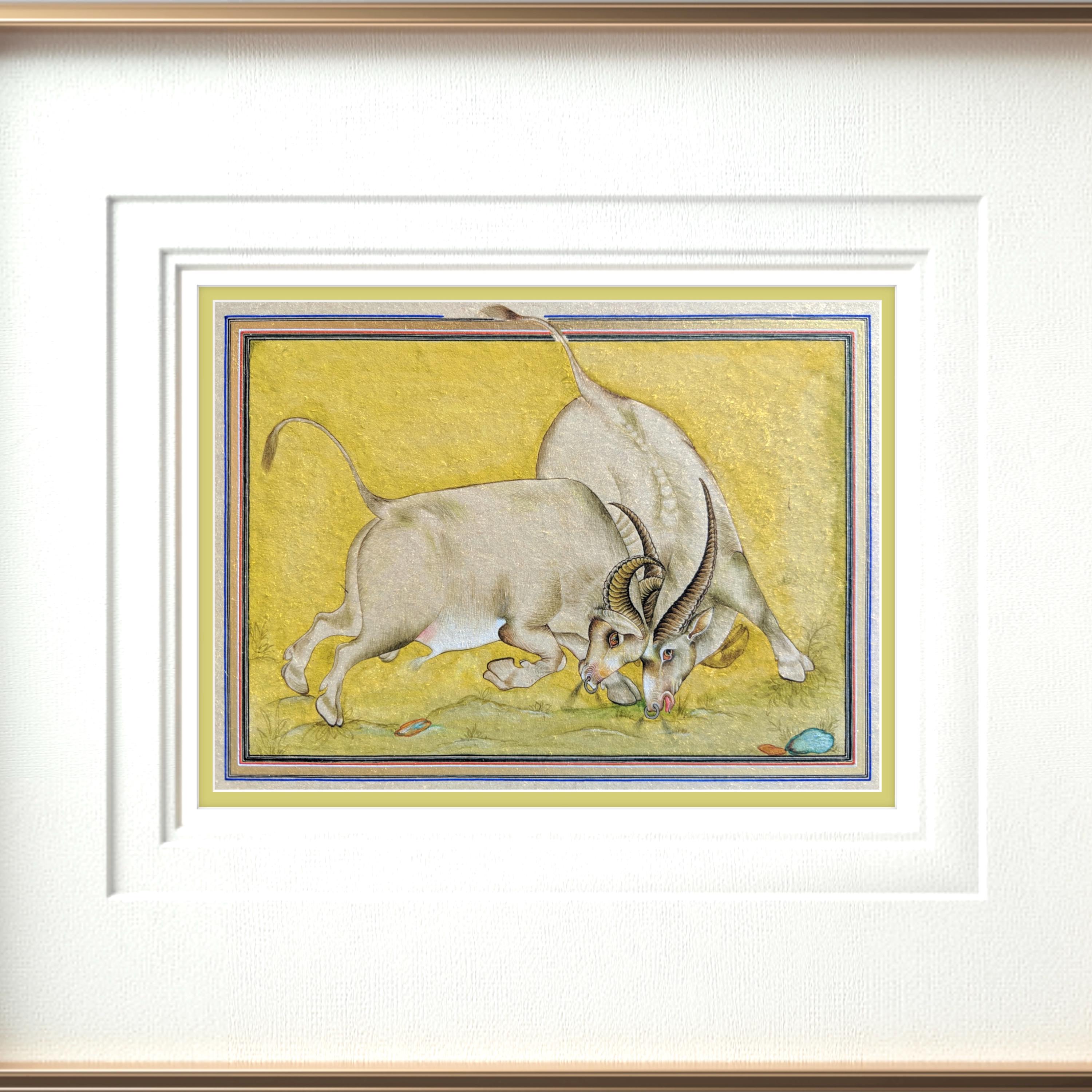 Majestic Miniature Illustration of Clash of Titans: Battling Bulls on Fine Silk | A Timeless Masterpiece of Strength, Elegance, and Fine Art