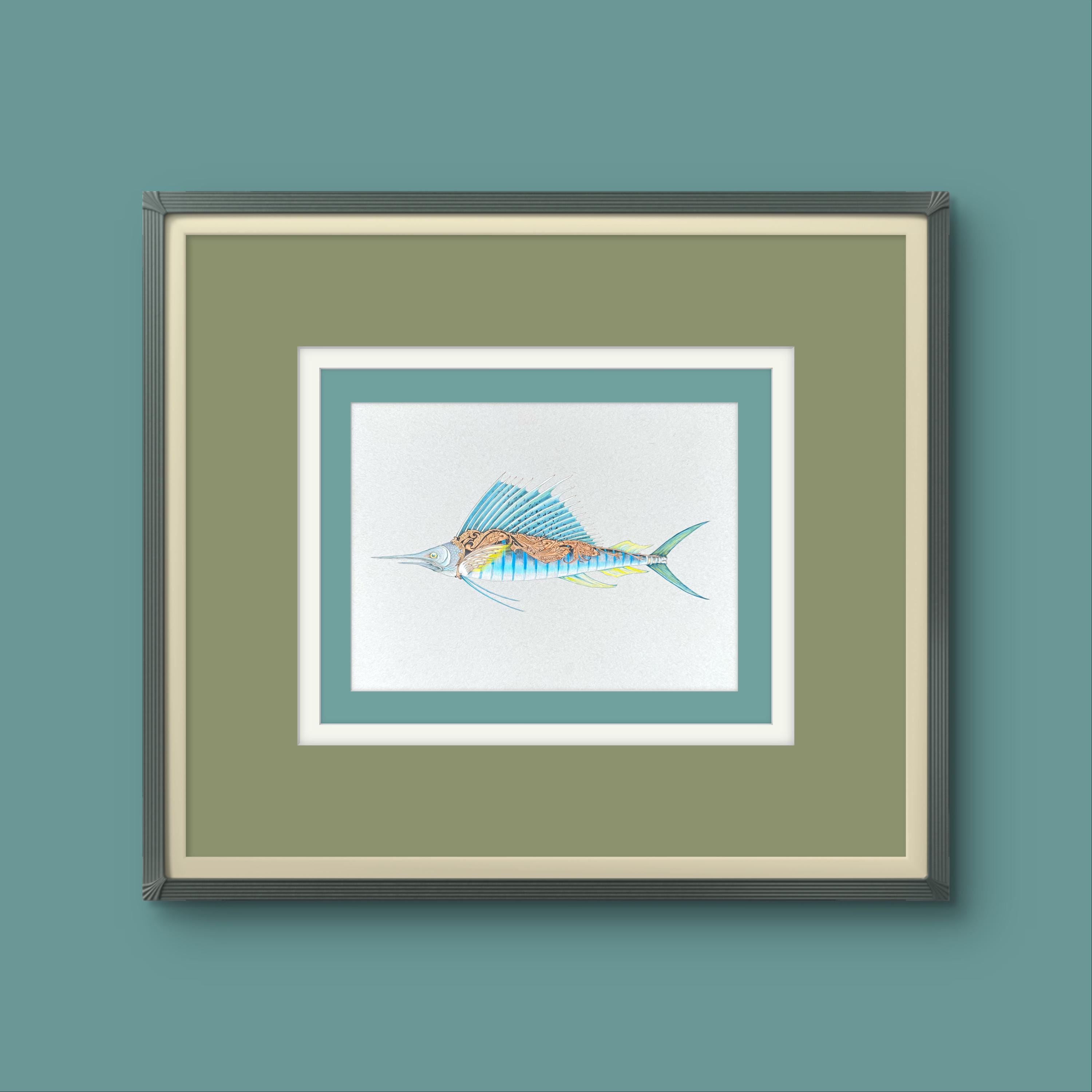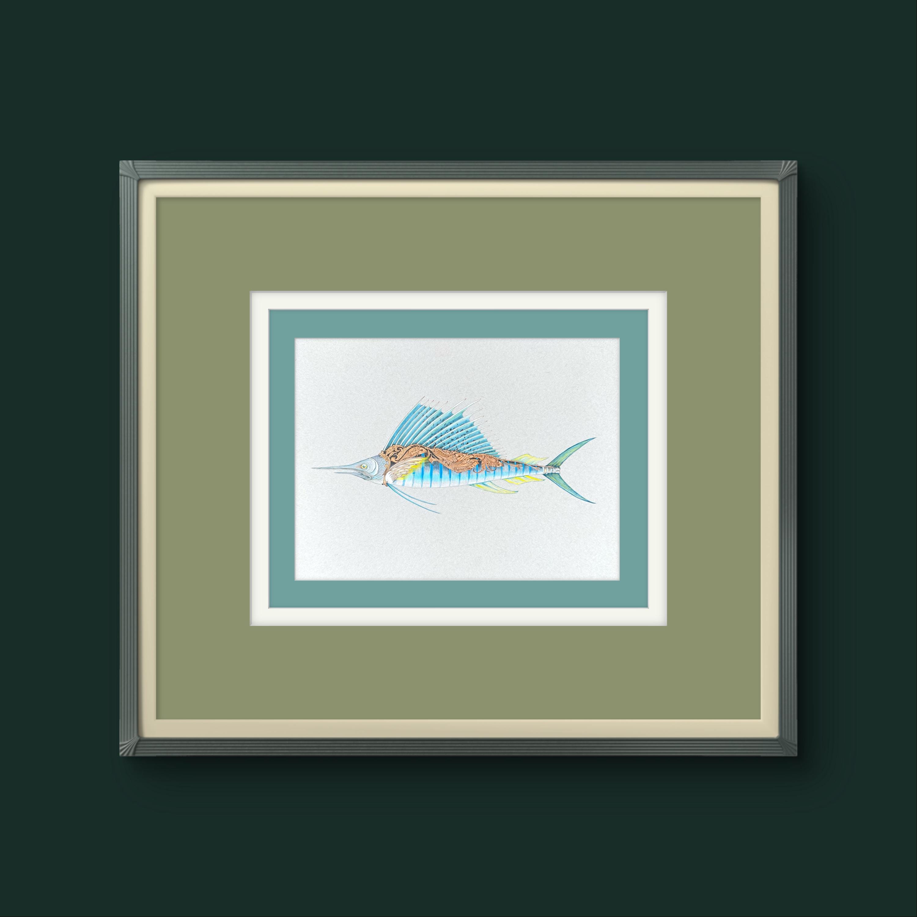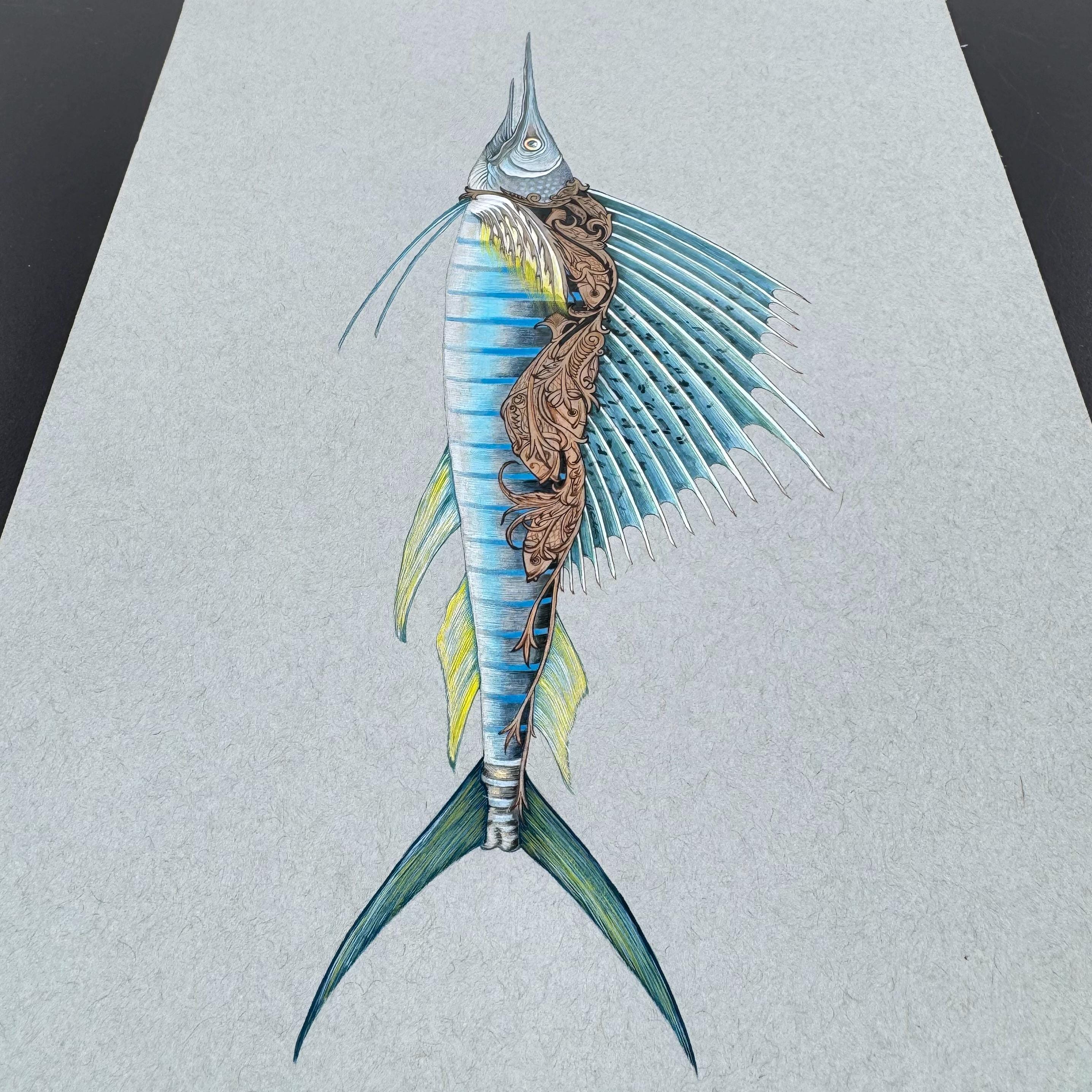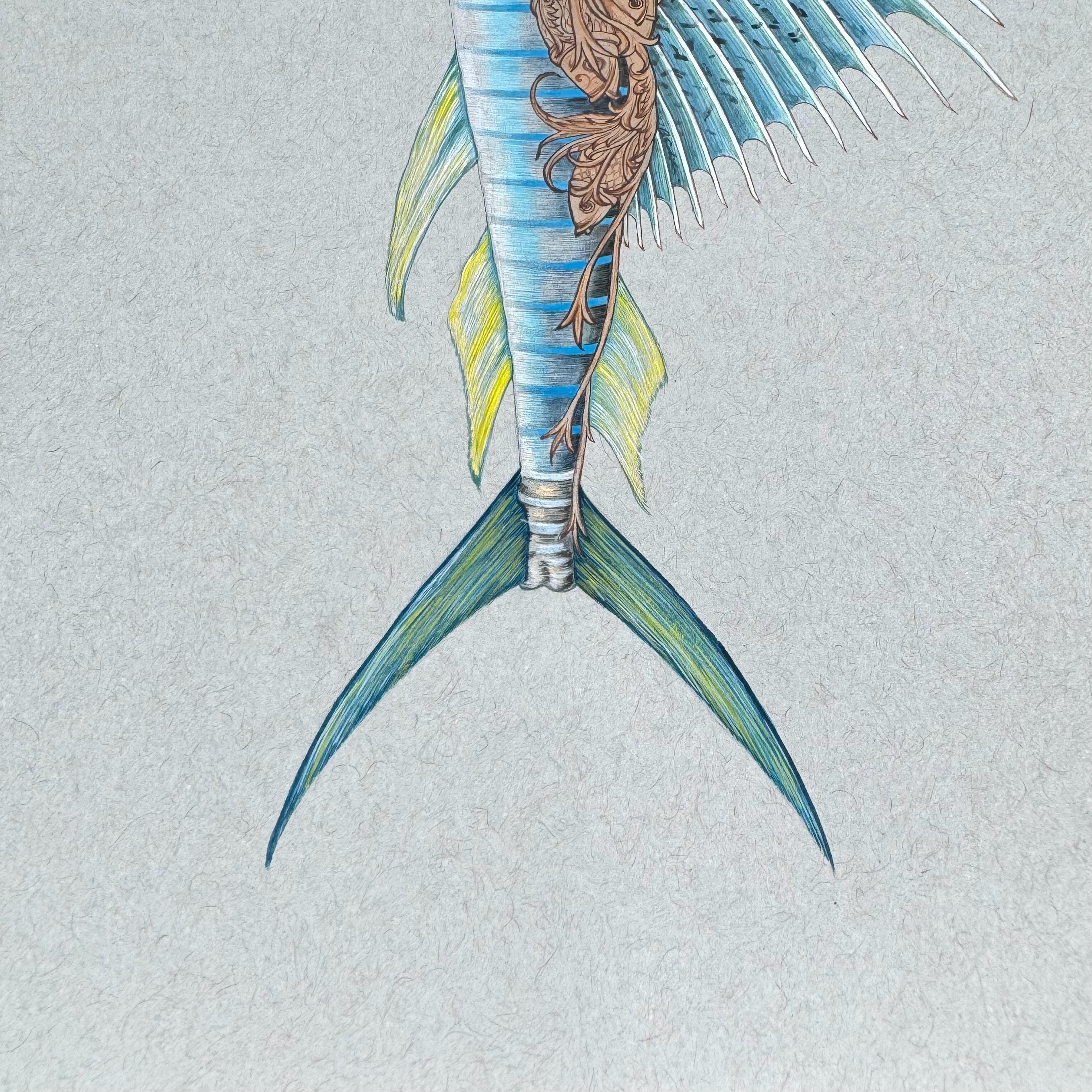 Sailfish Inspired Ultra-Fine Detailed Illustration | Deep Blue Marine Inspired Fine Painting, Ornamental Sailfish Art, Exclusive Decoration