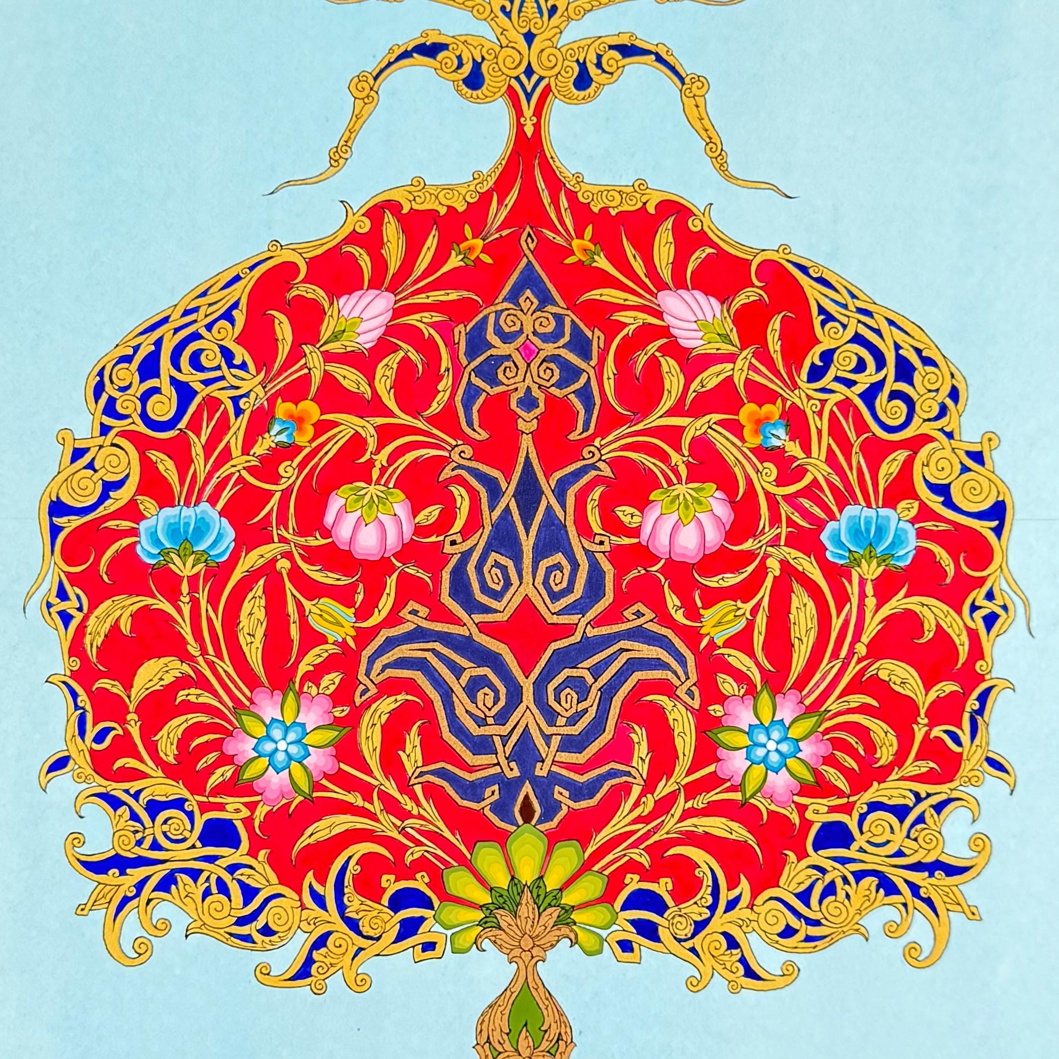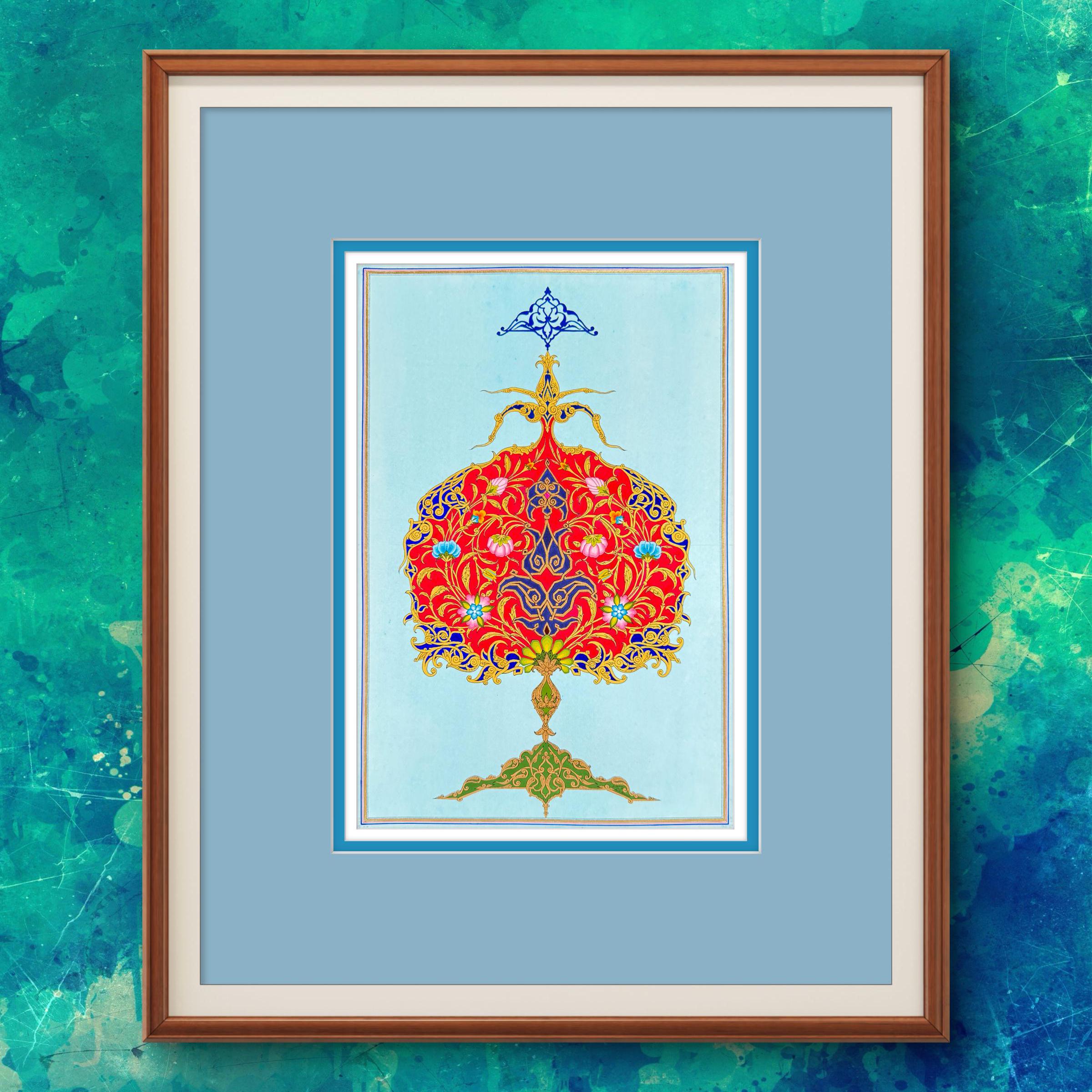 “The Flourishing Pomegranate” is a breathtaking example of Ornamental Miniature Painting, created with unparalleled craftsmanship on CANSON watercolor paper. Each line, meticulously painted under a magnifying glass, exemplifies extraordinary precision and a dedication to detail rarely seen in the art world.