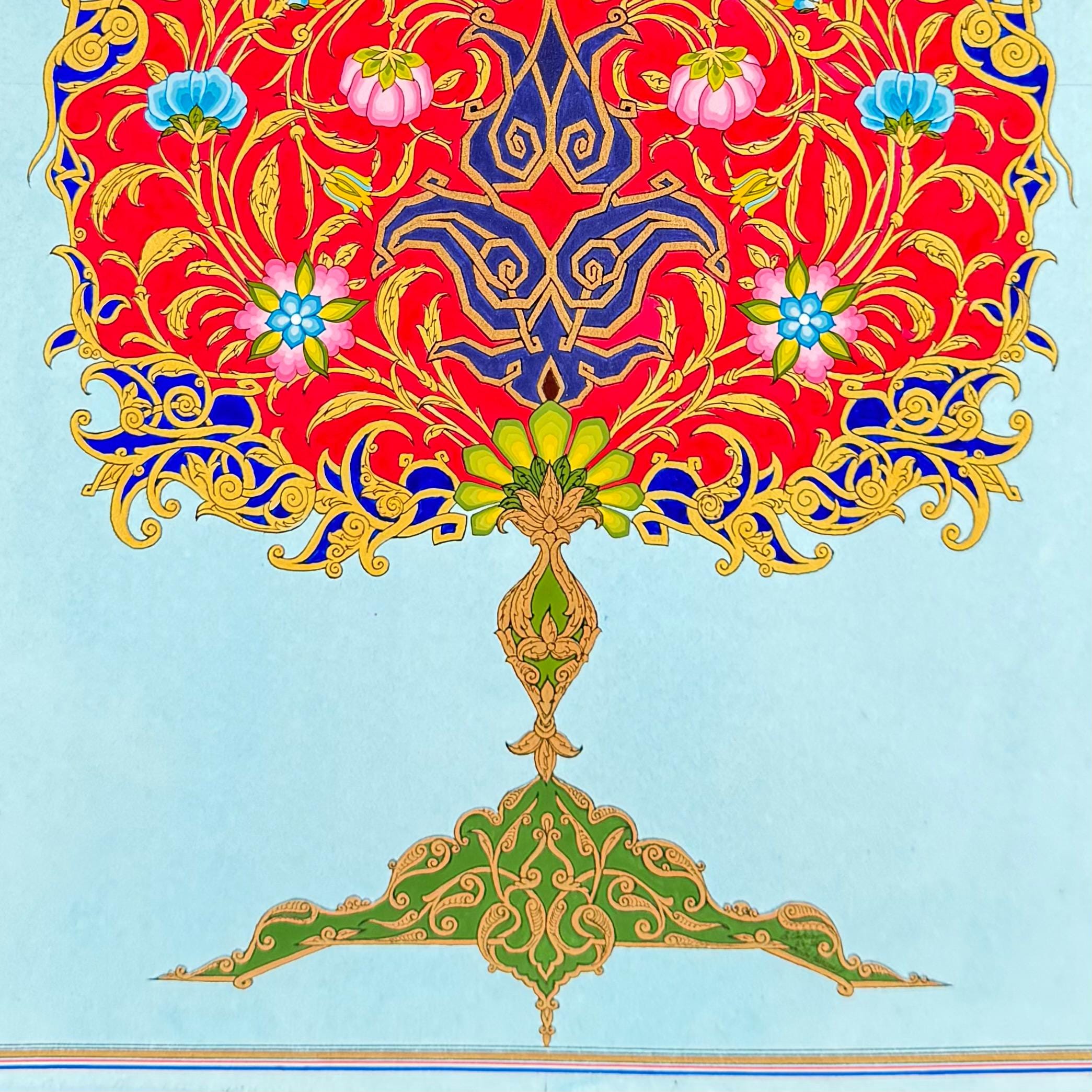 A true testament to the Ornamental Miniature style, “The Flourishing Pomegranate” bridges tradition and modernity, celebrating the richness of cultural heritage while reimagining it for the contemporary art world. This artwork is not only a visual delight but also a meaningful representation of abundance and beauty, making it a perfect addition to any art collection or interior space.