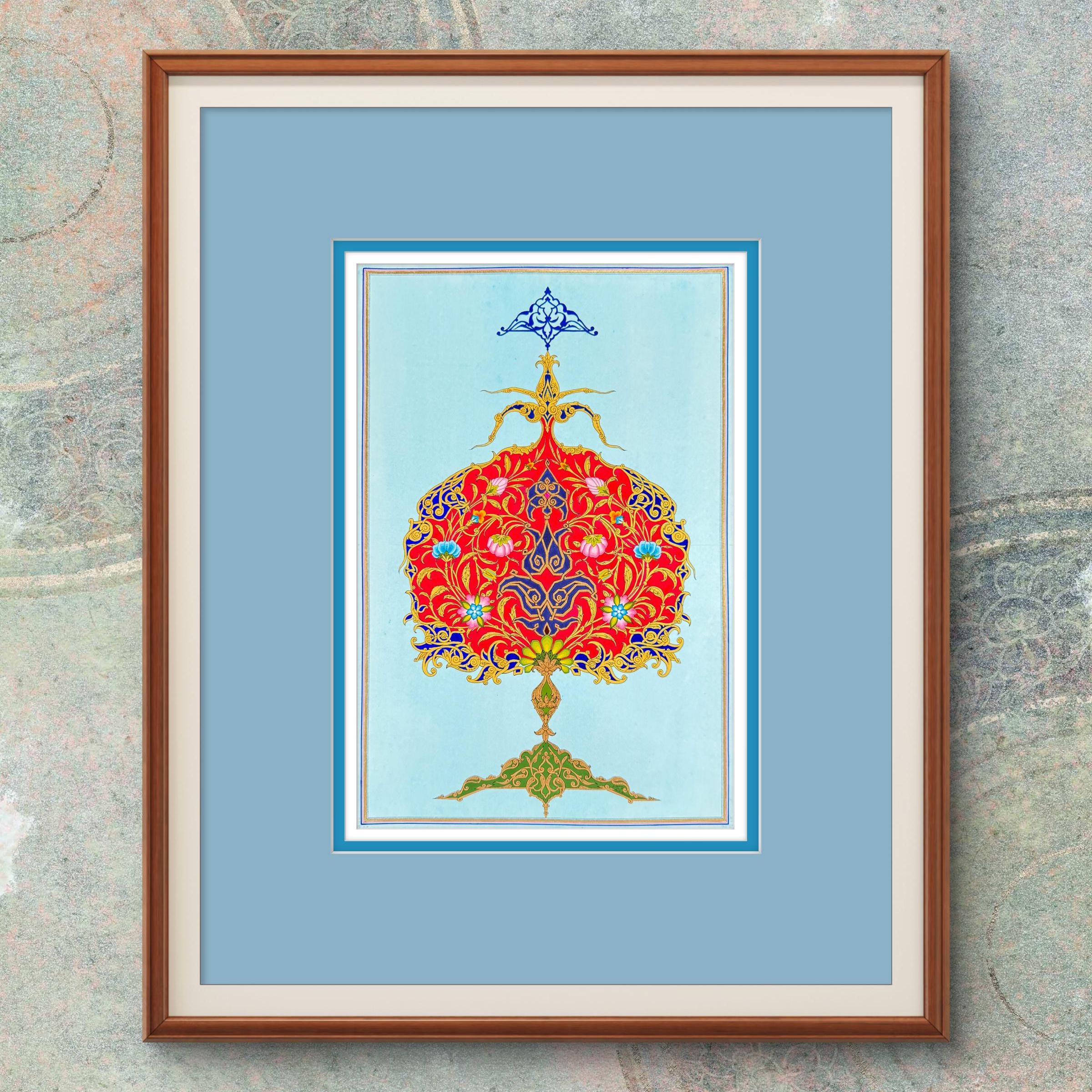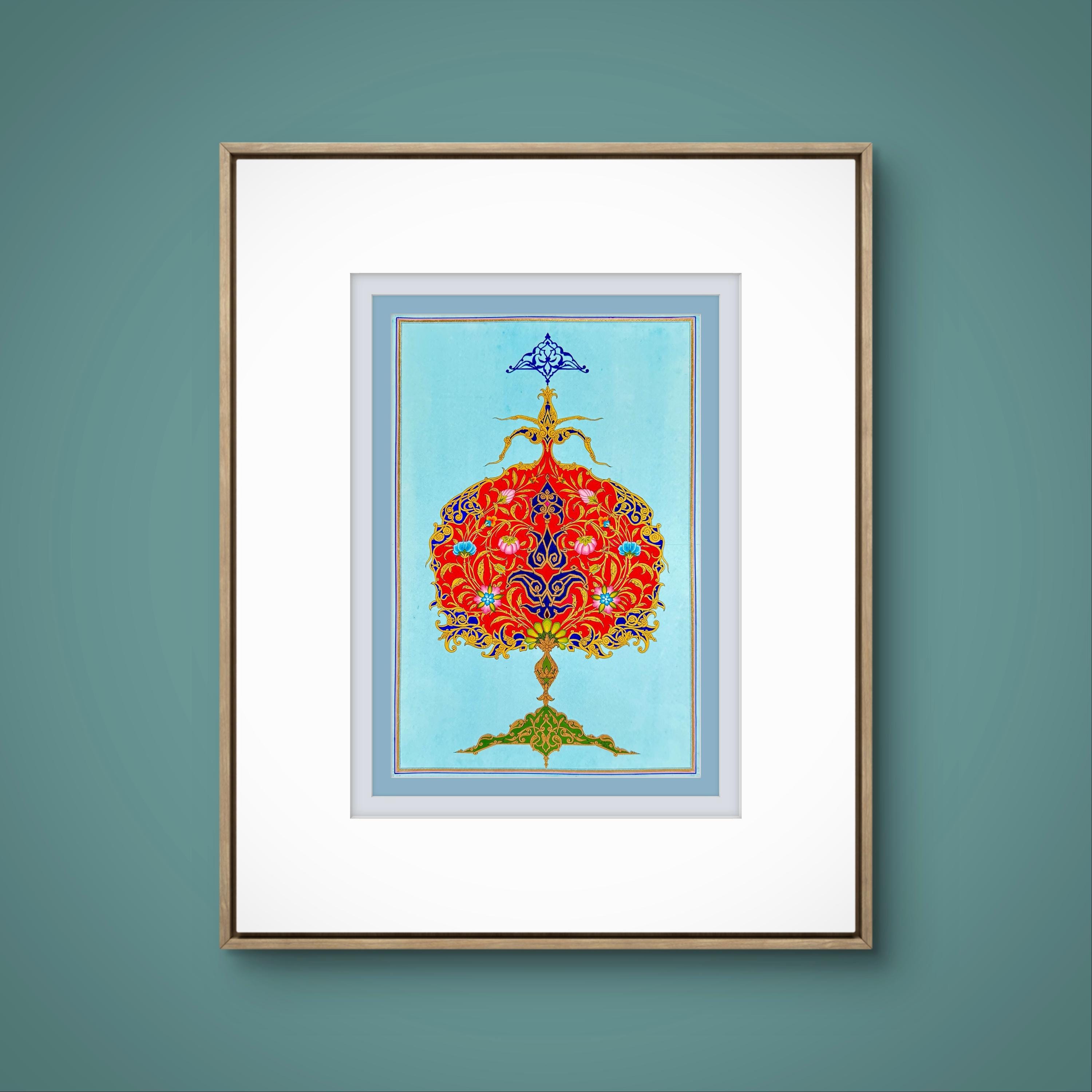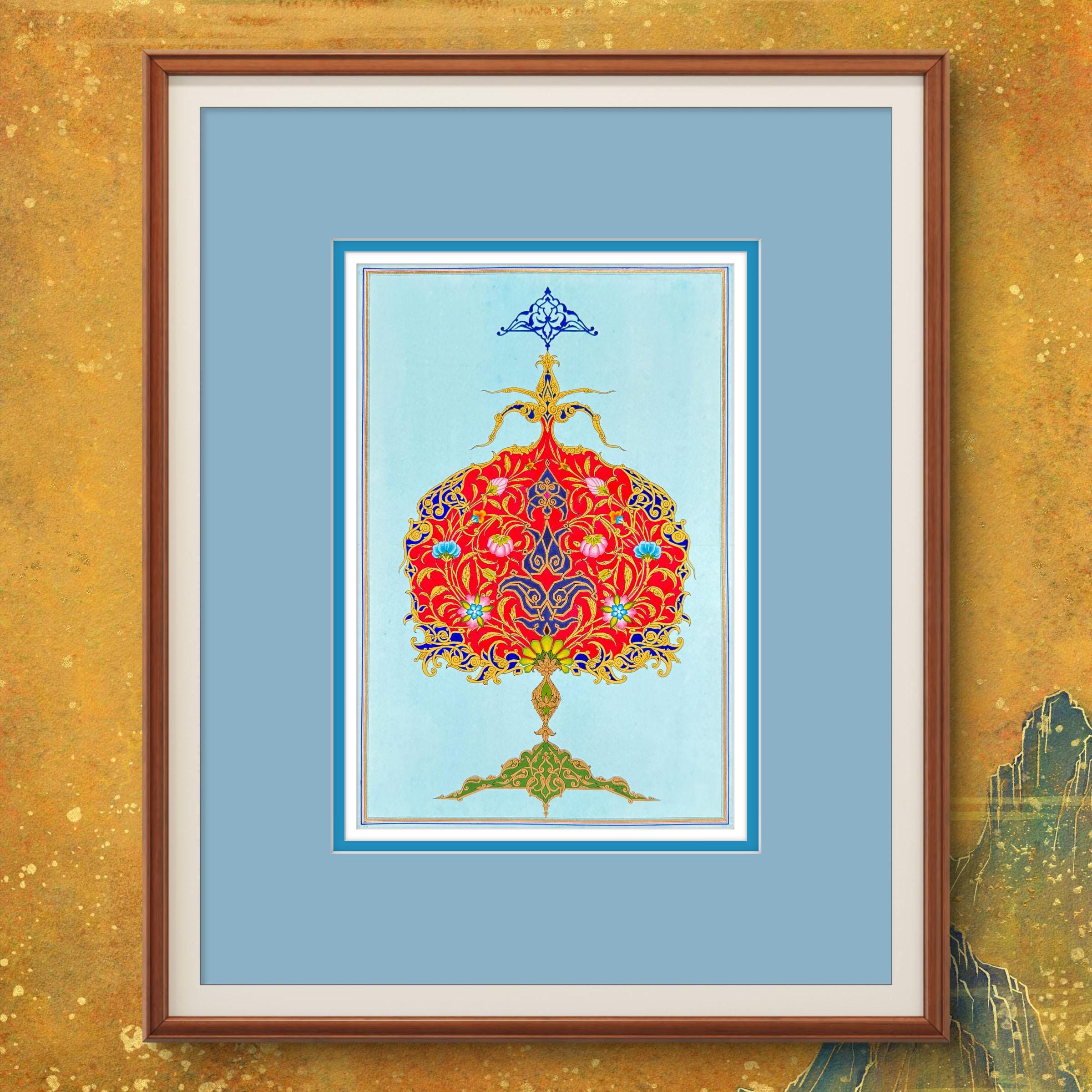 The Flourishing Pomegranate: A Masterpiece of Ornamental Illustration Art - Luxury Interior Decoration | Islamic Cultural Heritage(UNFRAMED)
