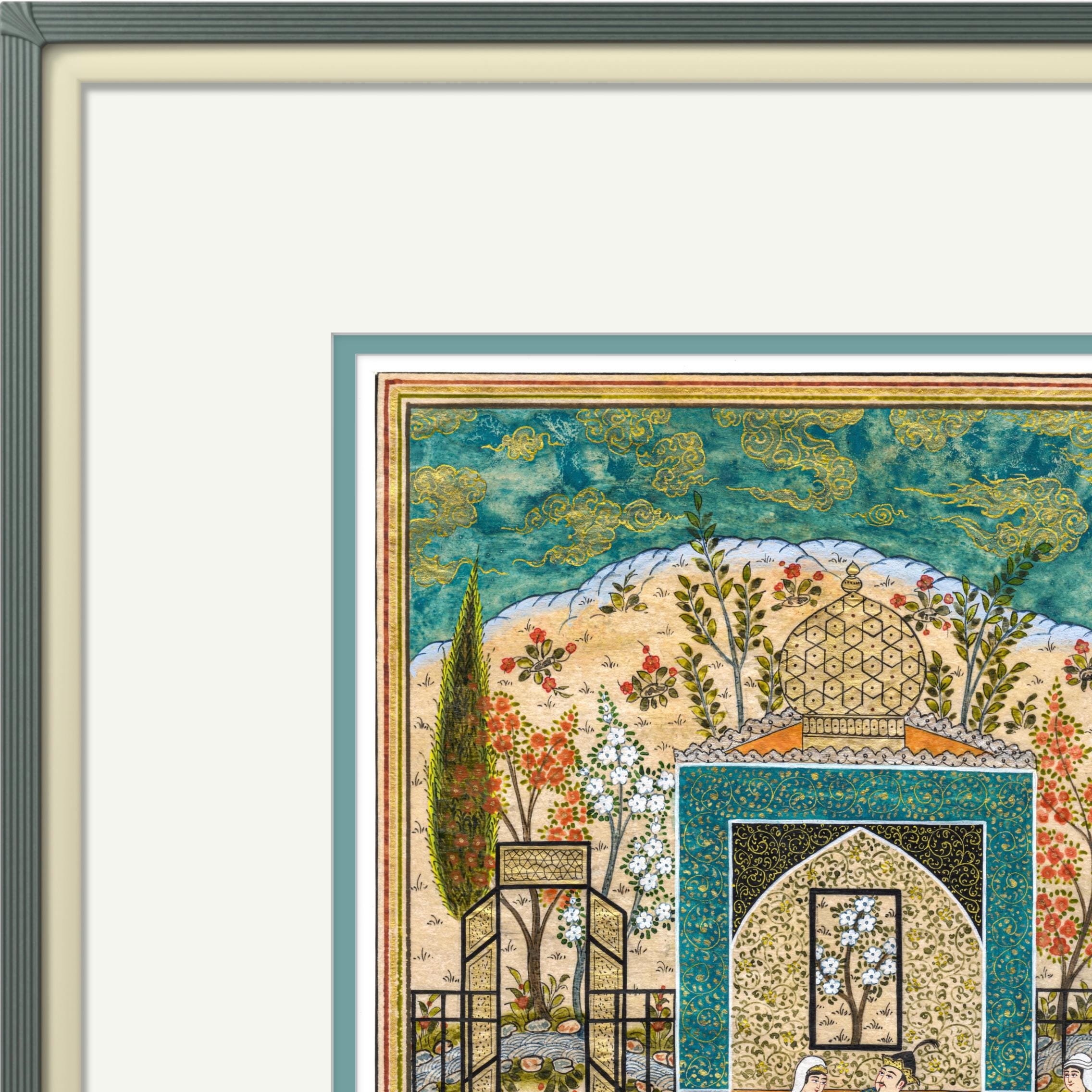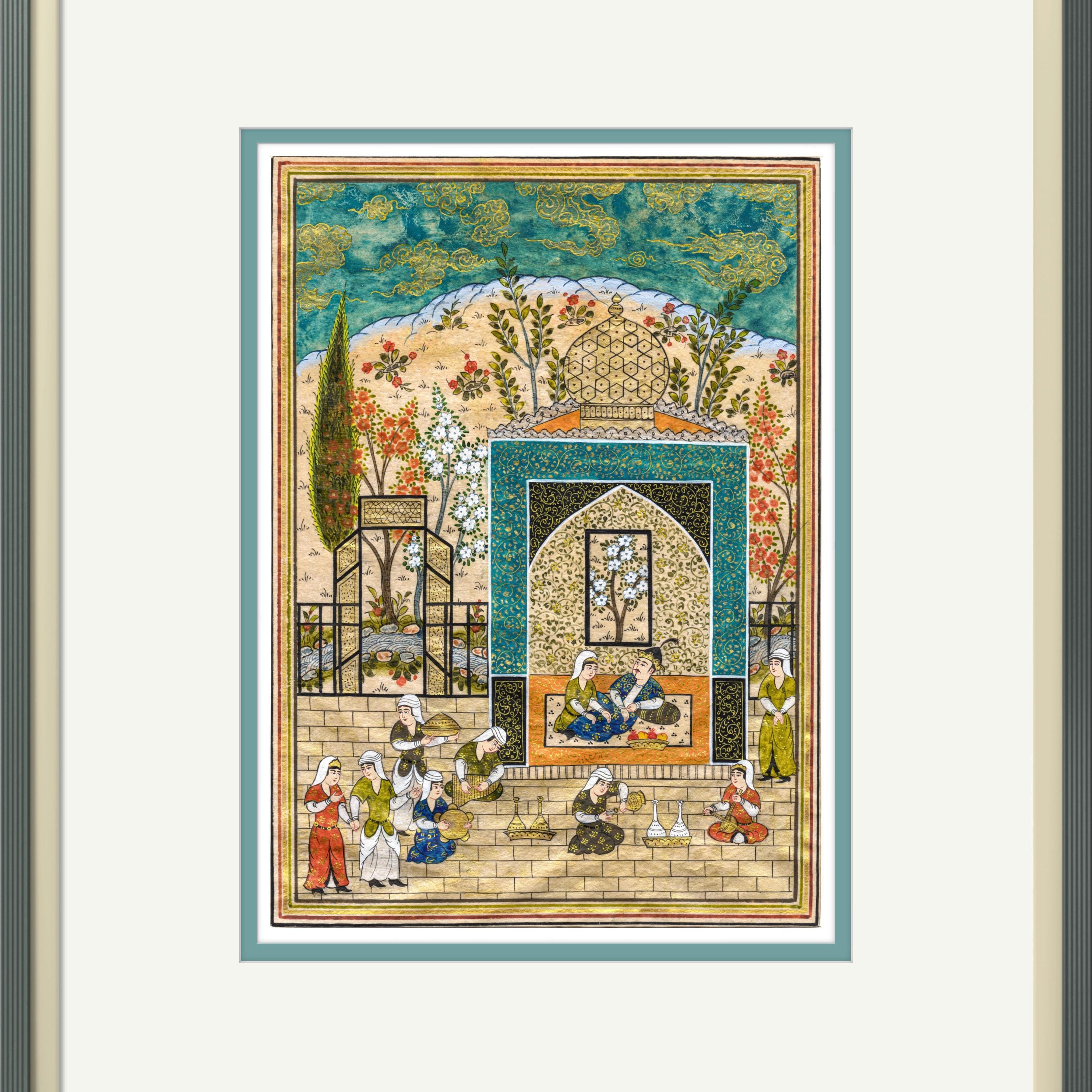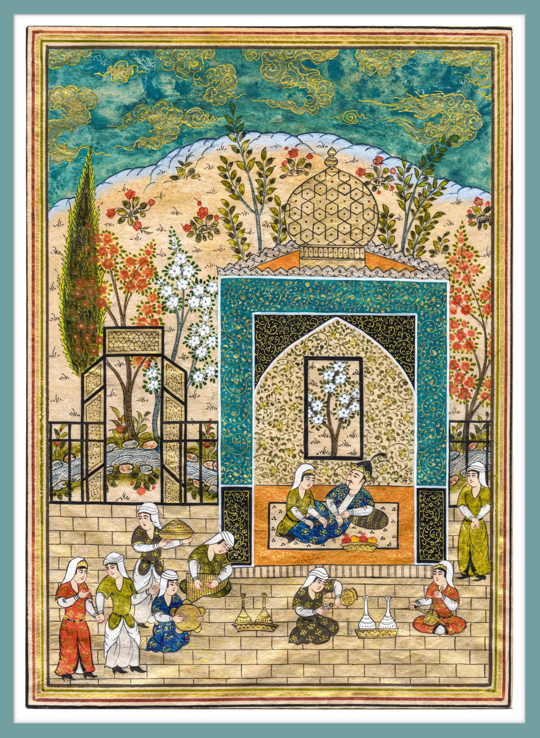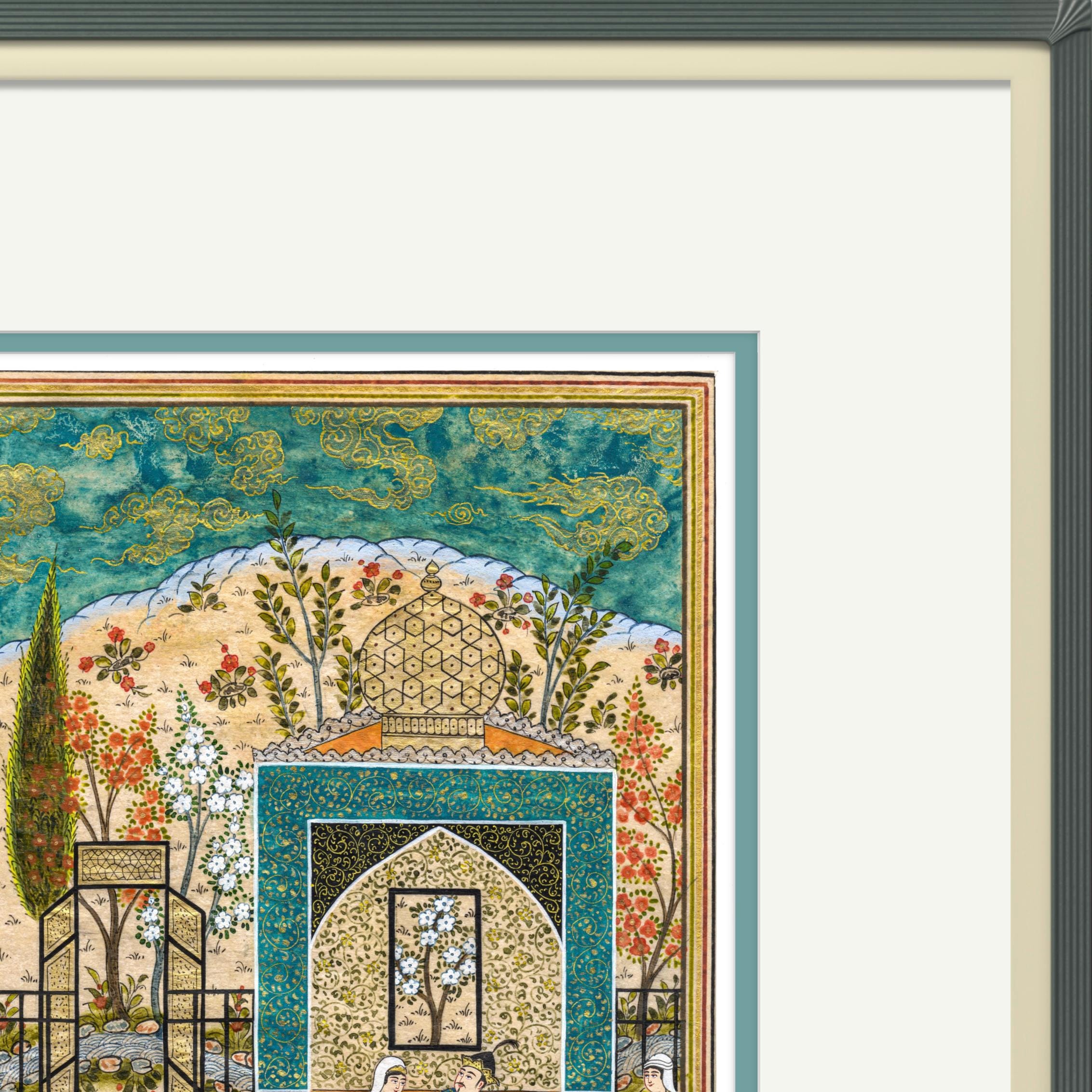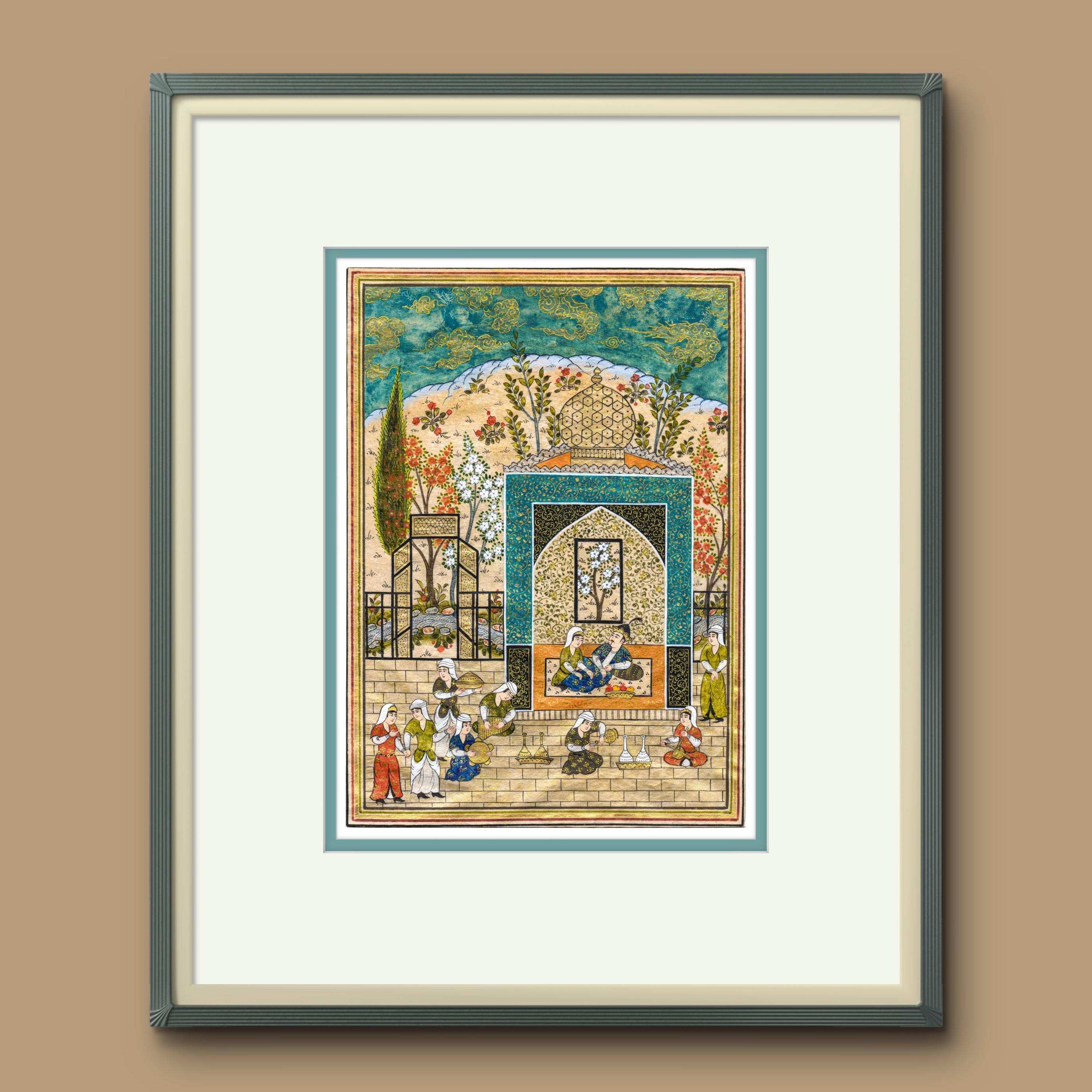 Bahram Gur in the Azure Pavilion - A Royal Scene from Nizami’s Khamsa, Capturing the Elegance, Symbolism, Mysticism of Persian Miniature Art