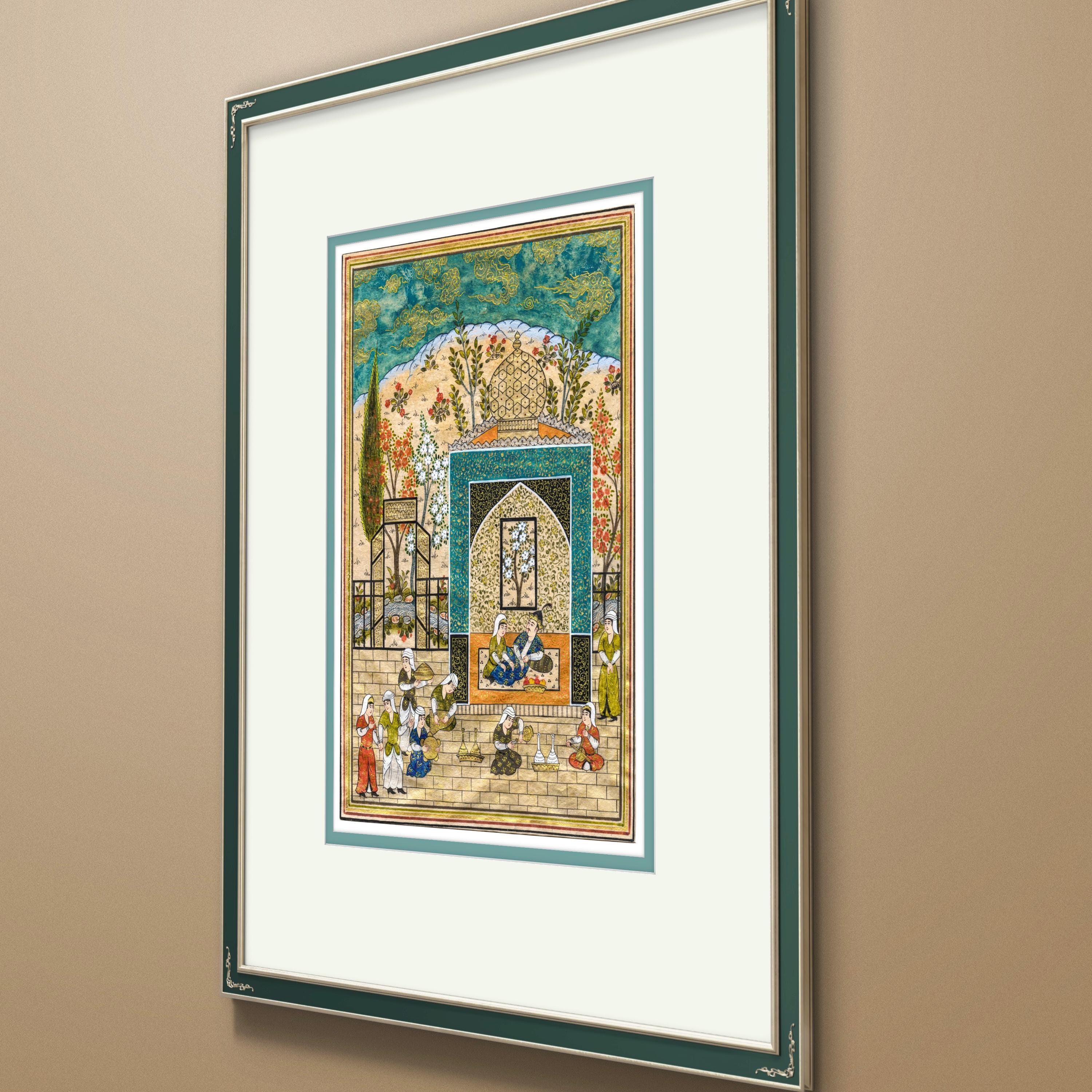 This artwork is a tribute to the enduring legacy of Persian miniature painting, where storytelling and artistry merge in perfect harmony. A timeless piece that bridges history, poetry, and visual splendor.