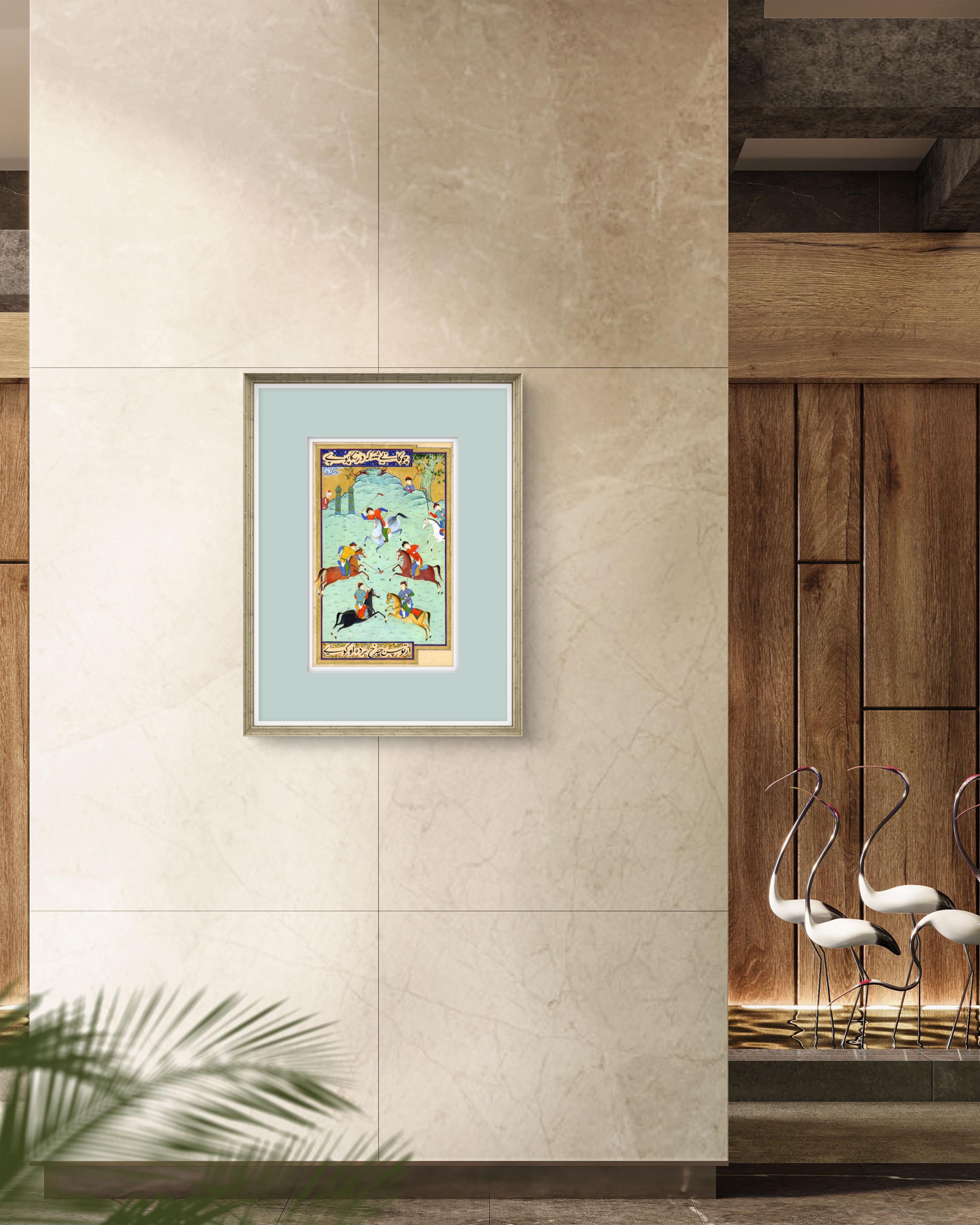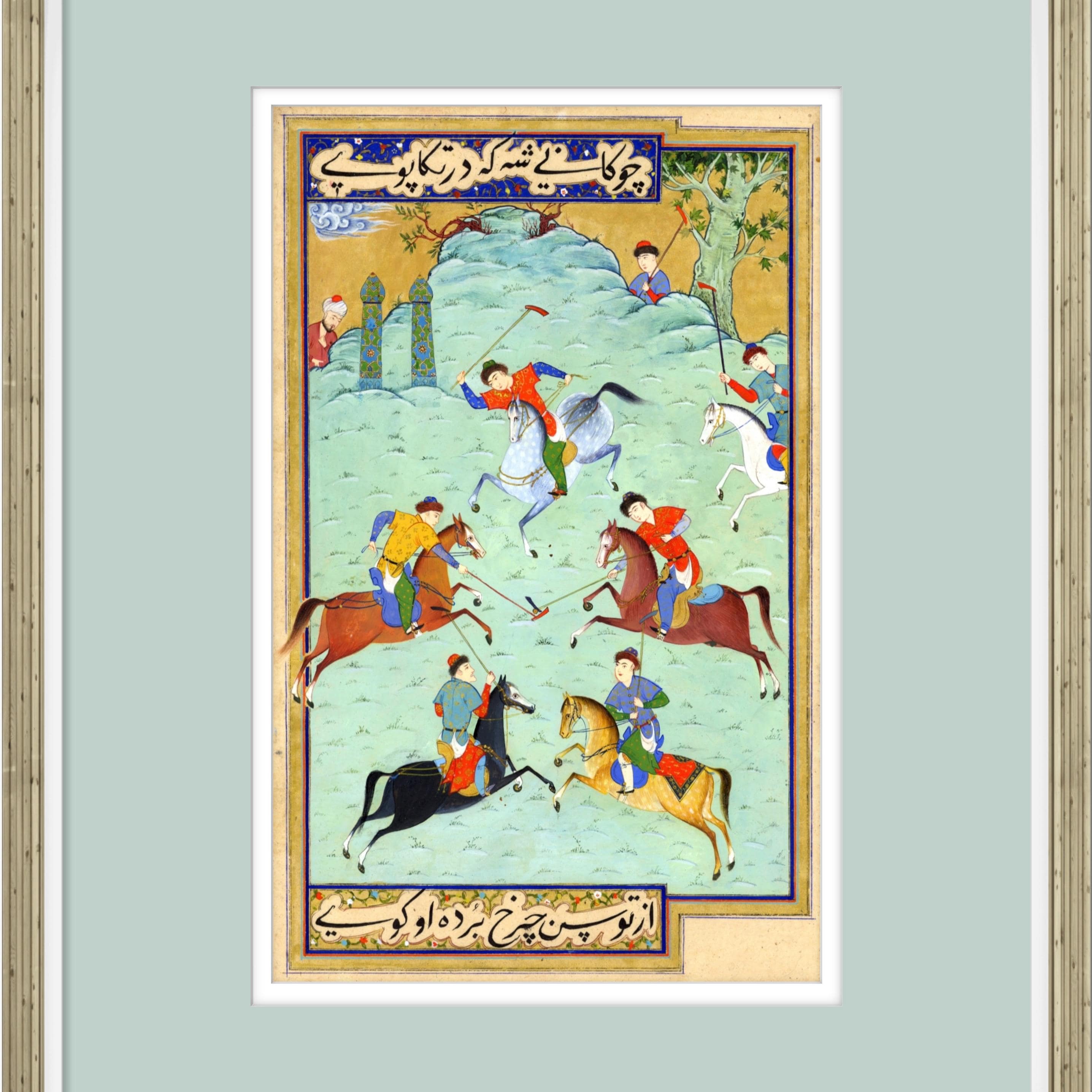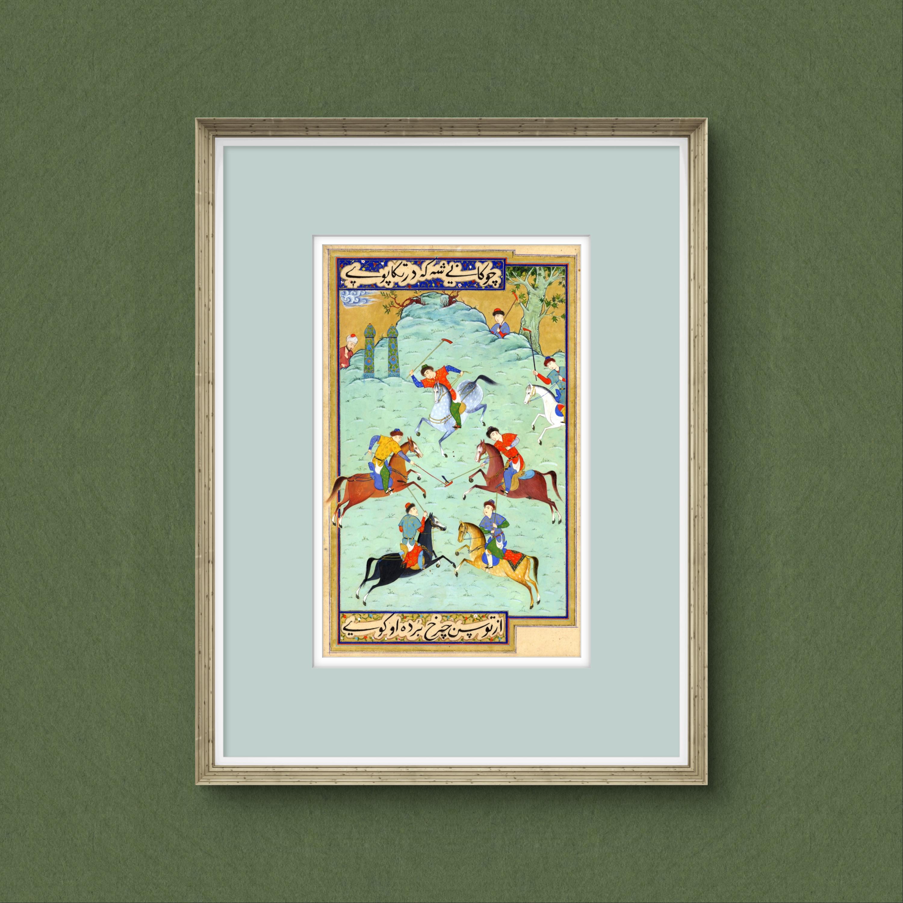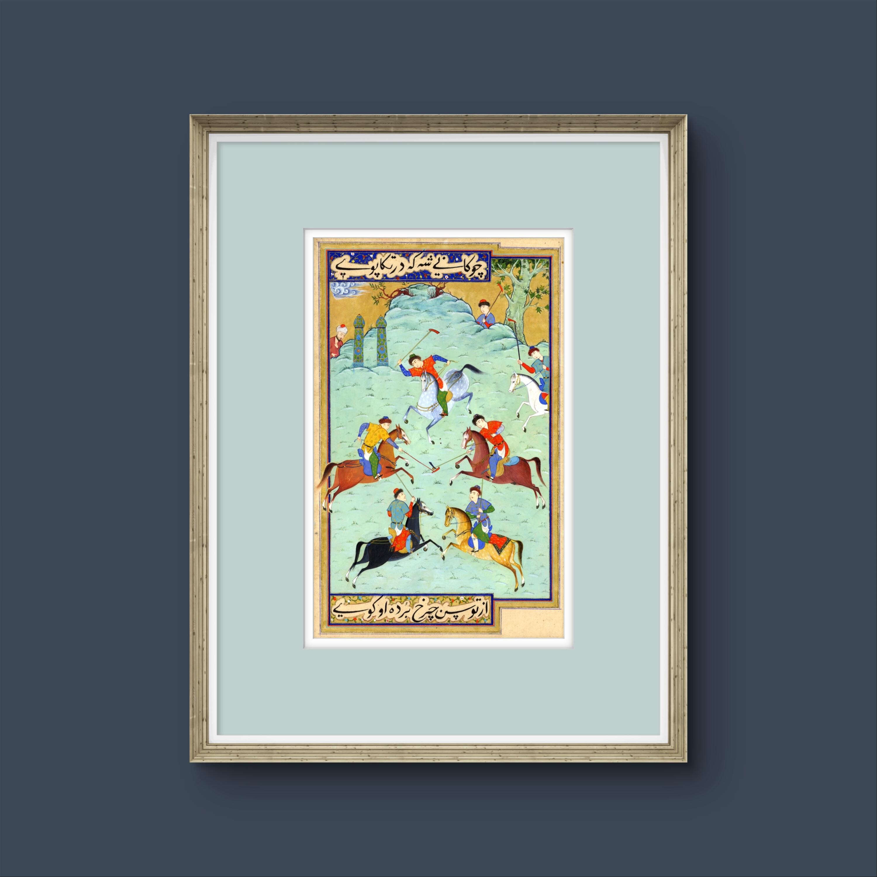 Polo Game – Fine Art Miniature Masterpiece of Equestrian Sport, Persian Manuscript Painting, Historical Islamic Art, Decorative Wall Art