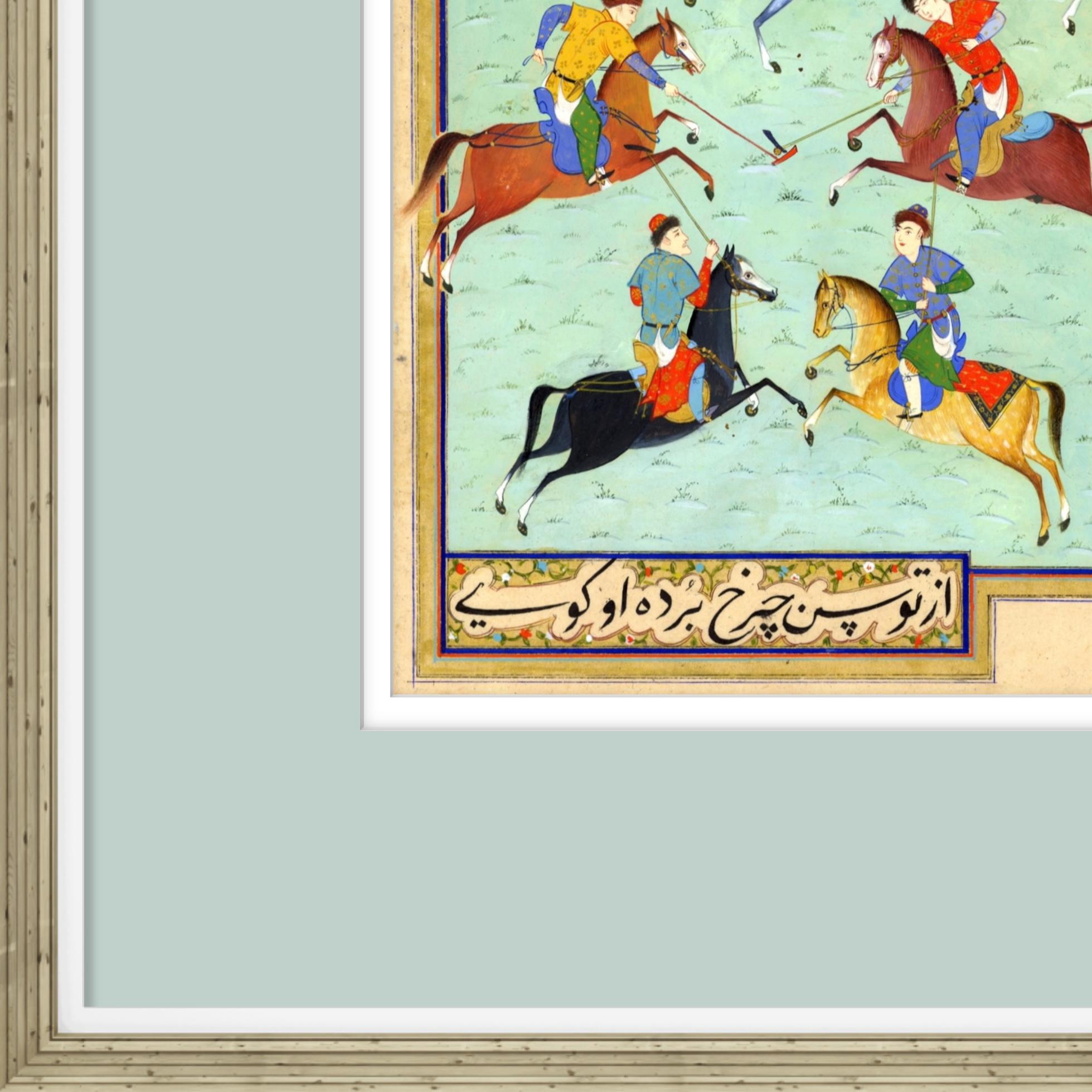 Polo Game – Fine Art Miniature Masterpiece of Equestrian Sport, Persian Manuscript, Historical Islamic Art, Decorative Wall Art | UNFRAMED
