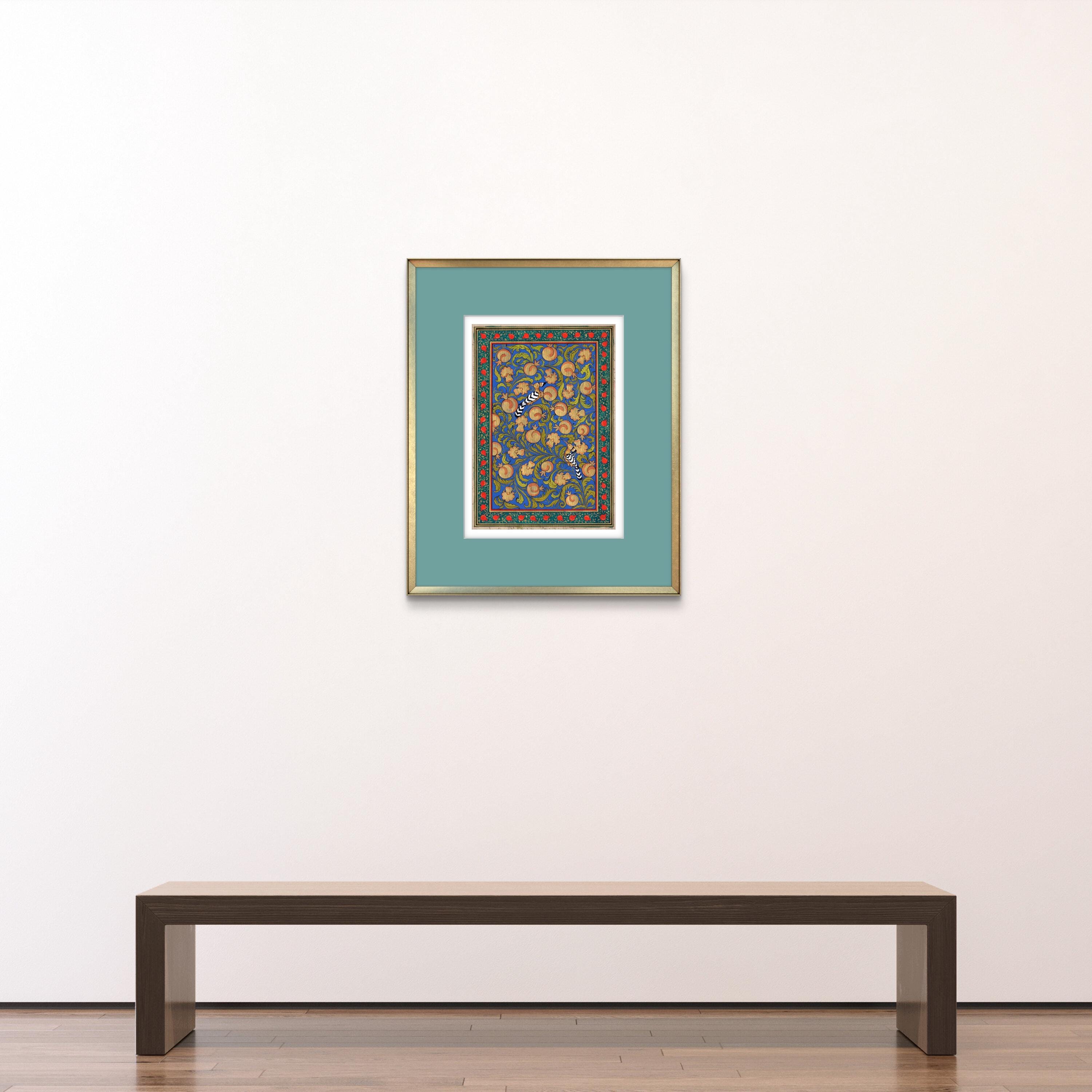 Tree of Paradise - Hoopoe Bird Miniature Painting on Antique Fine Silk Paper | Central Asian Cultural Heritage | Luxury Home Decor (MATTED)