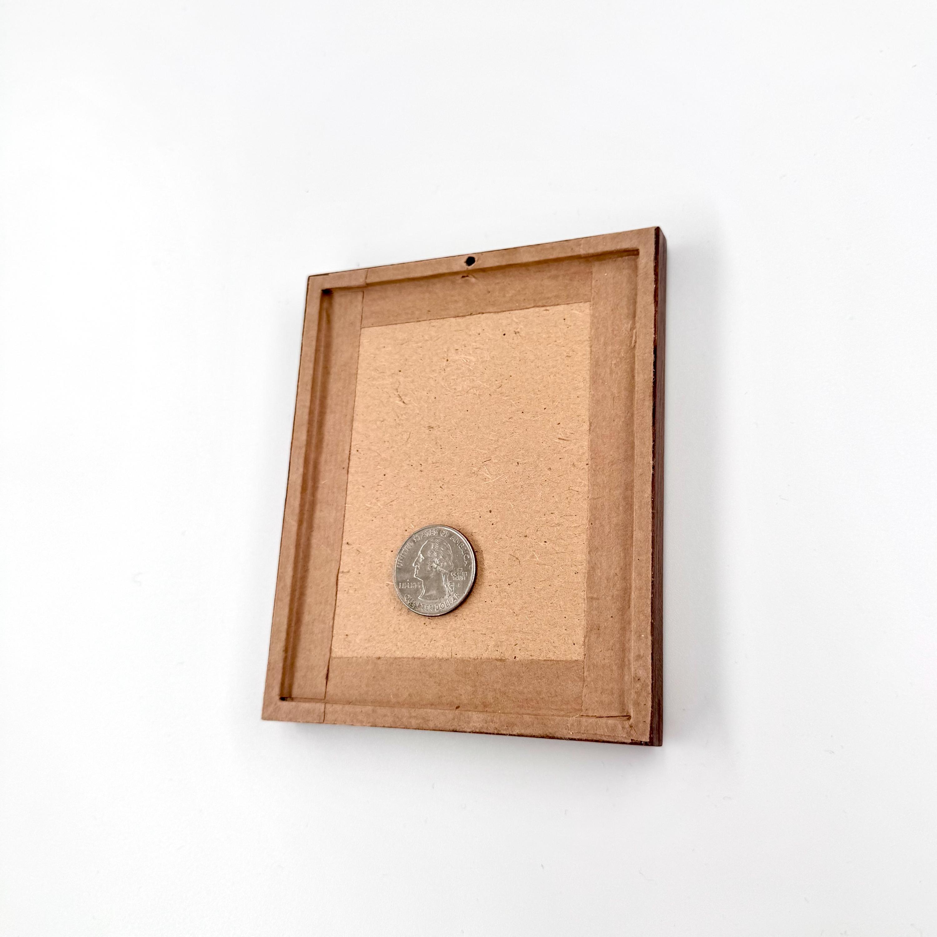 This exceptional artwork, with a framed size of 4.9 inches in height and 4.1 inches in length (the original size of the art piece is 65x45 mm), is housed in a handcrafted natural walnut frame. The background is hermetically sealed with heavy-duty Kraft tape to preserve and protect the painting, ensuring its longevity as a treasured piece of art.