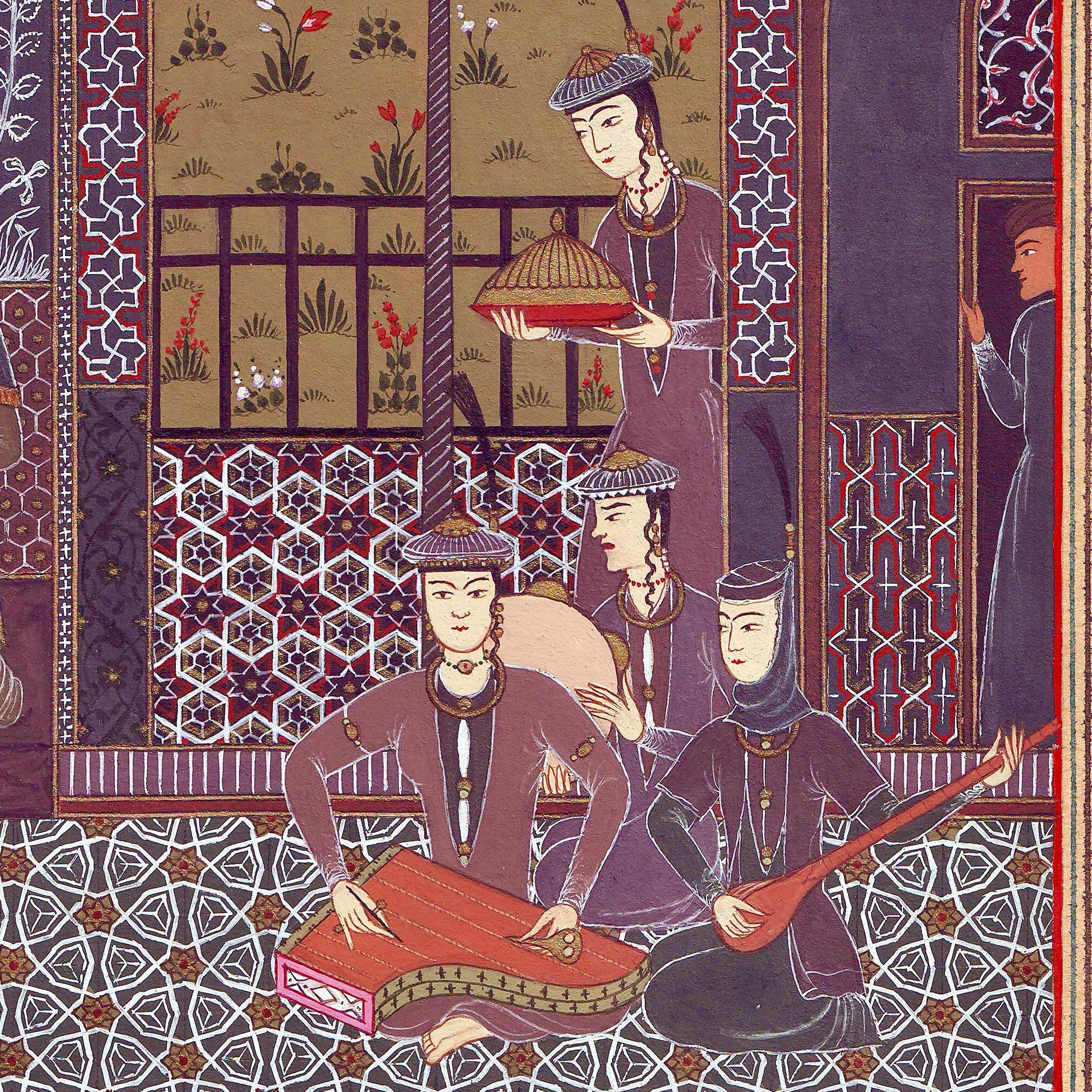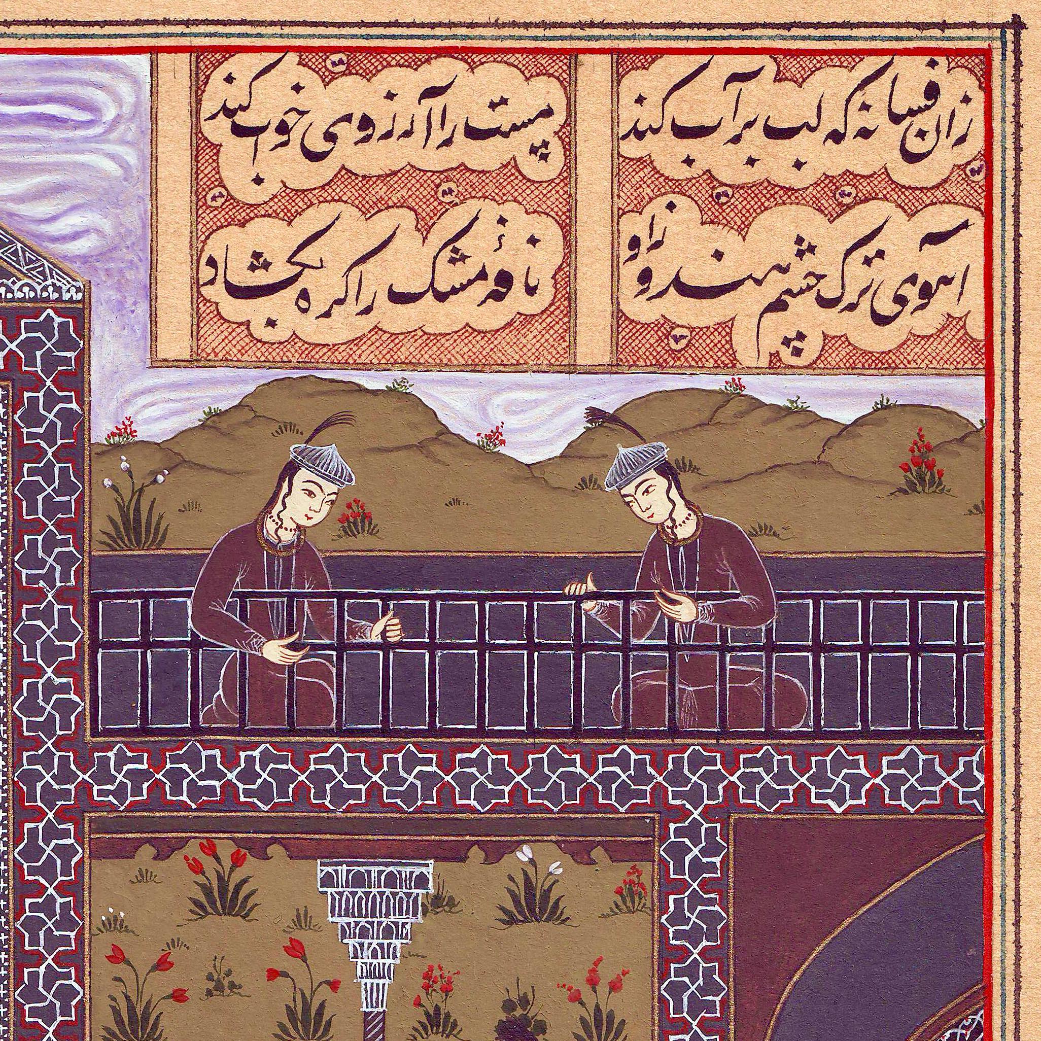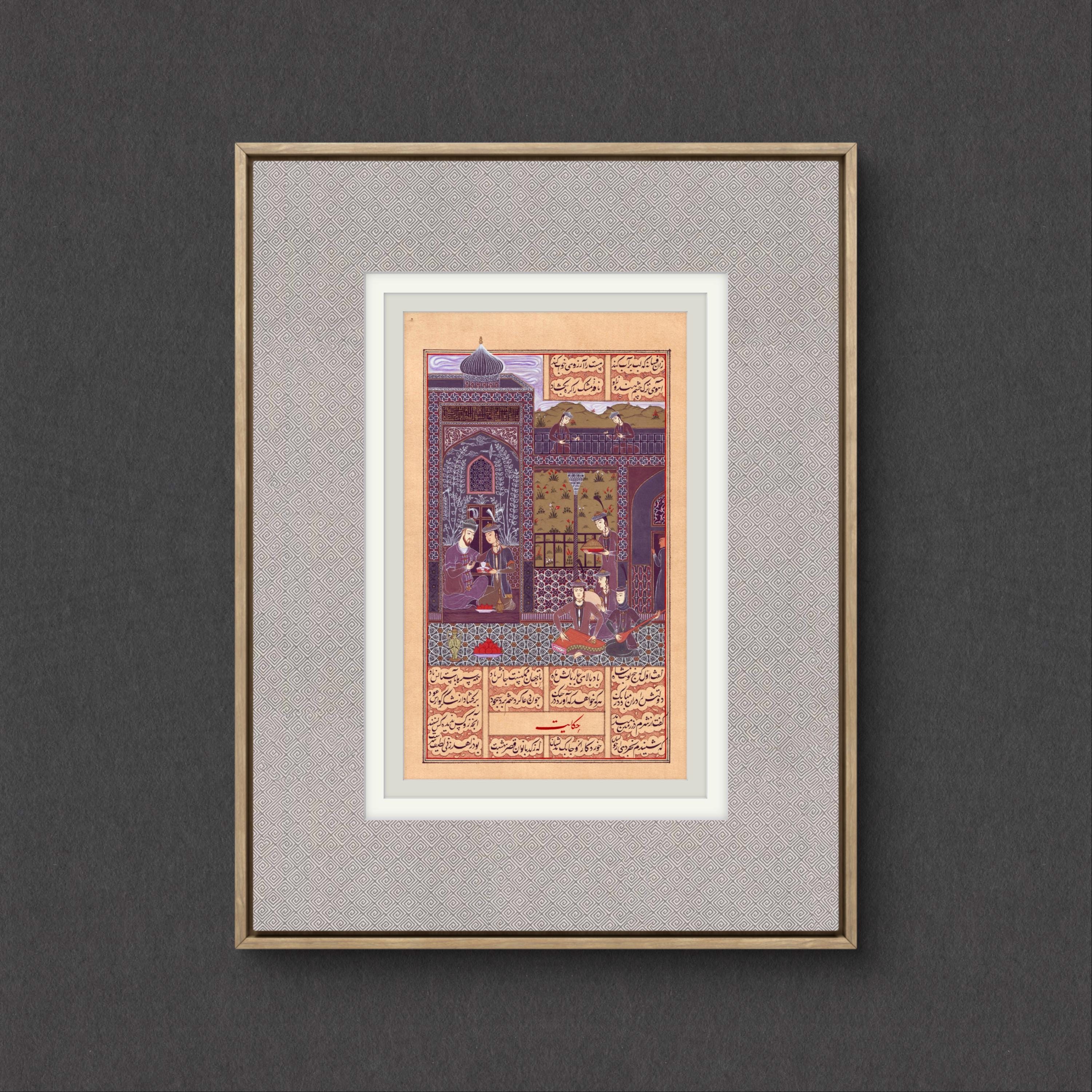 Bahram Gur visits Princess in the Pavilion - A Royal Scene from Nizami’s Khamsa, Capturing the Elegance | Mysticism of Persian Miniature Art