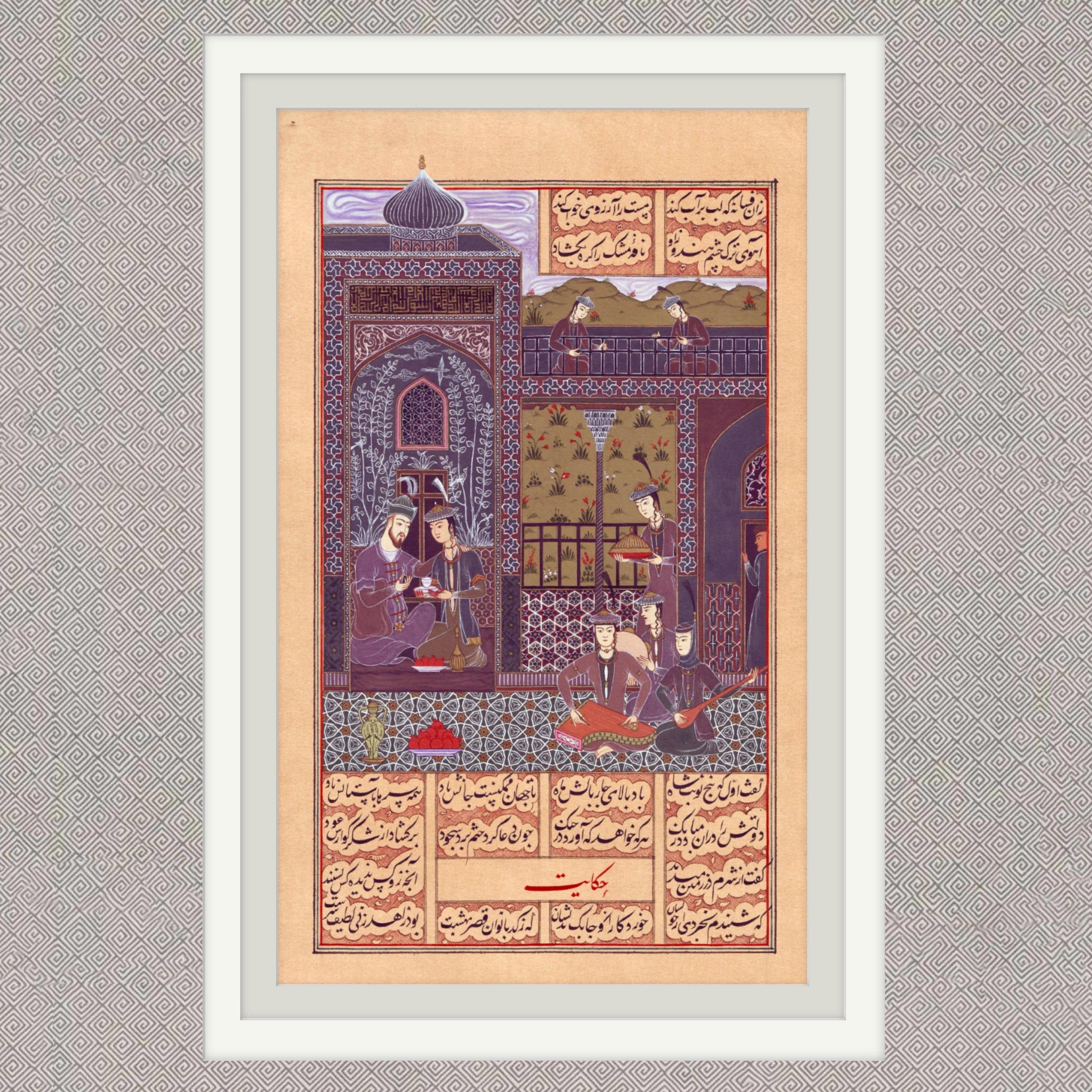 This artwork is a tribute to the enduring legacy of Persian miniature painting, where storytelling and artistry merge in perfect harmony. A timeless piece that bridges history, poetry, and visual splendor.