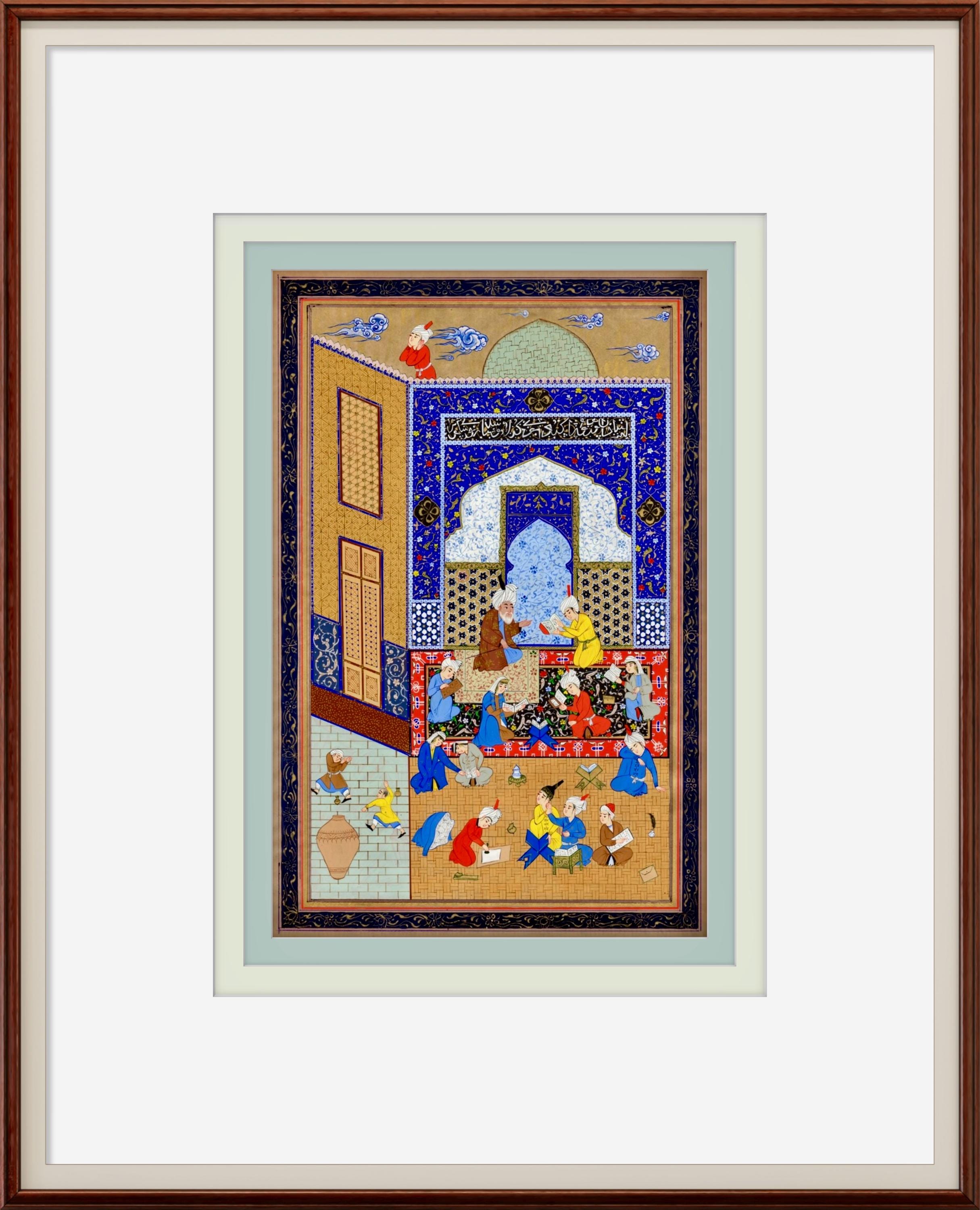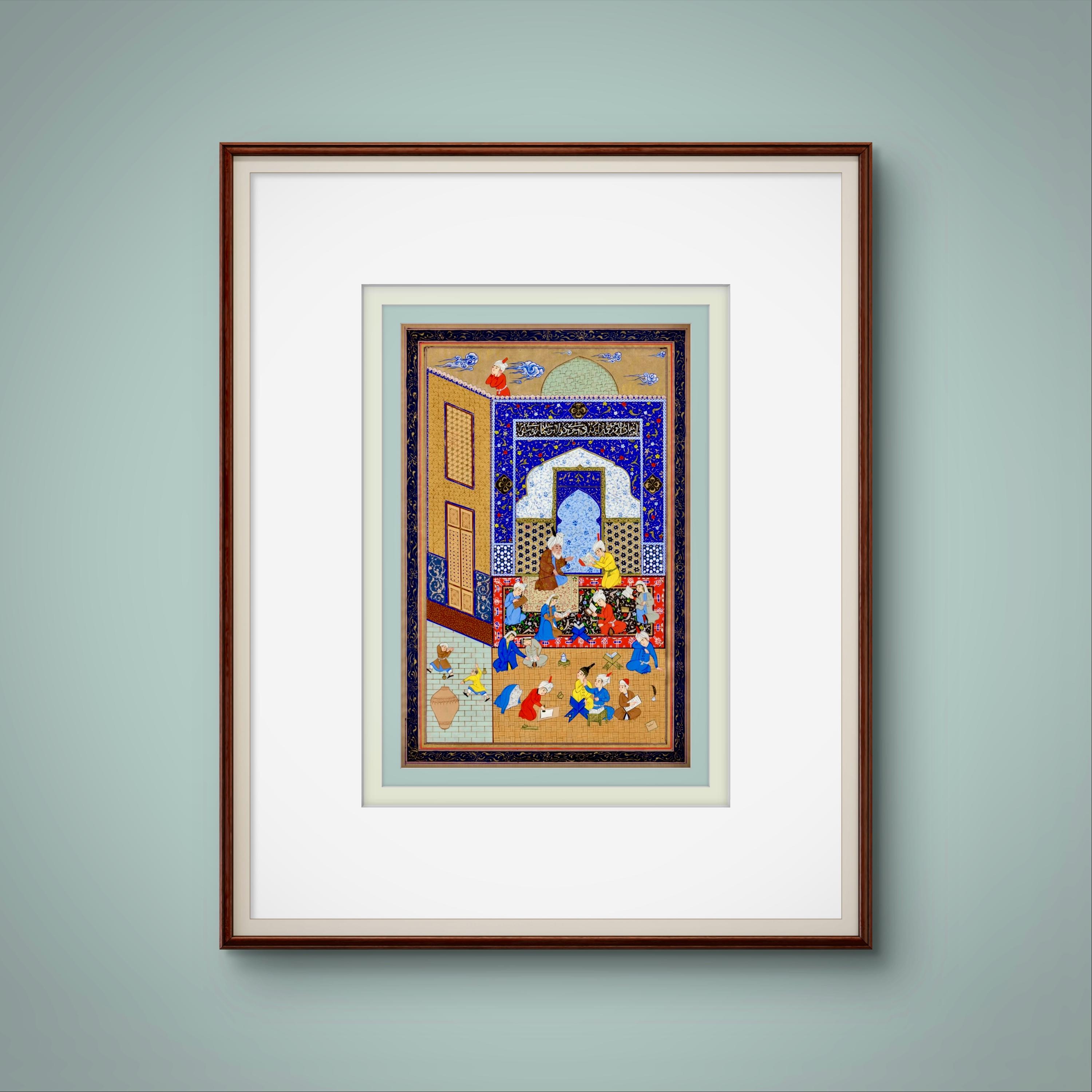 Laila and Majnun in School – Scene from Nizami’s Khamsa | Safavid Persian Miniature Reproduction on Fine Paper | Museum Quality Artwork