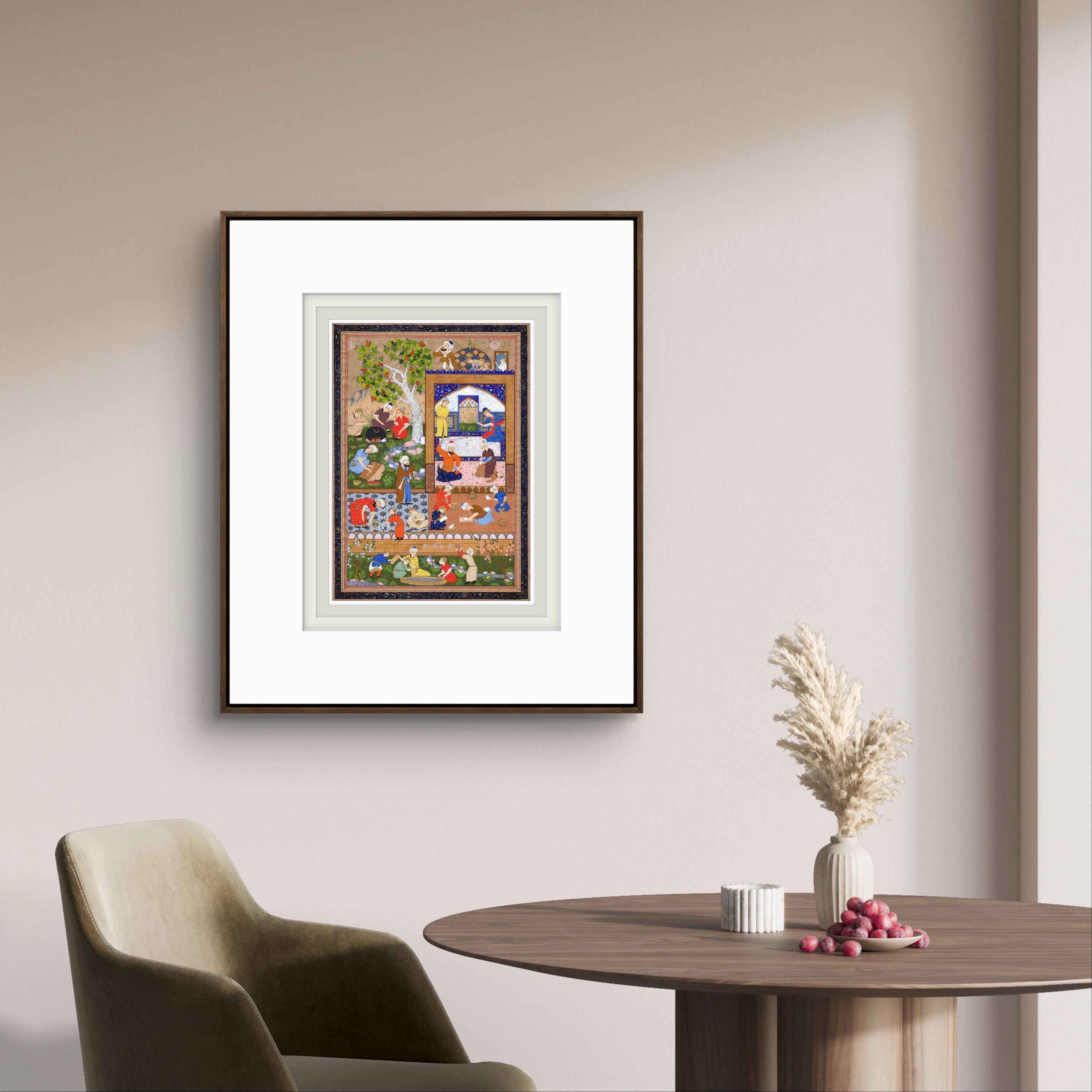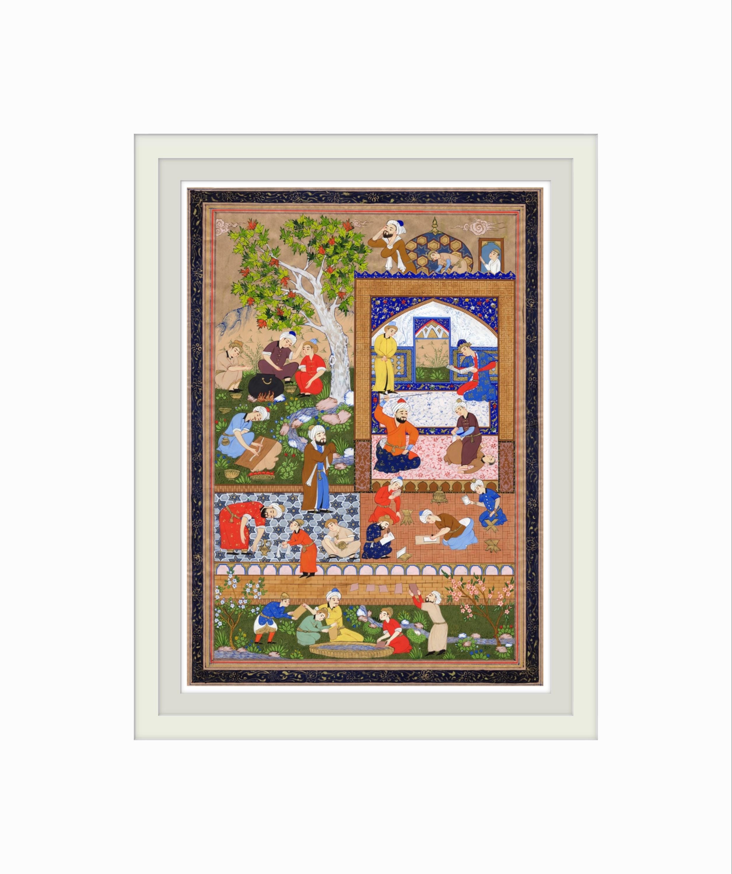 School of Knowledge and Light – Safavid Persian Art Reproduction, Handcrafted Scene of Learning, Discipline, and Art of 16th Century Tabriz