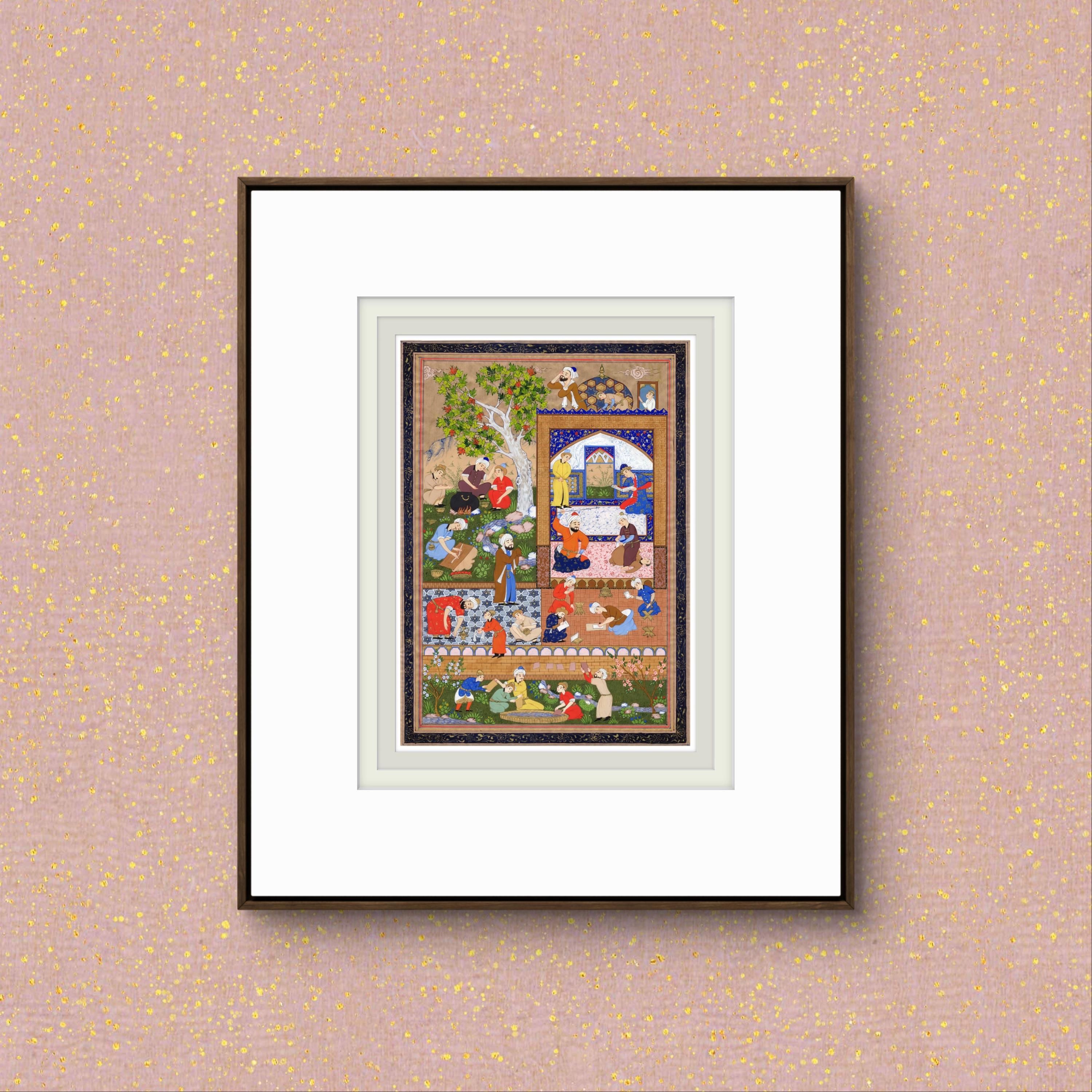 Rendered on handcrafted mulberry paper with luminous pigments and subtle gold accents, this reproduction revives the elegance, storytelling, and ornamental beauty of the original masterpiece. Perfect for collectors, art enthusiasts, or cultural interiors, it preserves the intellectual and artistic spirit of 16th-century Tabriz while showcasing the craftsmanship of ARTBEHZODIYUS.