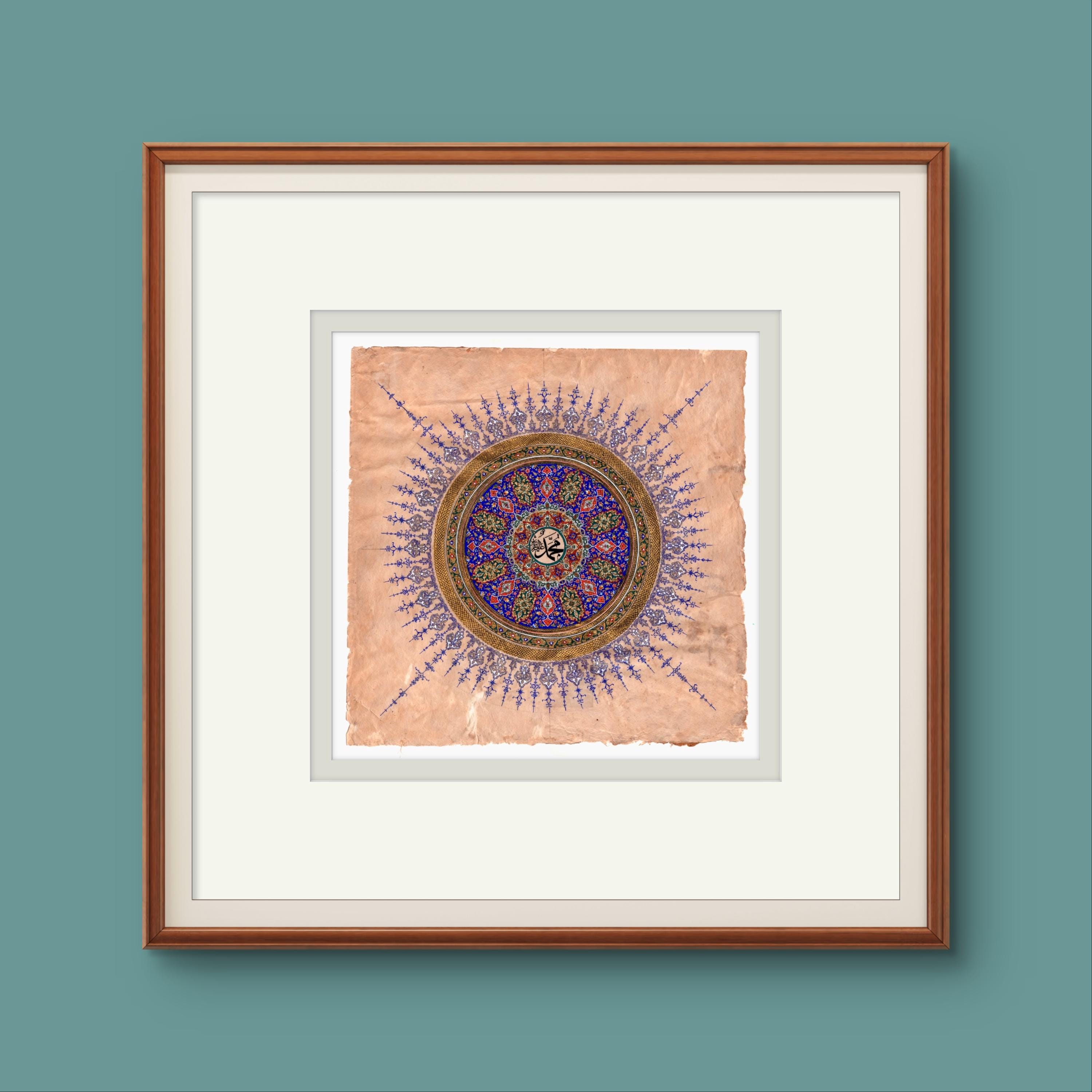 Inspired by classical Persian manuscript traditions, this piece blends faith, history, and fine craftsmanship - every detail painted by hand using pigments, watercolor, acrylic, natural inks, and subtle gold accents on both antique and modern handcrafted mulberry made silk parchment.