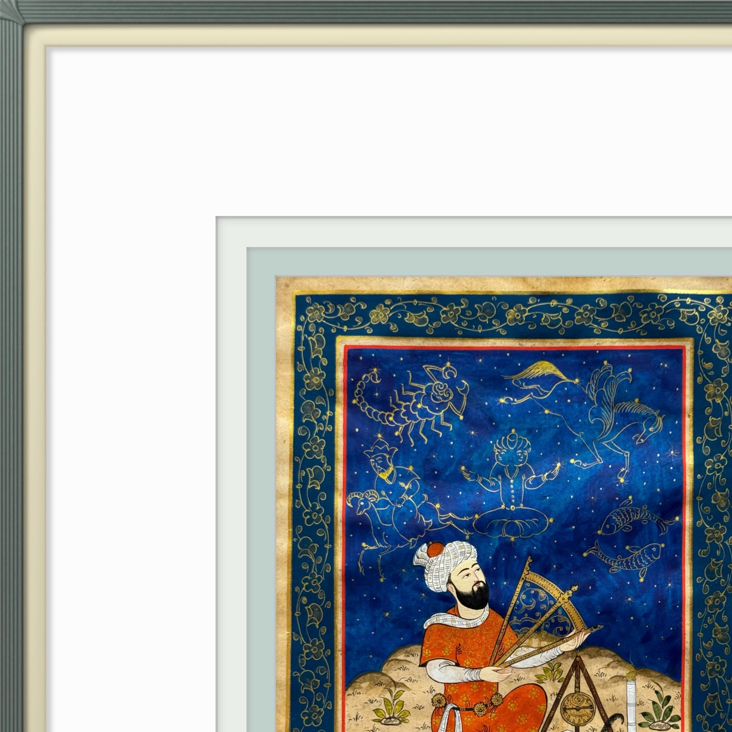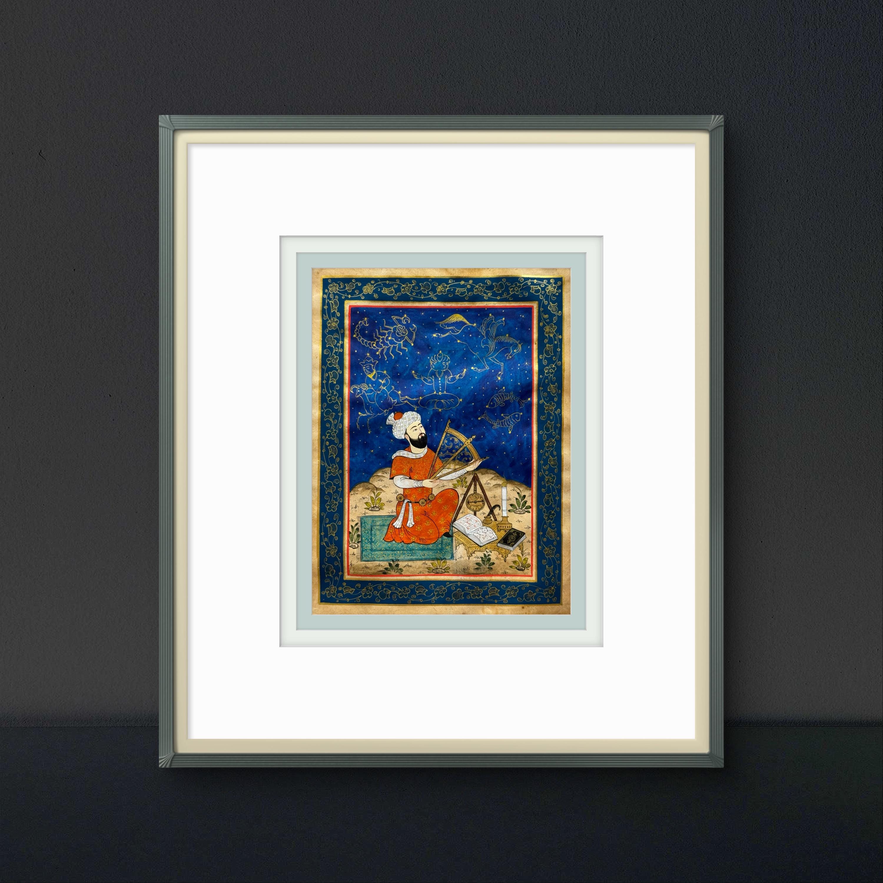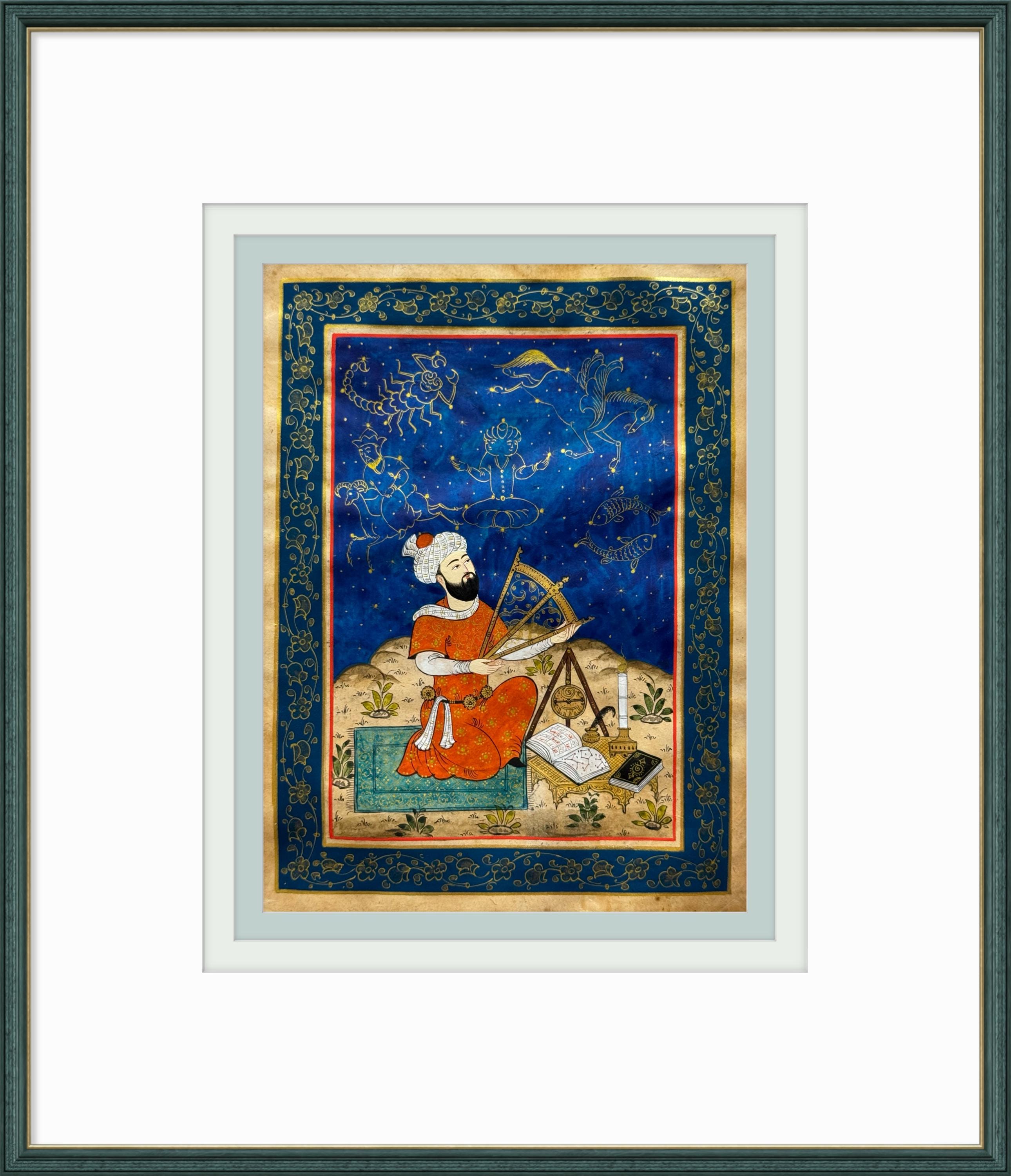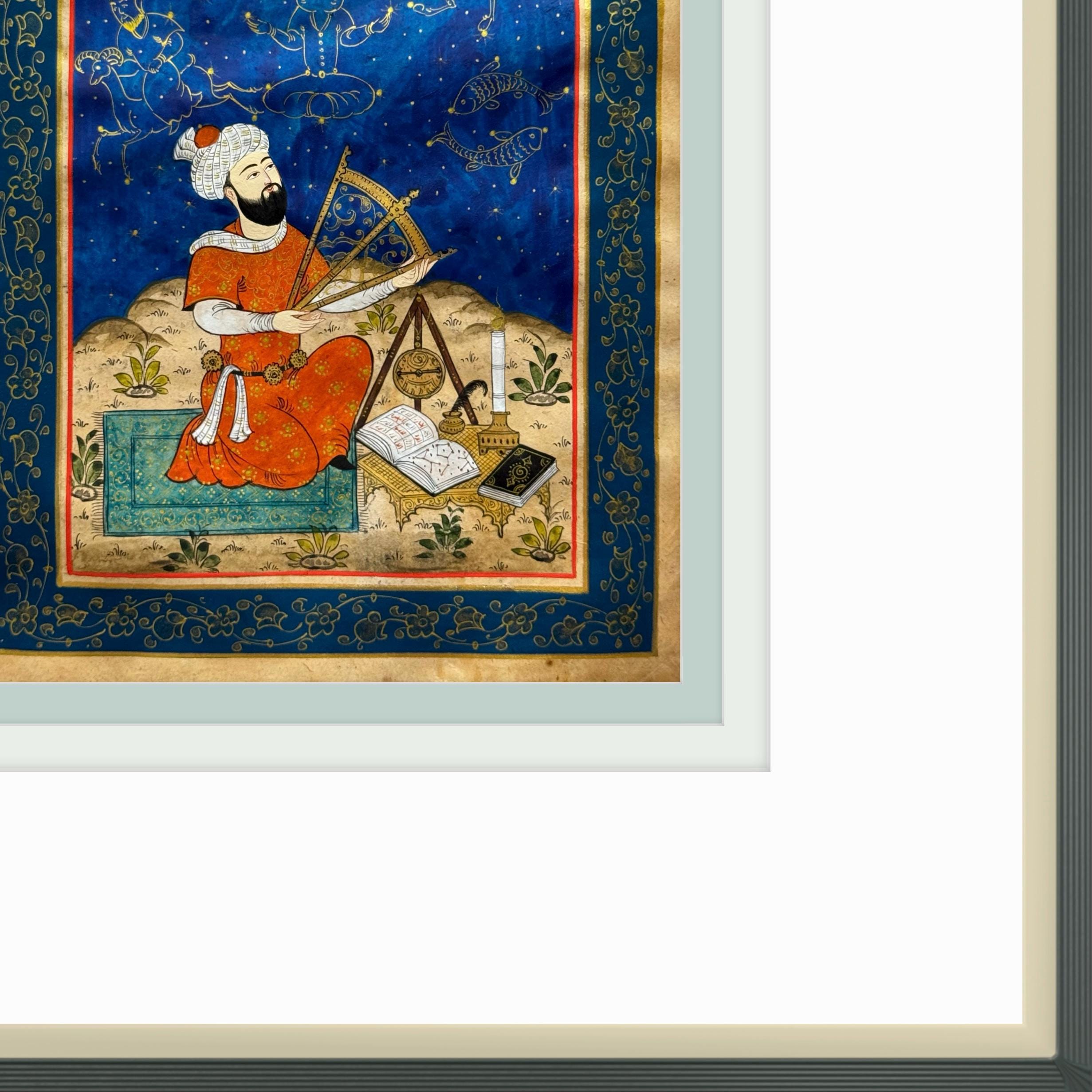 Executed in vibrant pigments, gold detailing, and intricate ornamentation, this artwork celebrates the enduring synthesis of science, art, and intellectual curiosity that flourished under the Timurid dynasty. A timeless tribute to one of Central Asia’s most brilliant scientific minds.