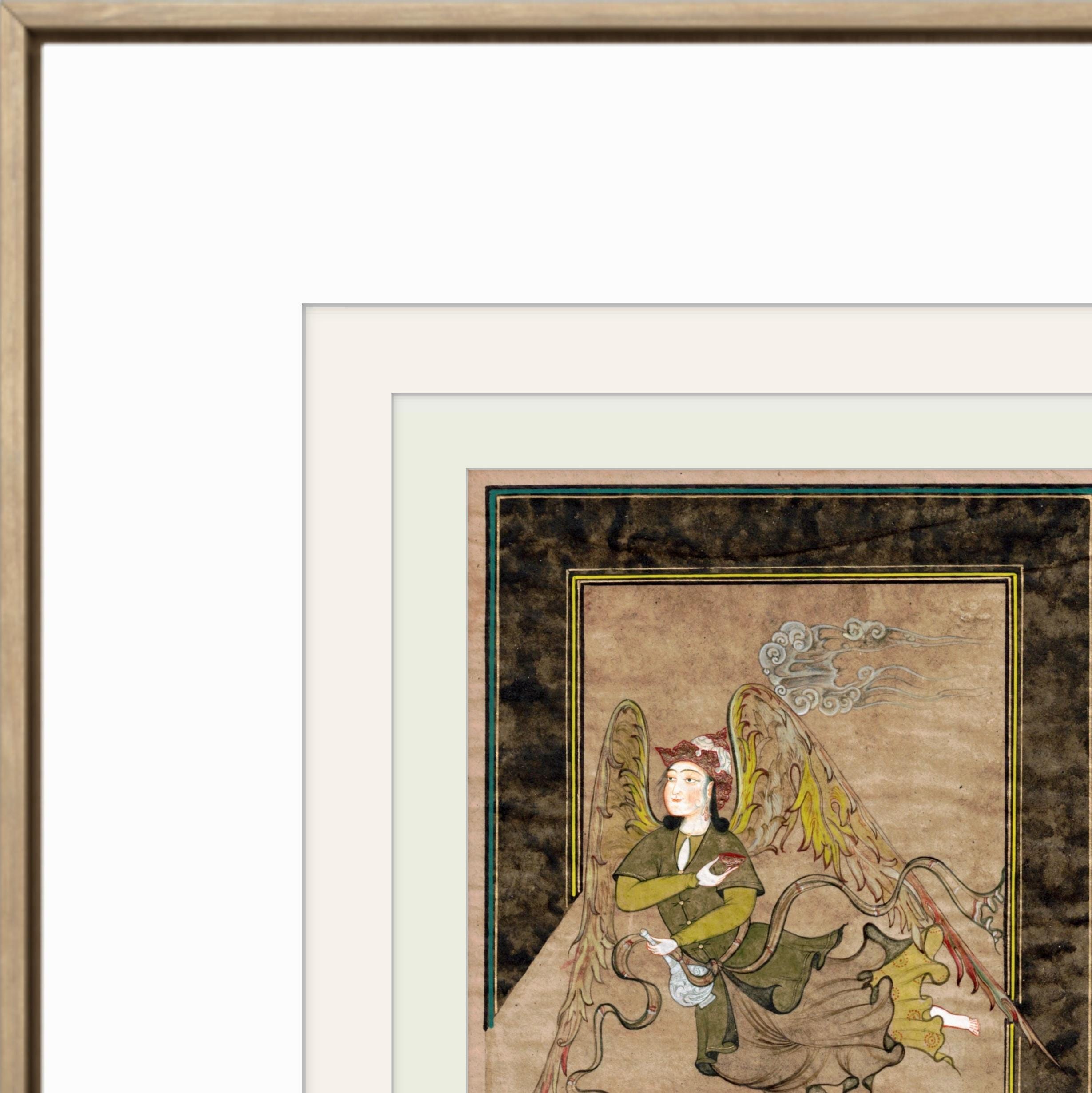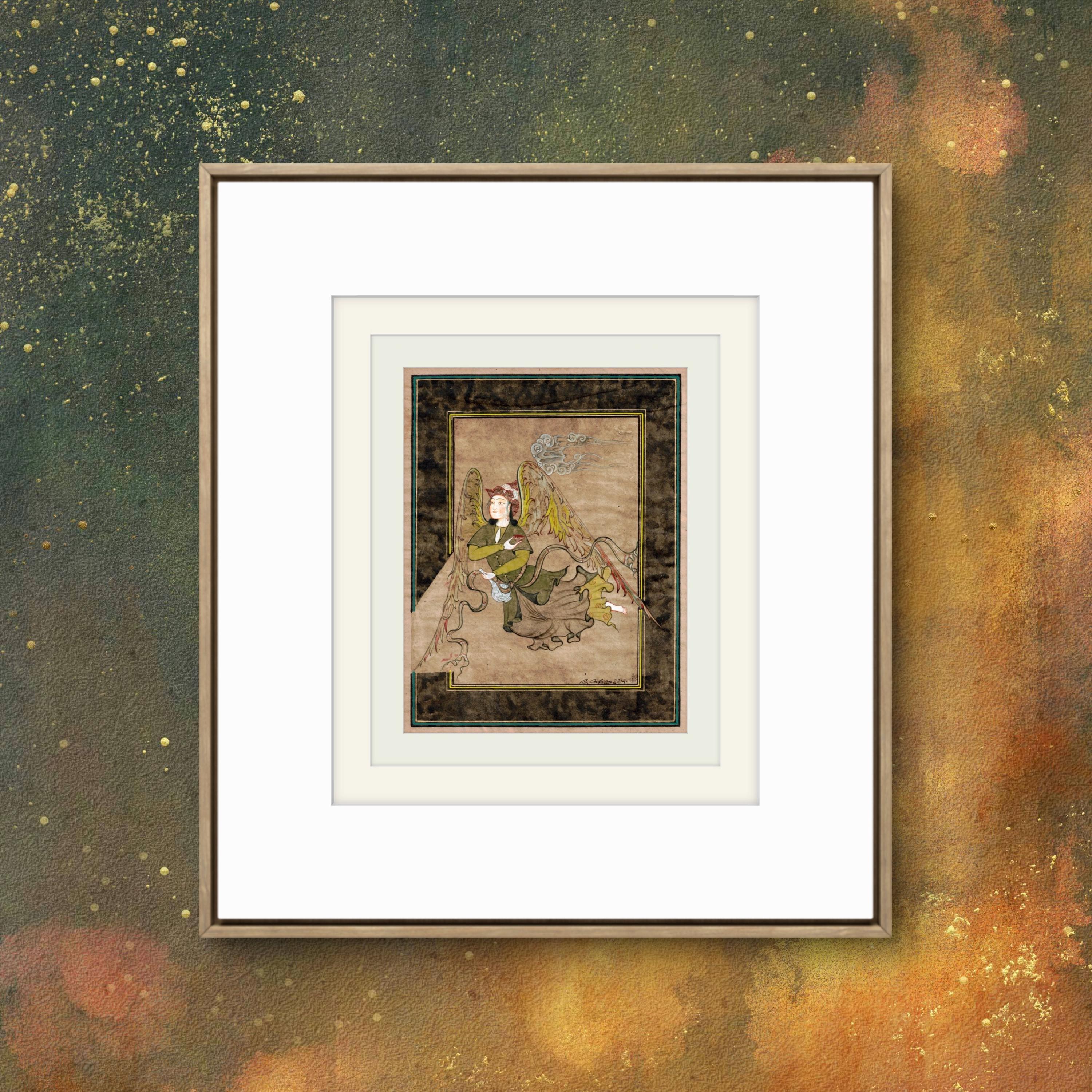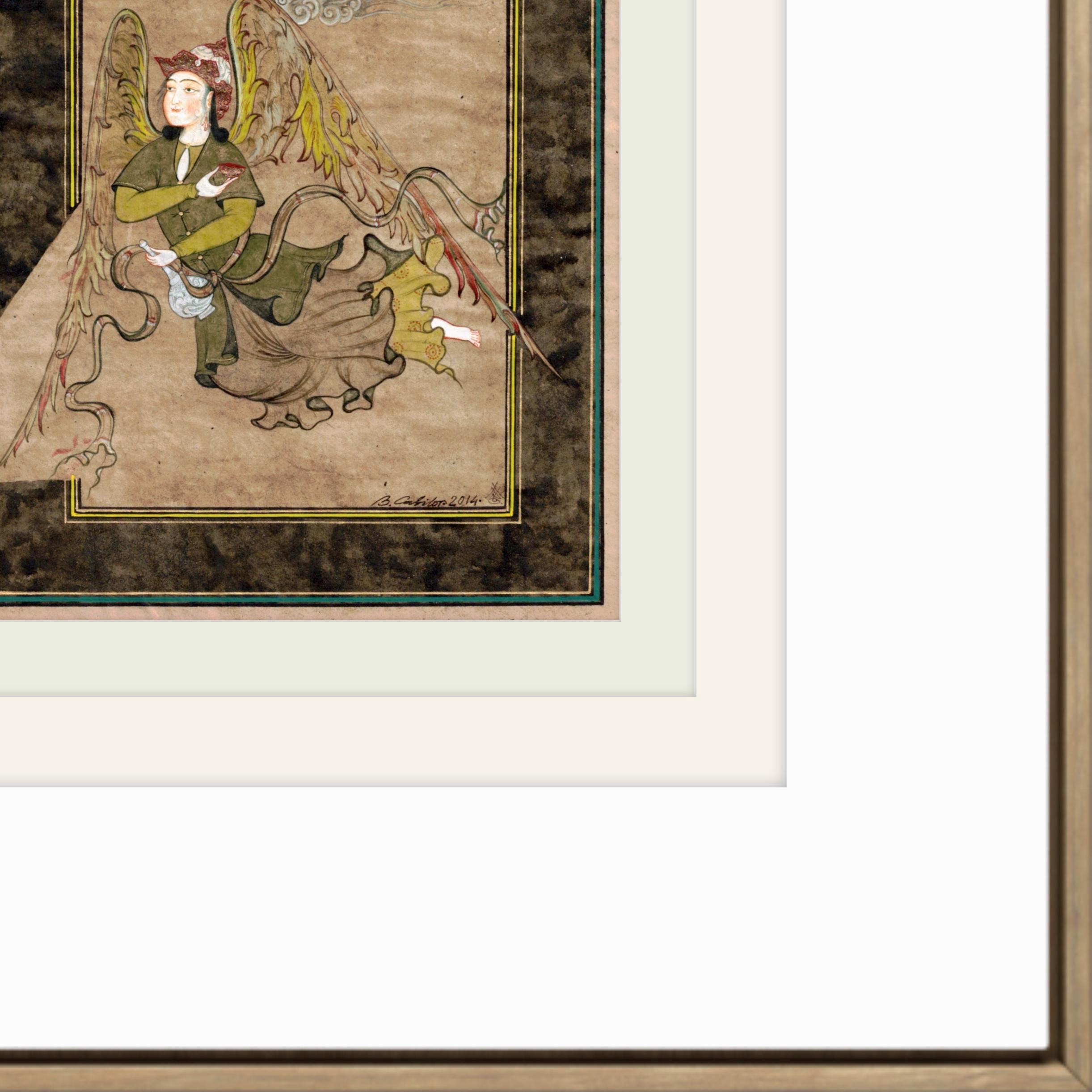 Illustration of Angel “PERI” Holding a Flask Historical Oriental Miniature reproduction | On Fine Antique Silk Paper | Exclusive piece