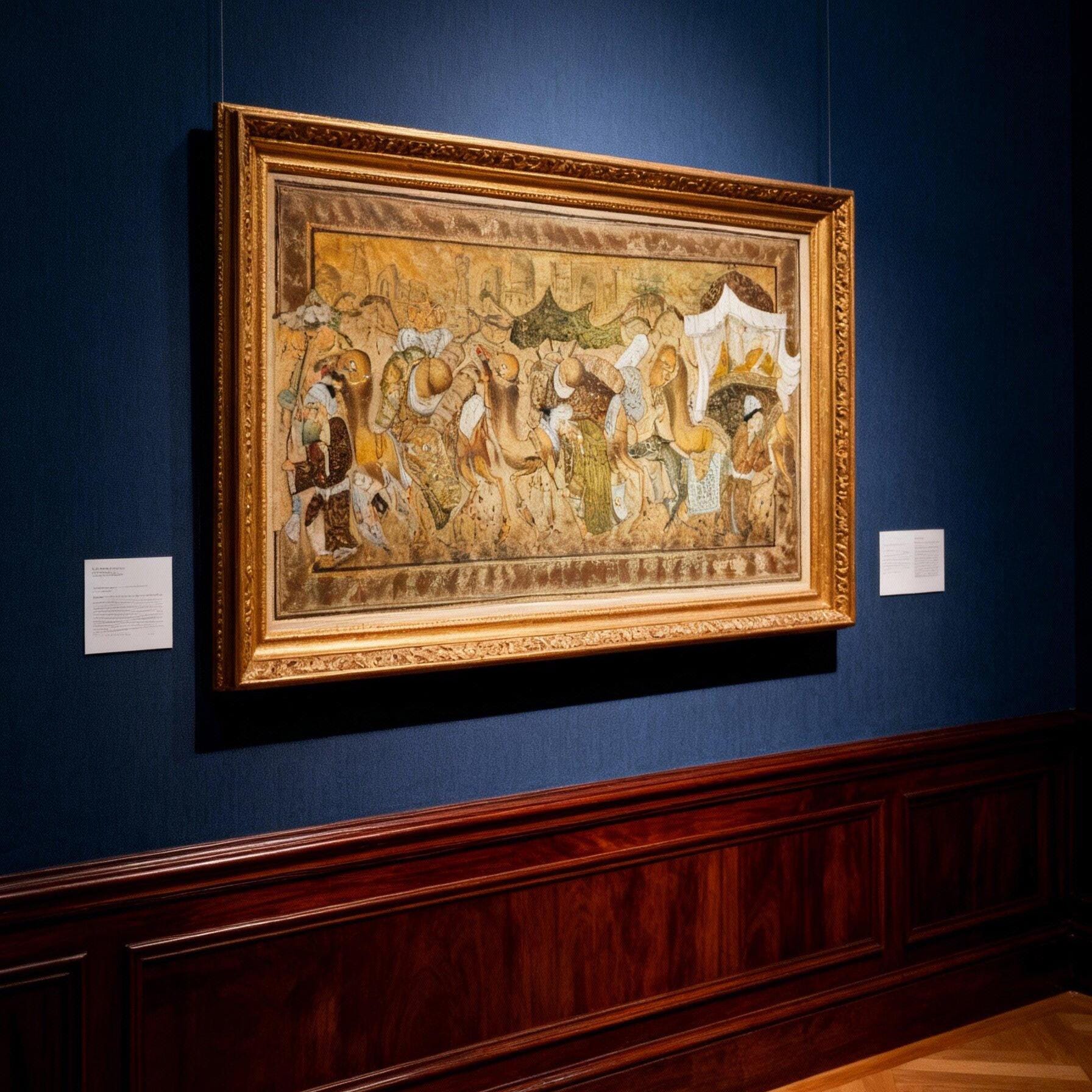 A true collector’s treasure, this artwork bridges past and present, preserving the elegance of ancient storytelling through the lens of timeless craftsmanship. Whether displayed in a private collection or a gallery setting, it serves as a visual journey through history, celebrating the artistry and heritage of the Great Silk Road.