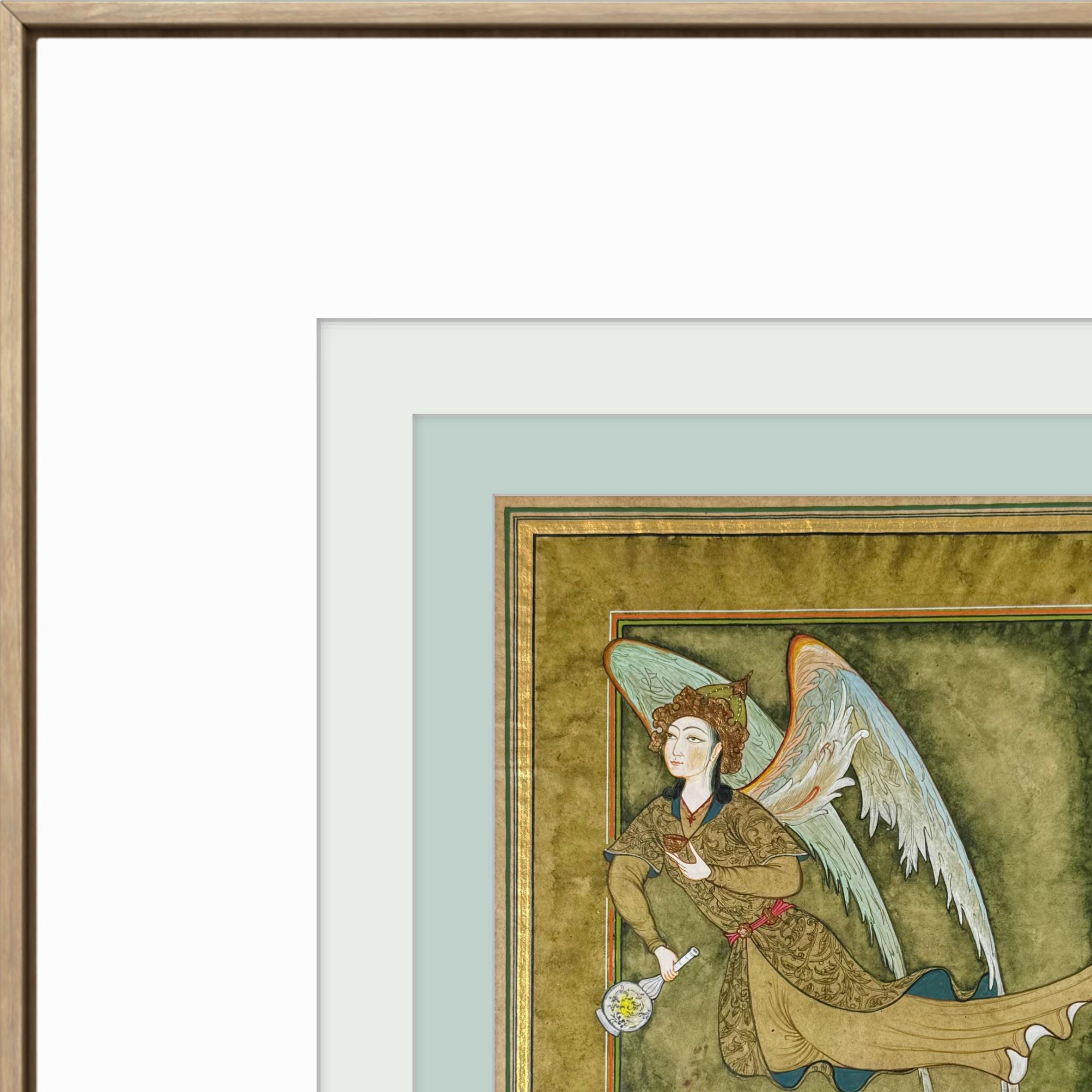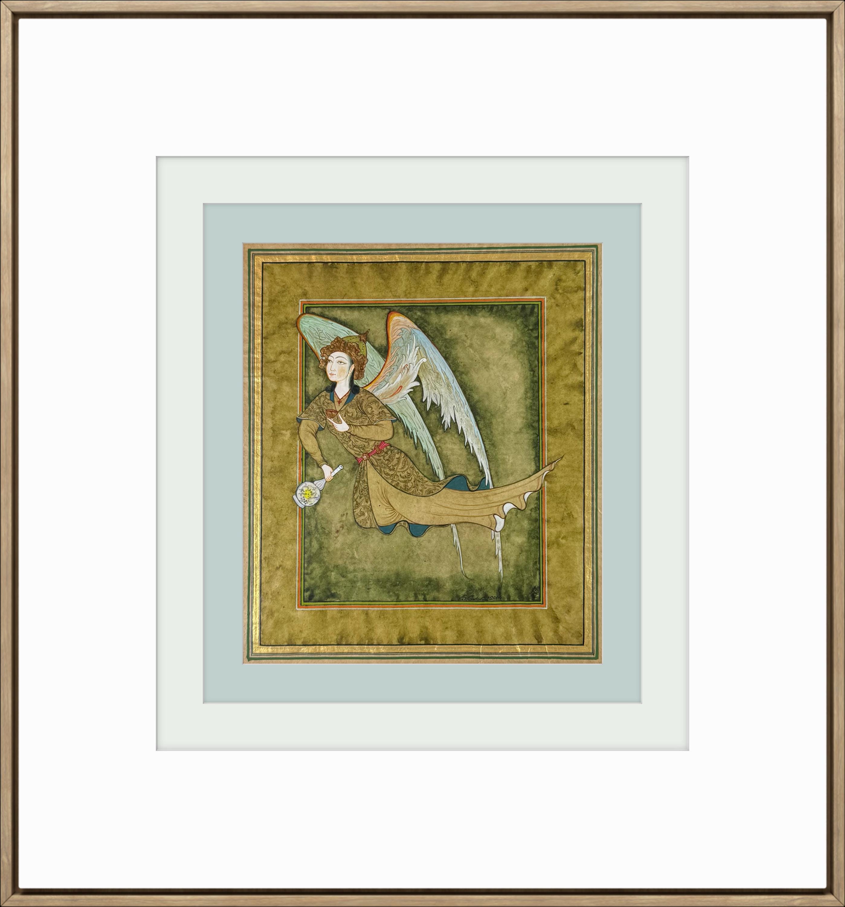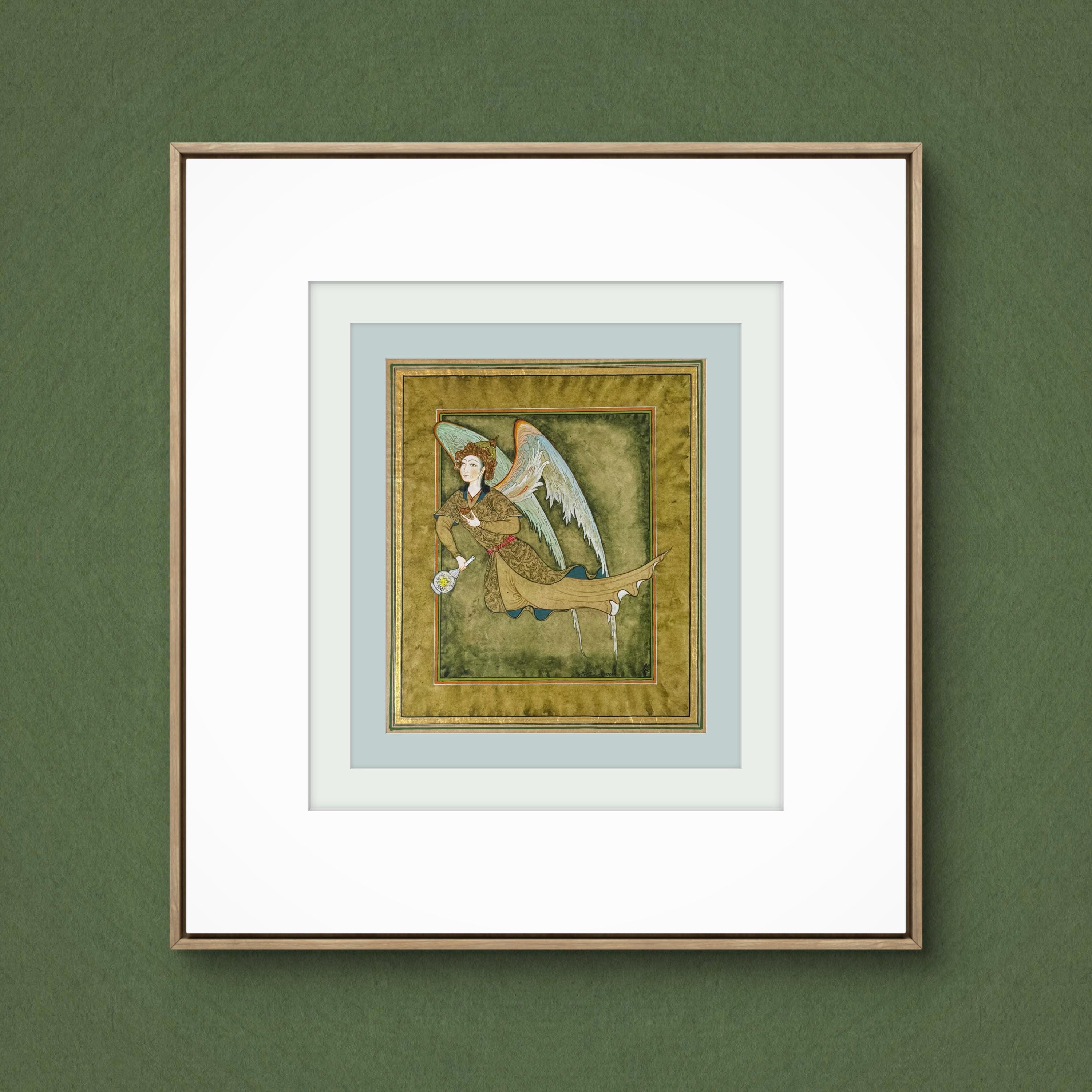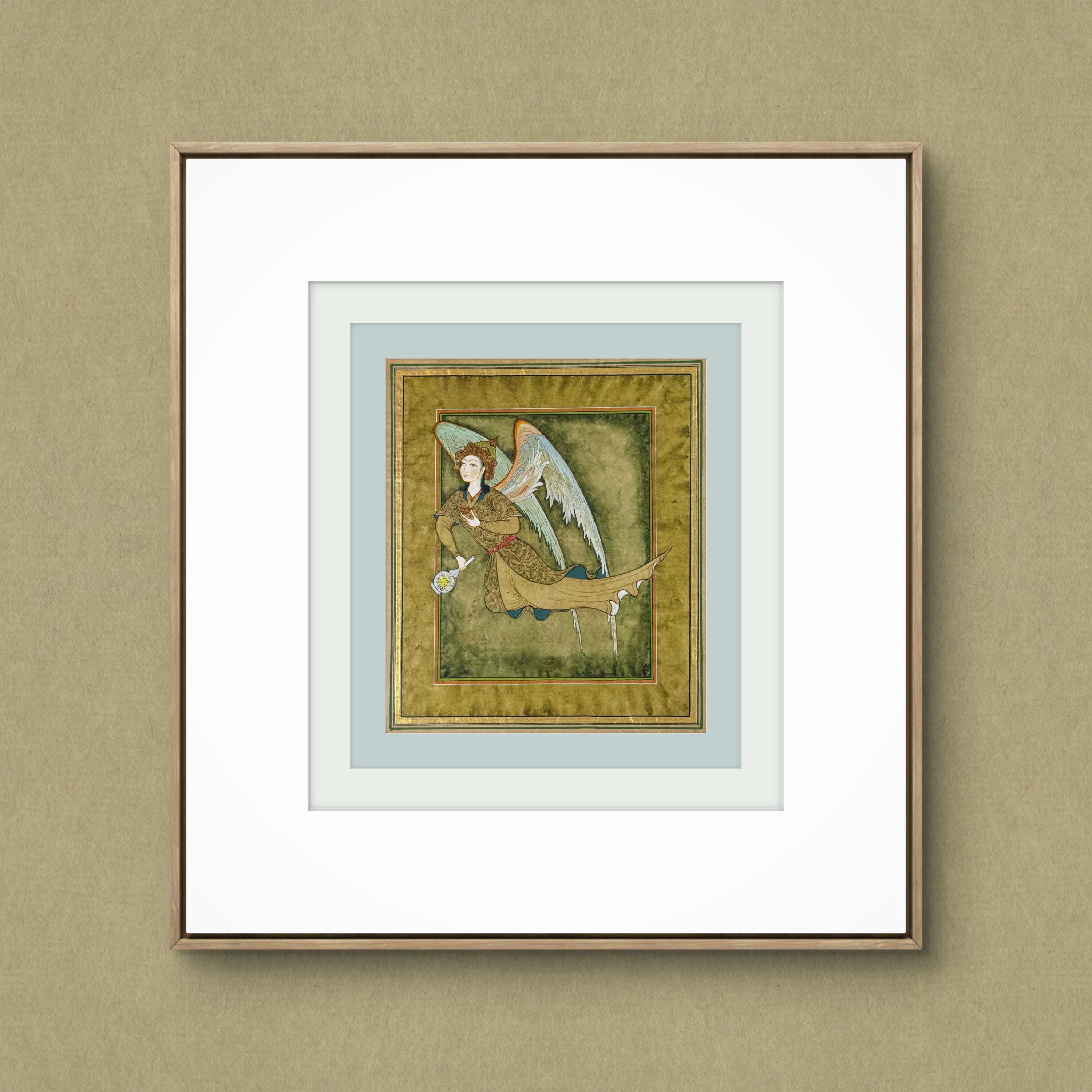 Illustration of Angel “PERI” Holding a Flask Historical Oriental Miniature reproduction | On Fine Antique Silk Paper | Exclusive piece