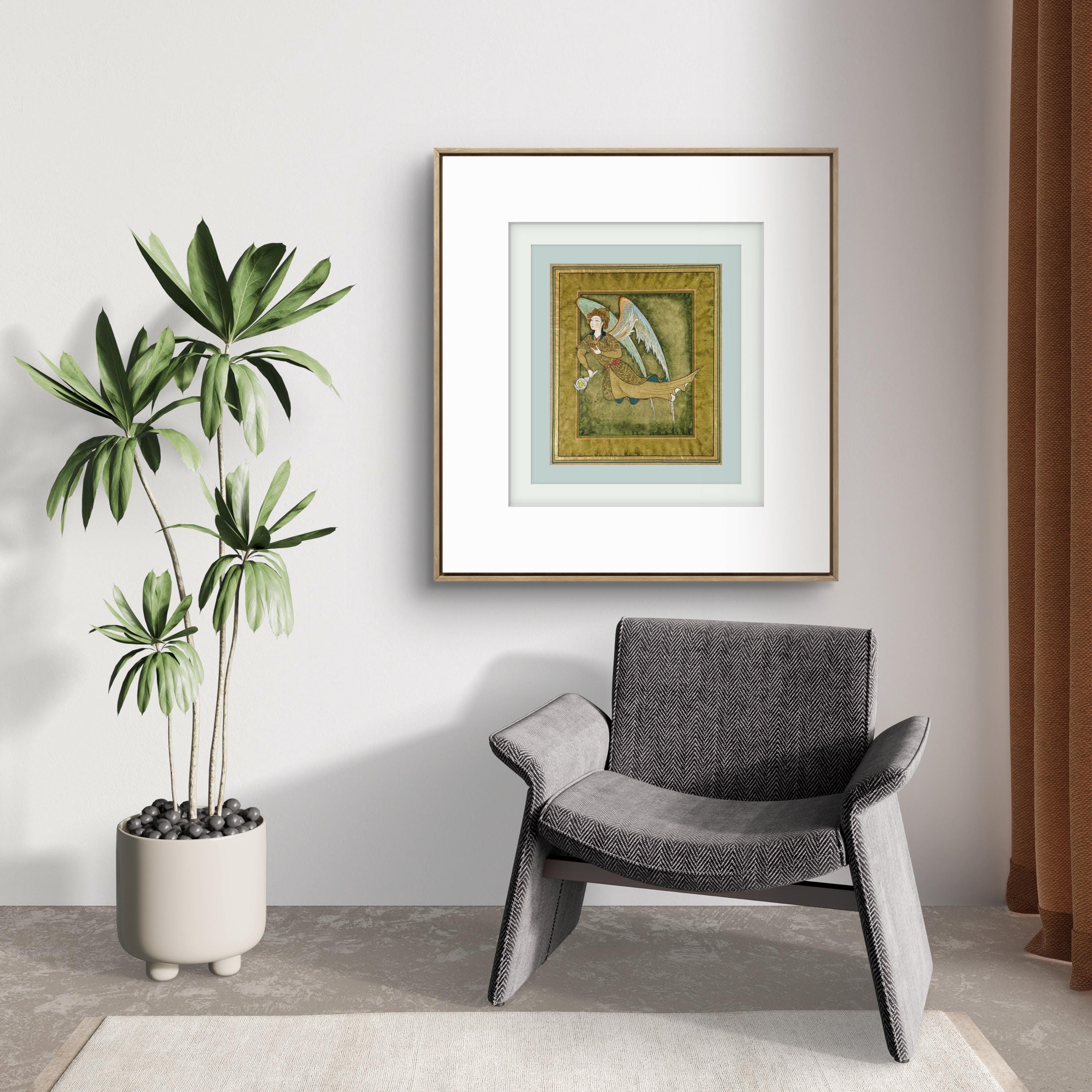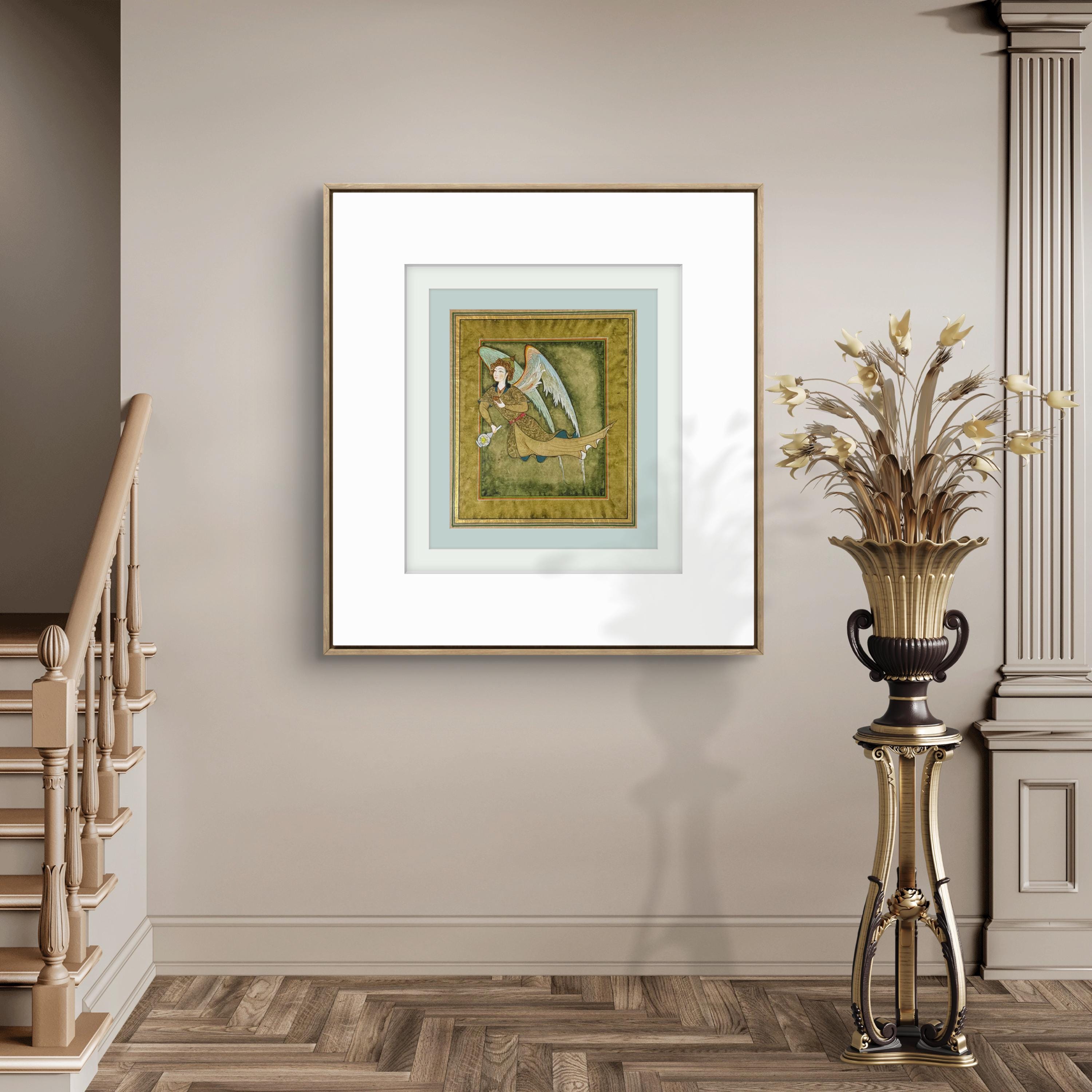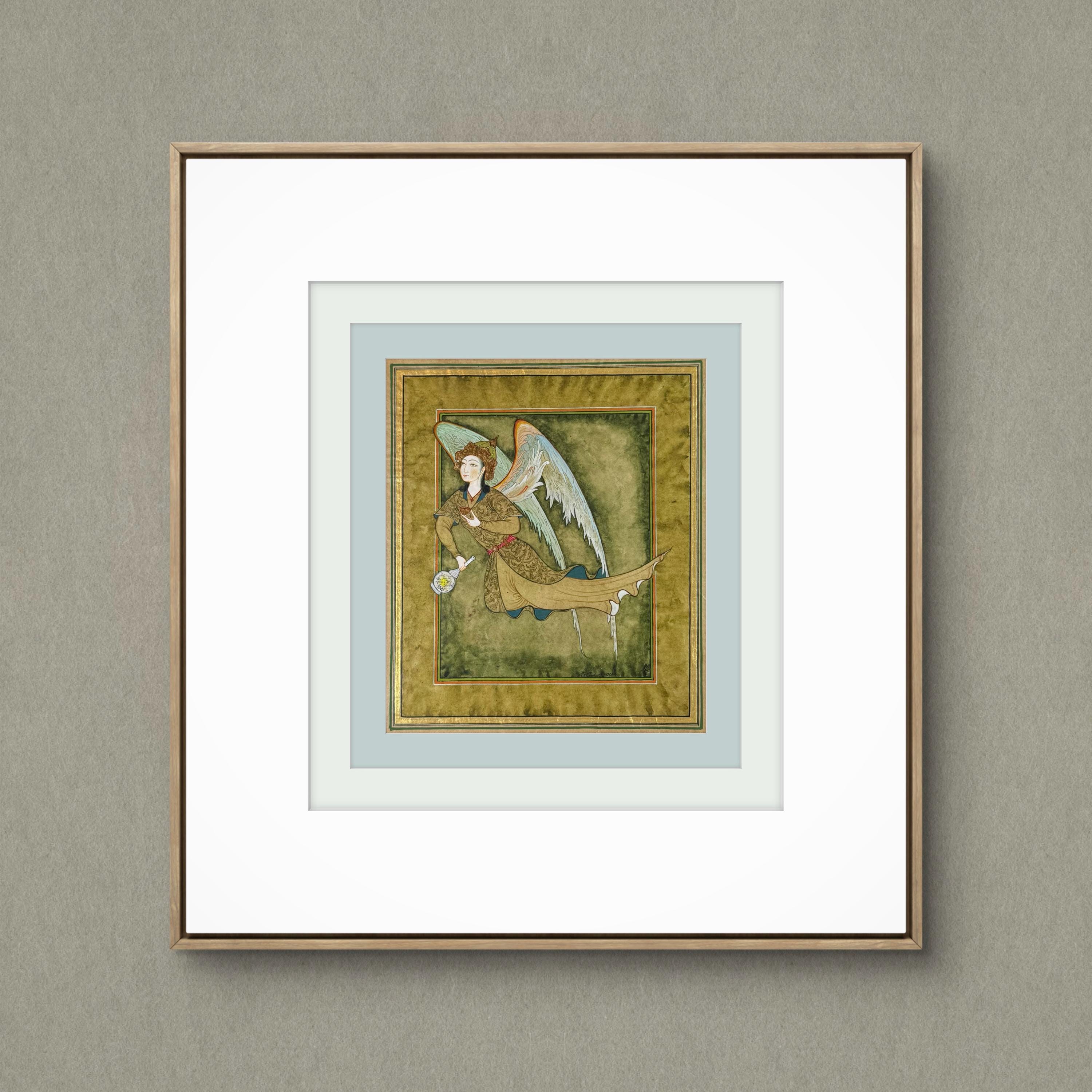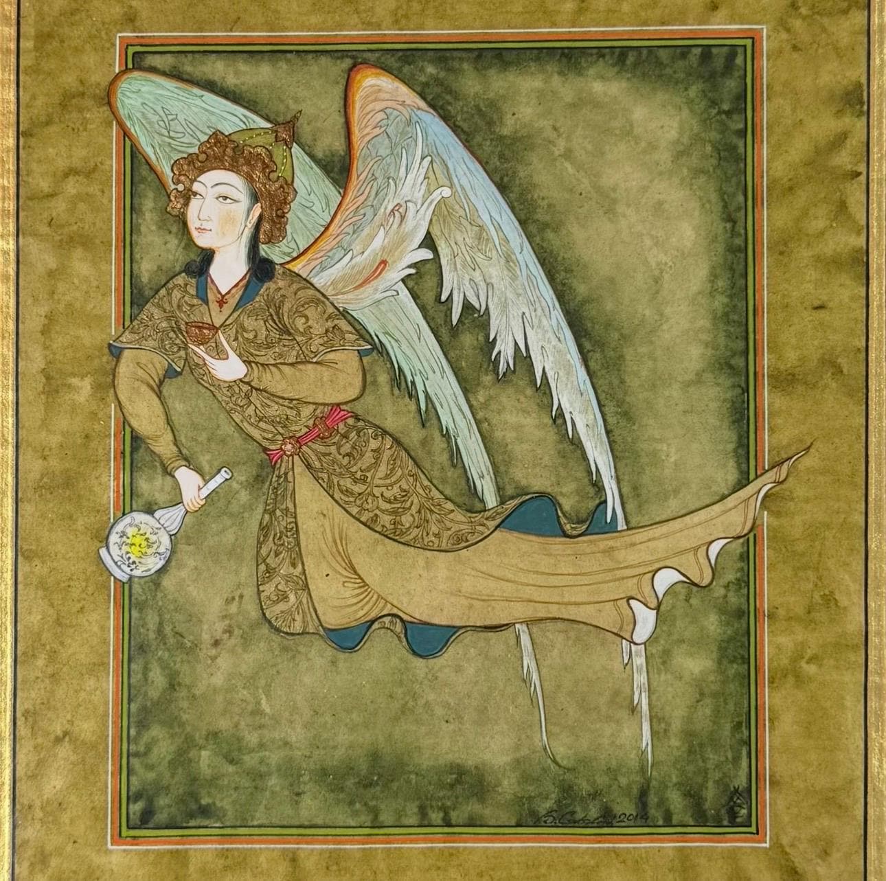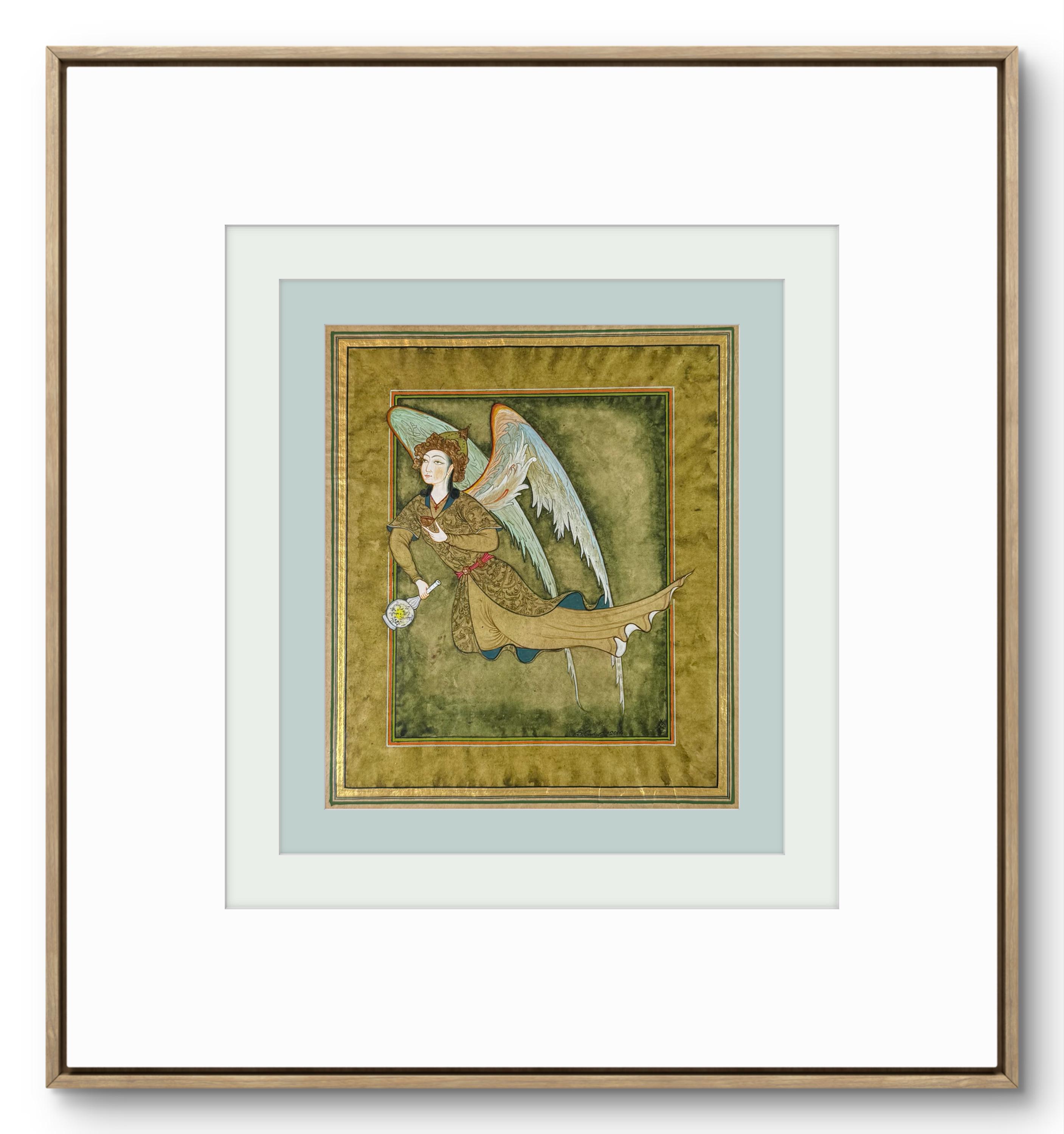 Illustration of Angel “PERI” Holding a Flask Historical Oriental Miniature reproduction | On Fine Antique Silk Paper | Exclusive piece