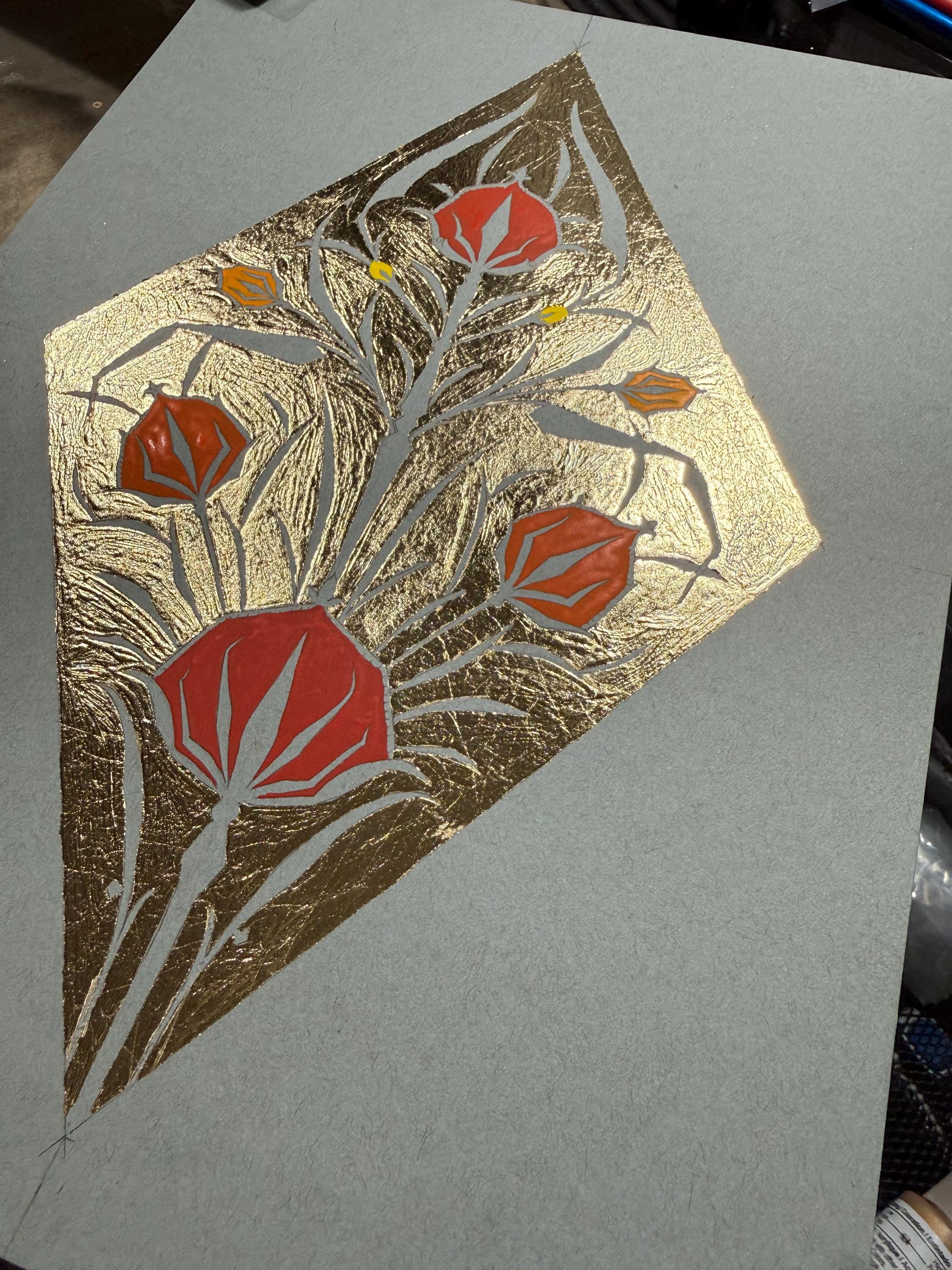Materials: Fine gold leaf, tempera, acrylic, and liner on fine mixed media paper.