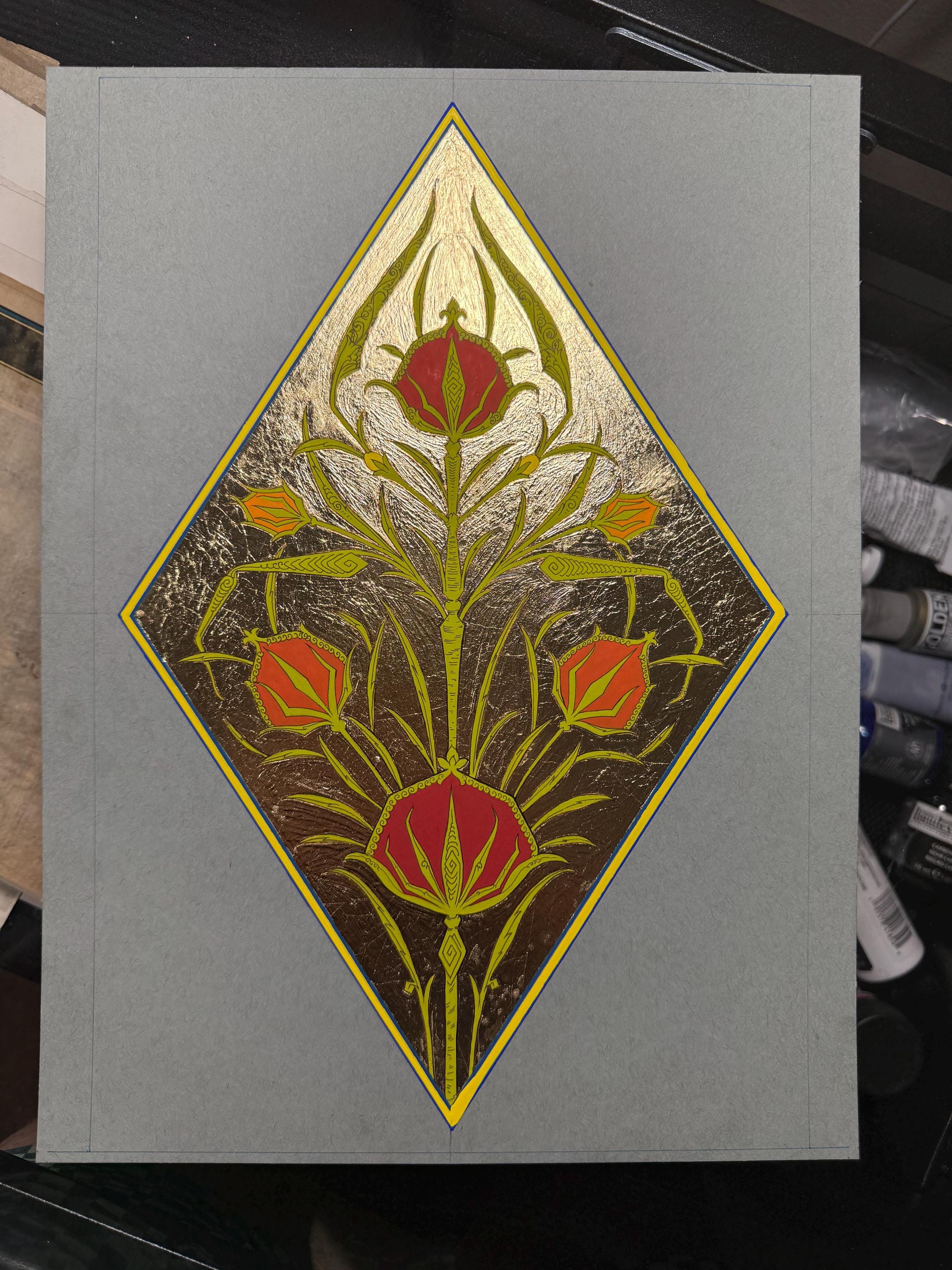 Tulip of the Golden Court | Thinly Gold Leaf Illumination | Ottoman Tulip Art | Islamic Floral Ornament | Hand-painted Illustration UNFRAMED